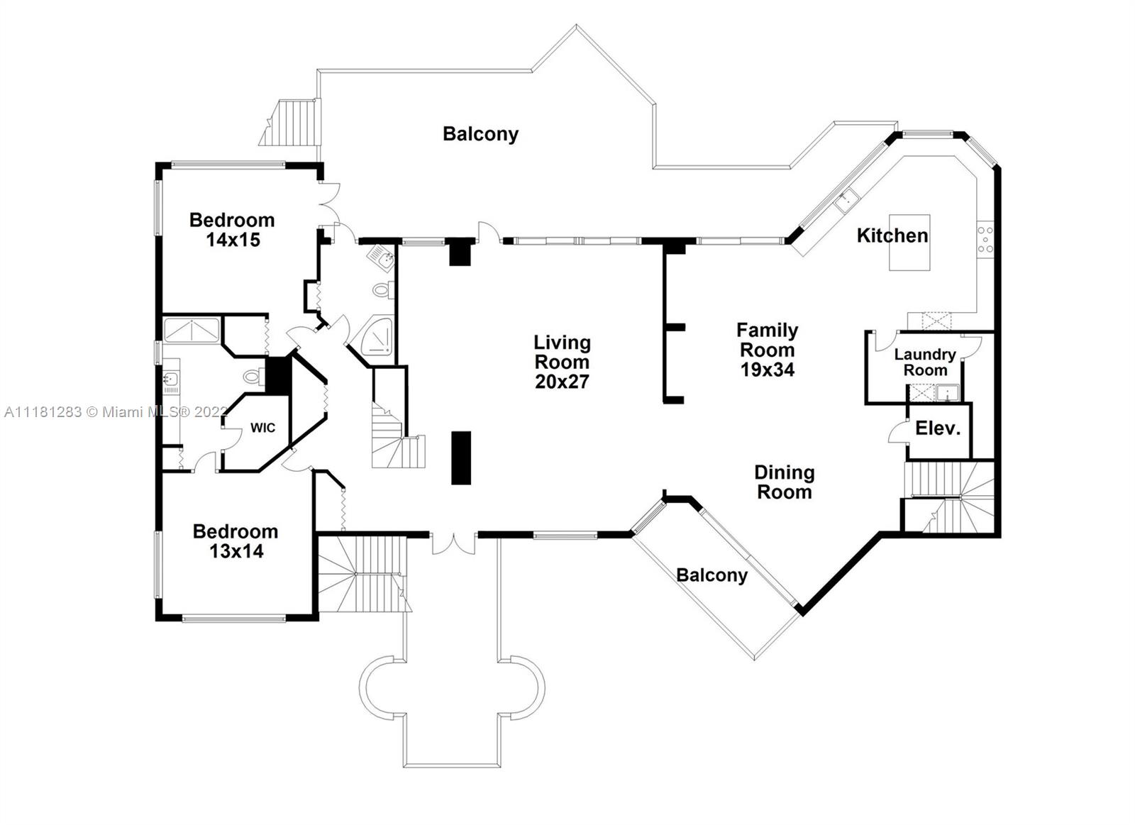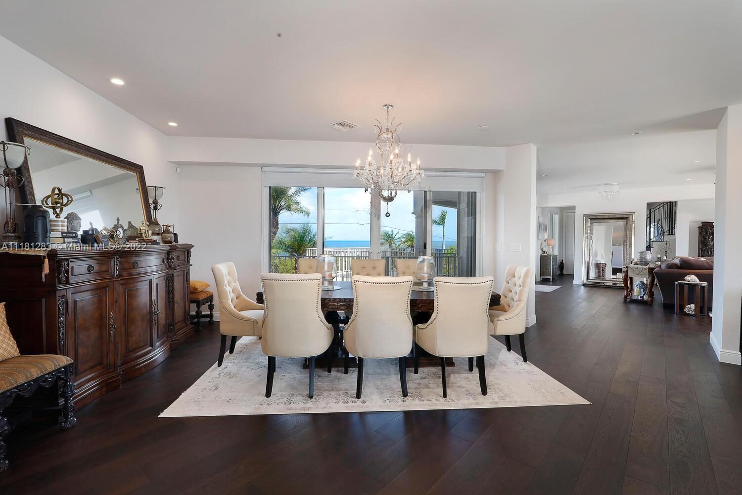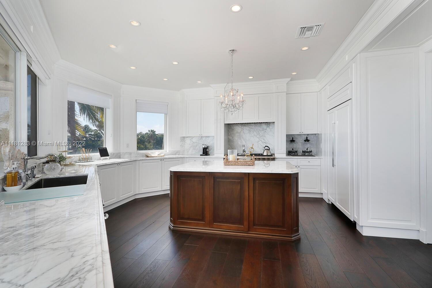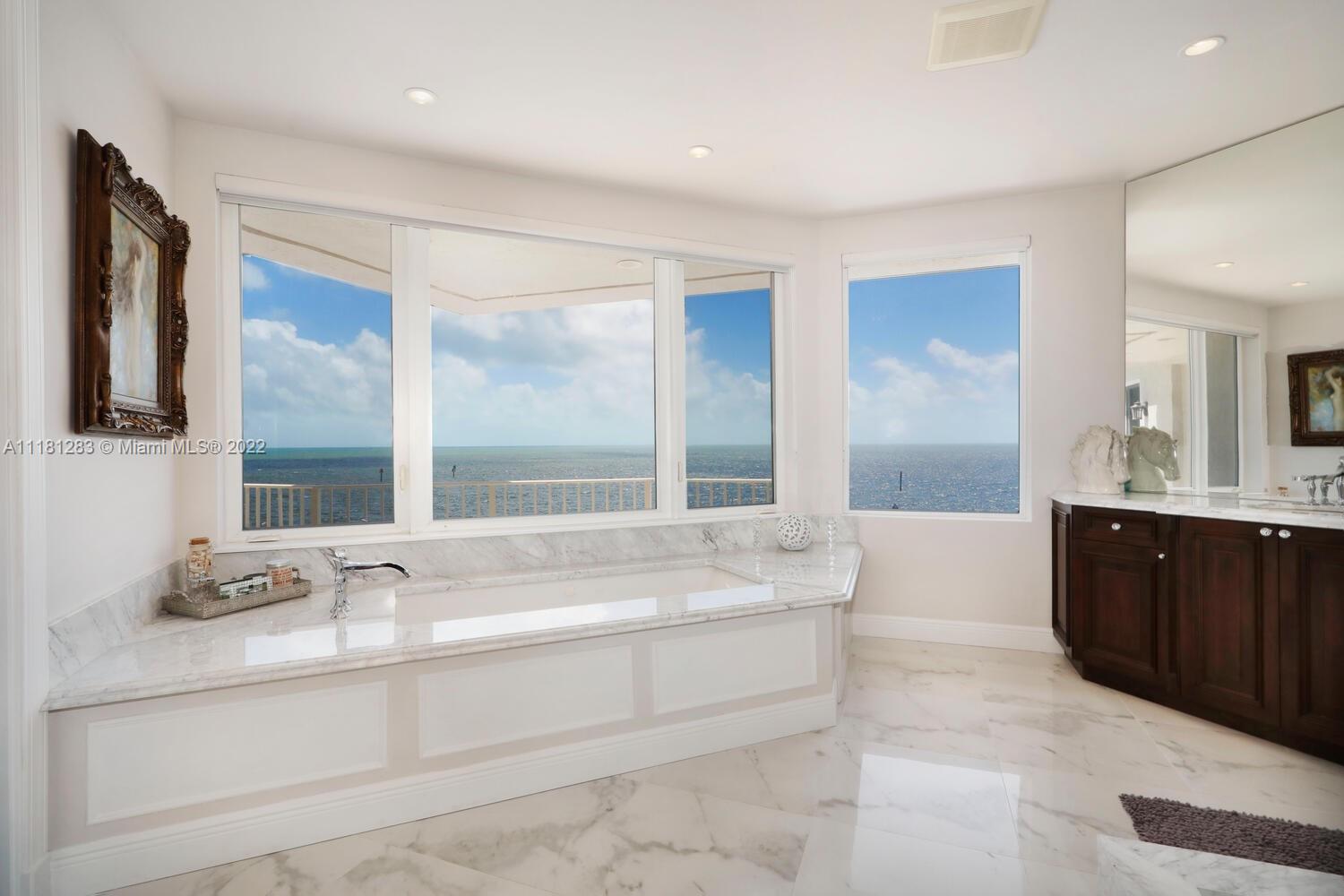 Gorgeous Gables by the Sea waterfront home with unobstructed water views from the front and the back of the property. Elevated three story home offers open parking and storage on the ground floor and a beautiful open concept home on the second and third floors. Main floor living area offers a formal living room with breathtaking views of the open waters of Biscayne Bay, a separate family room, formal dining area and gorgeous marble kitchen. Two bedrooms, along with two bathrooms can also be found on this floor. On the top floor are two additional en-suite bedrooms and the master with direct bay views and features a lovely sitting area, his and her walk-in closets and a stunning marble master bathroom. Spacious balconies perfect for entertaining, pool and spa with amazing open water views.