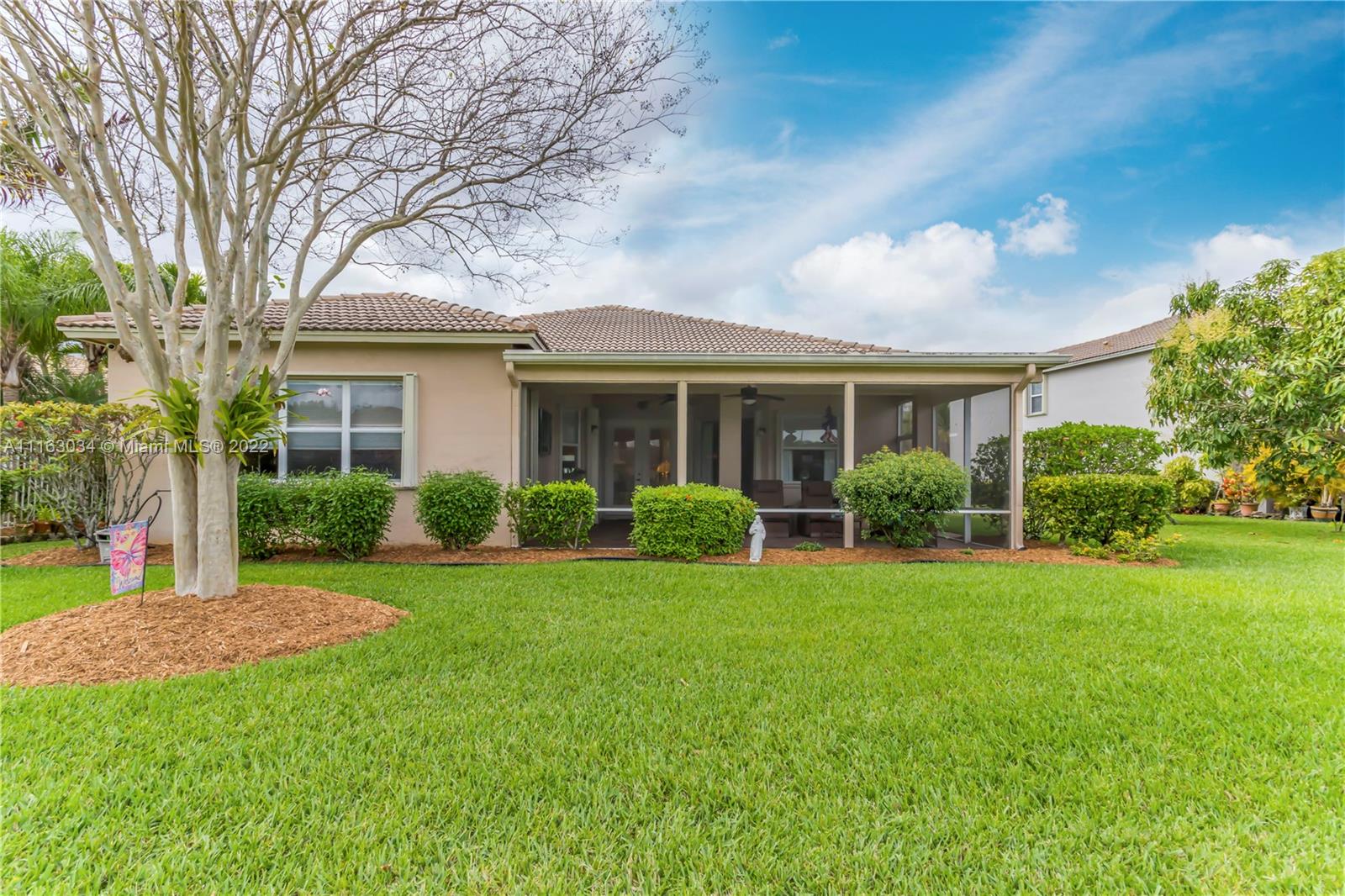 Single-story home in desired community of Isles at Weston. Pride in ownership shows w/ beautifully landscaped yard. Enter into this freshly painted home with its warm neutral tones, high-hat lighting, crown molding & all new base boards. All new beautiful vinyl wood floors. Master bedroom features his and her closets as well as sliding doors that lead to the patio. Master bathroom completely remodeled w/ quartz countertops, an aroma therapy step-in tub w/ bubble jets. Large kitchen and family room perfect for entertaining. French doors in formal Livingroom also lead to the patio. Relax out in your extended patio which is screened in w/ 2 ceiling fans. Amazing views of the lake & garden. Very peaceful & private. HOA includes Internet basic TV, hotwire, clubhouse, gym & pool.