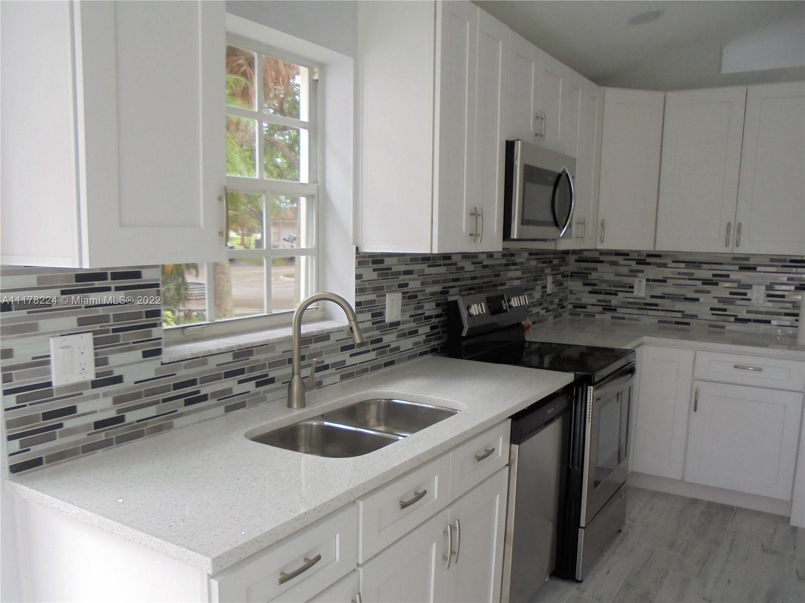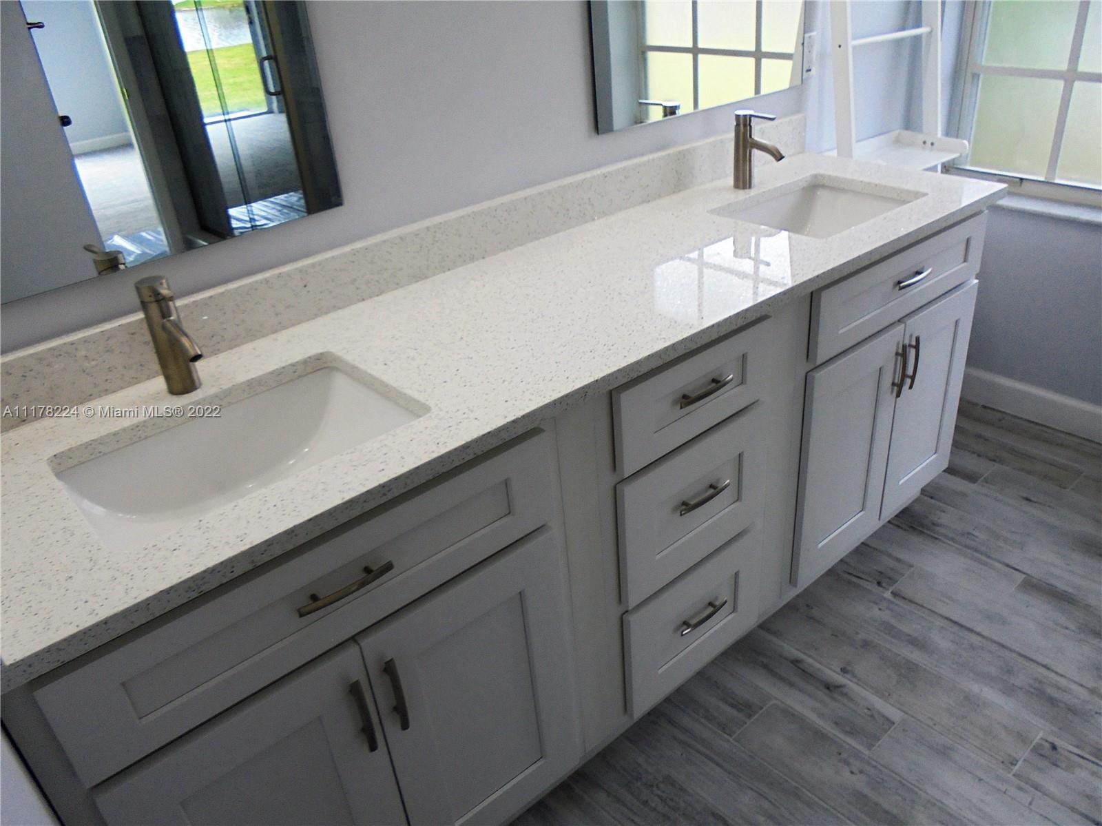 Beautiful remodel on this 3/2 waterfront home includes new roof, open floor plan, new kitchen with island and new cabinets, counters, appliances, fixtures, flooring and paint and so much more. Huge backyard with plenty of room for a pool and for the kids and pets to run. Home is located on a cul-de sac with no through traffic. A full two car garage and a pavered driveway to accommodate 4 cars. Full sprinkler system draws off the lake. Low HOA fees are just the icing on the cake. Bring your highest and best offer.