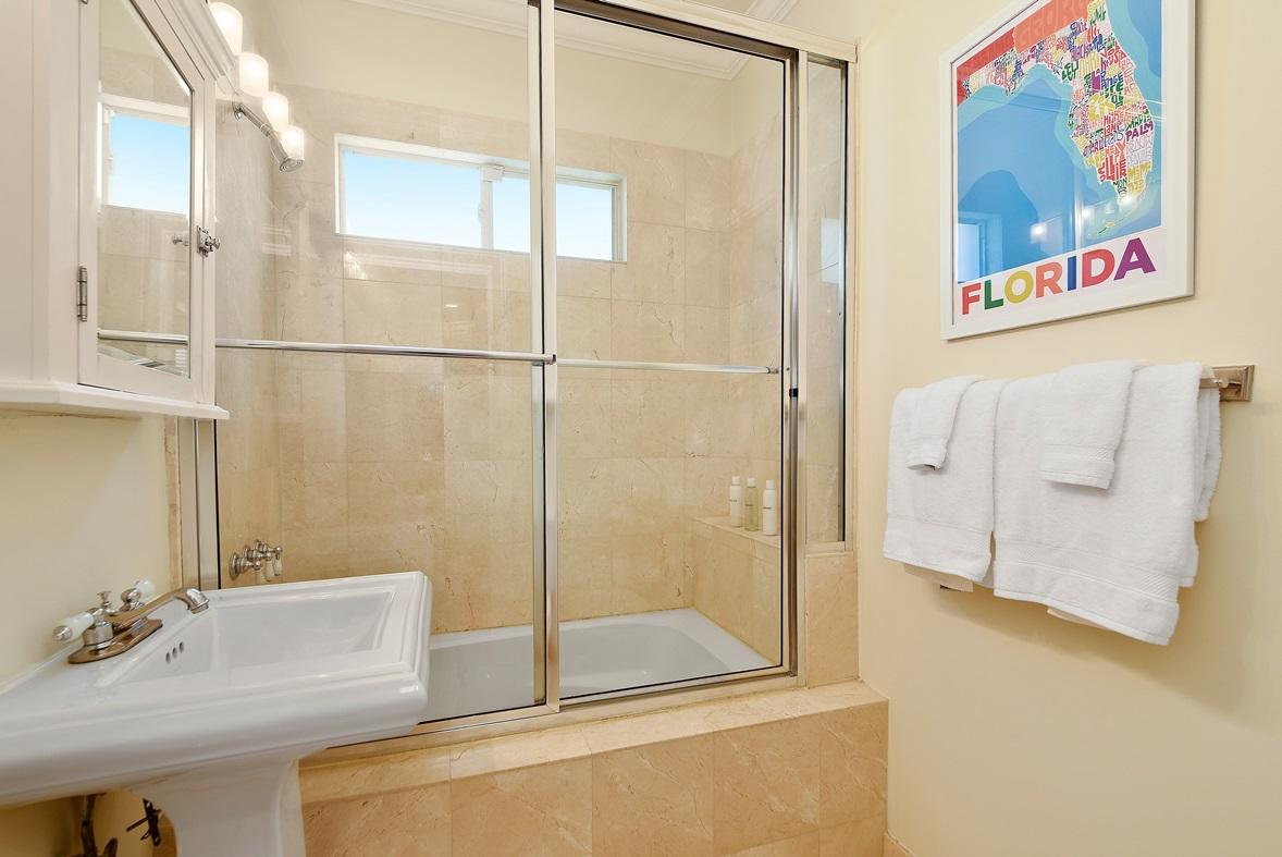 Mediterranean charm abounds in this 3 BR 2 BA totally renovated 1926 beauty.The original architectural features like rounded ceilings, doors and woodwork, Palladian windows, barrel tile roof accents and brick fireplace have been preserved. The large en-suite Master Bedroom opens to a stunning heated pool with waterfall, lush palm trees and an outdoor dining area.
