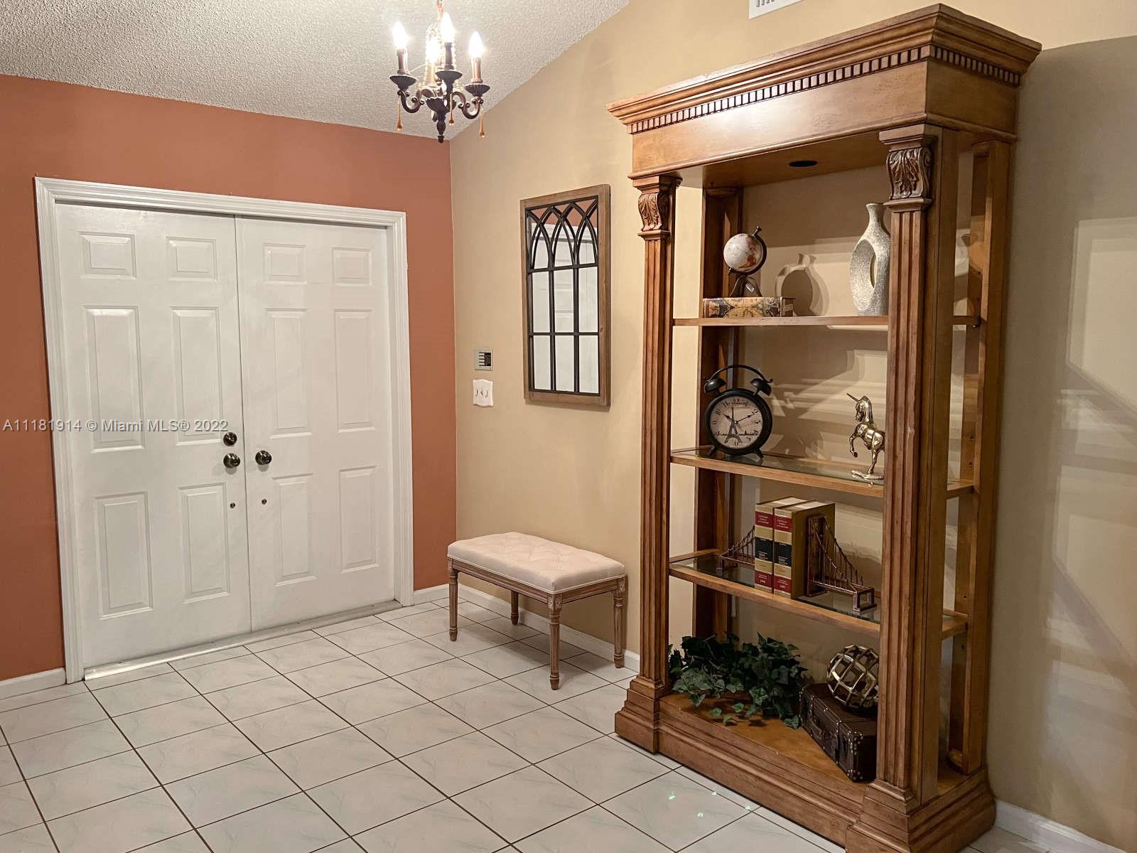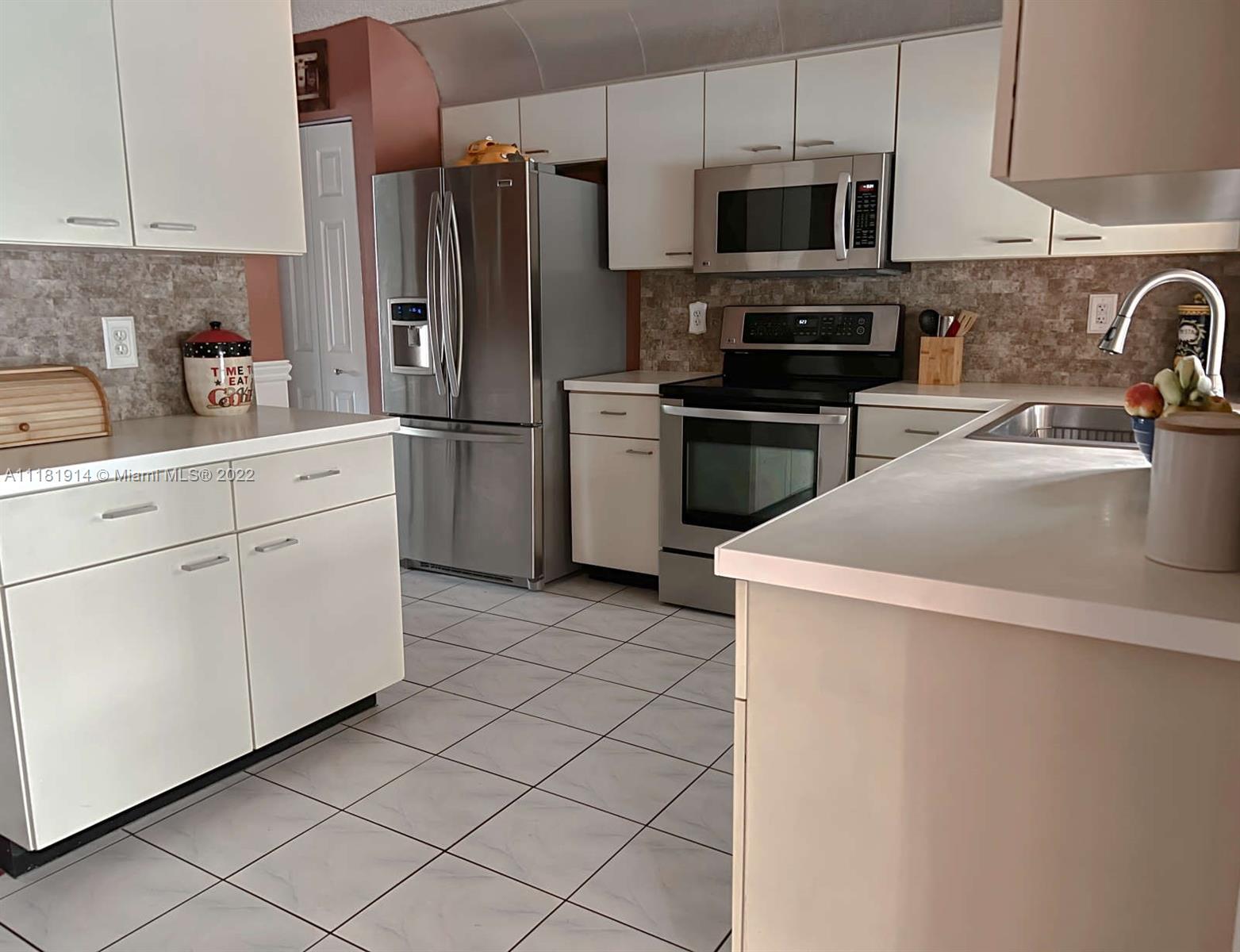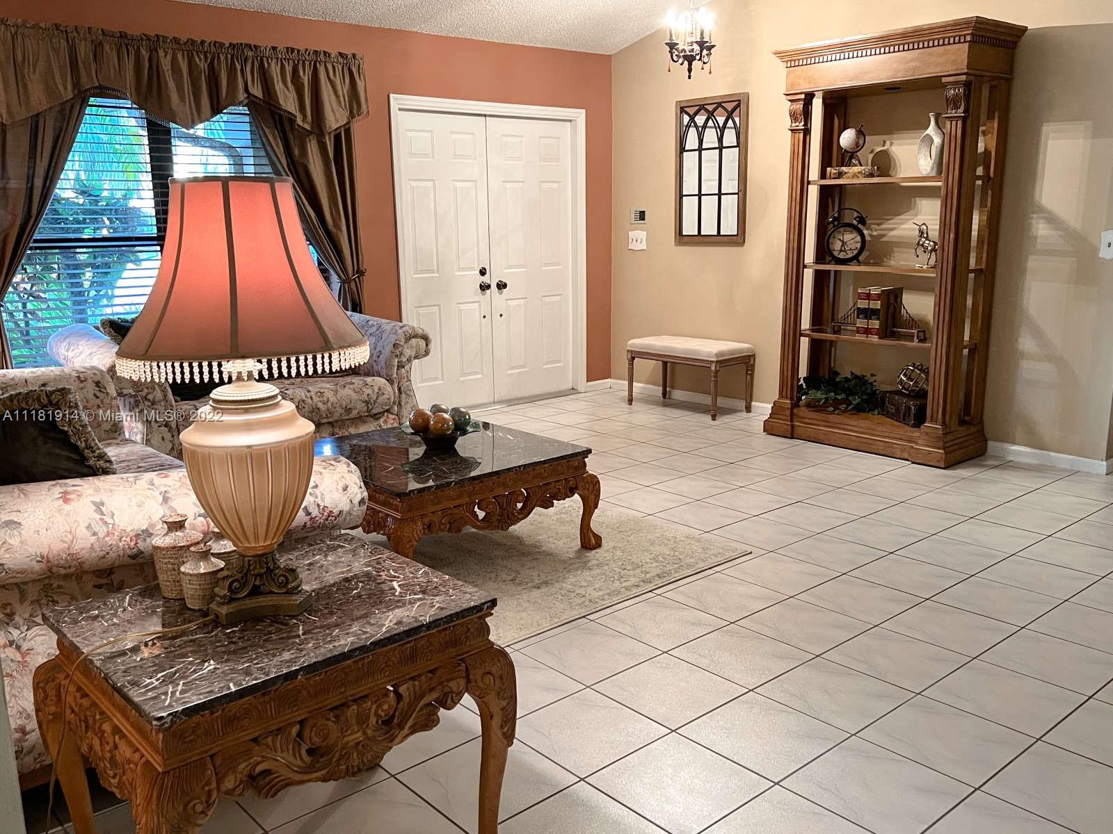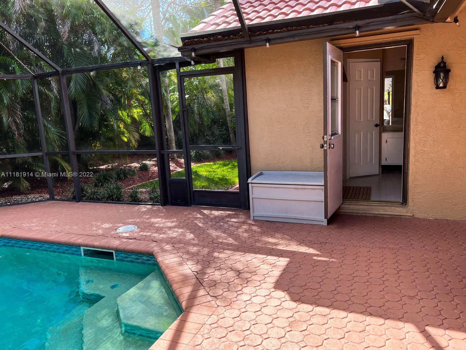 This elegant ranch-style house feels like home the minute you pull up. Beyond the double doored front entry, you are greeted by the 15 ft. vaulted ceilings of the elegant great room. This luminous entryway flows into an open concept living room that showcases a tropical paradise. The resort-like backyard boasts a large, screened-in swimming pool and waterfall jacuzzi, paved patio, fully fenced backyard, and lush landscaping. The newly renovated kitchen is right off the patio area, perfect for entertaining guests or enjoying a family dinner. The open floor plan and large sliding glass doors throughout, allow for for you to enjoy the captivating views of your backyard oasis both morning and night. The roof on this luxurious home was recently replaced and still under warranty. Welcome Home!