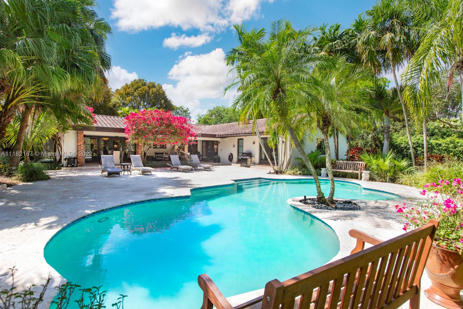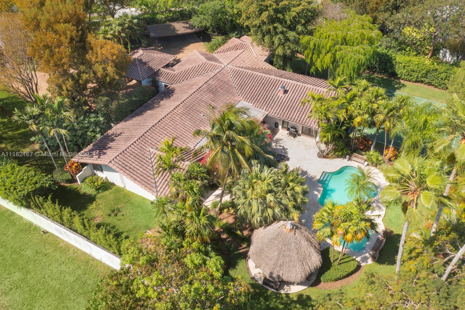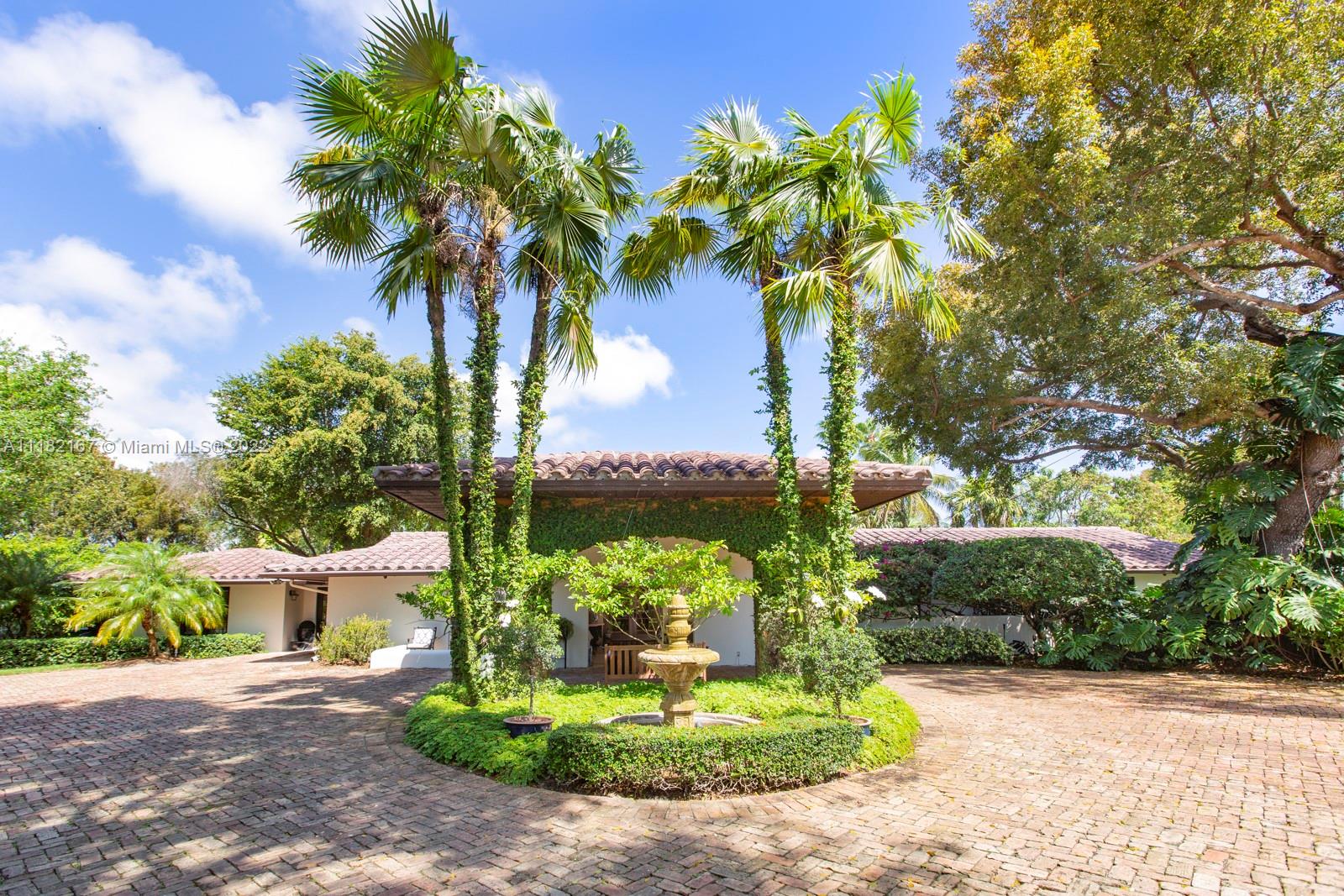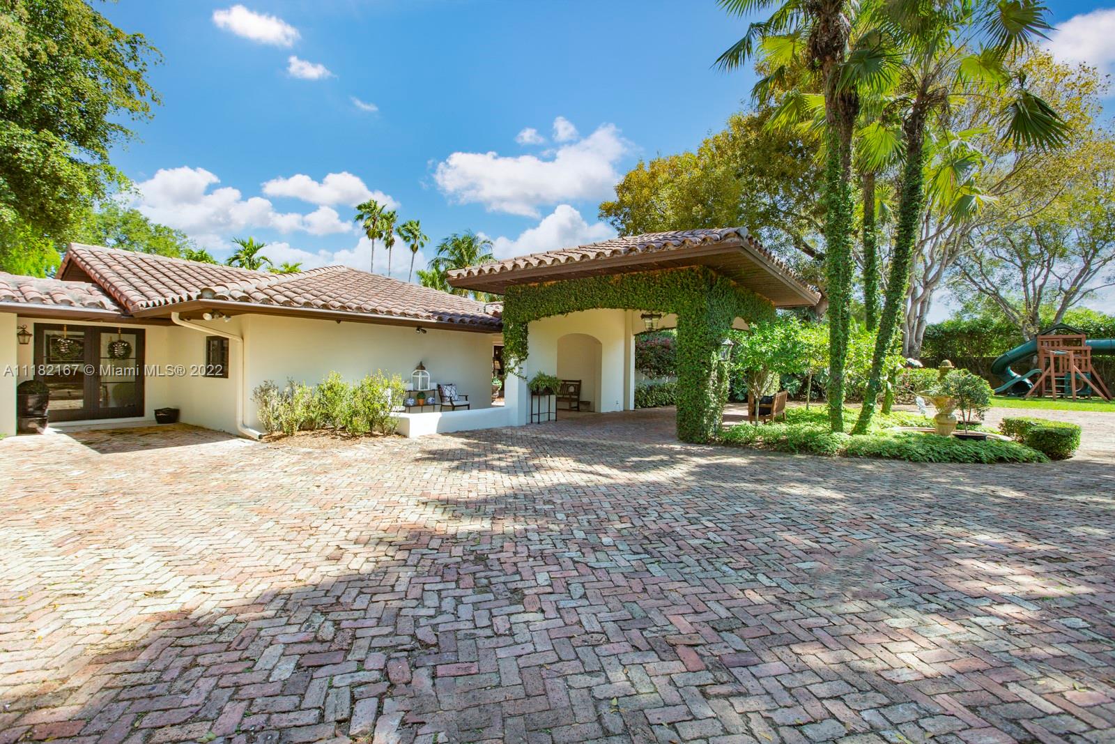 Beautifully updated 6 bedroom 5 bath fully gated and secluded corner acre home in the heart of East Pinecrest. Picturesque and elegant family home with loads of charm and space for formal and informal living, both inside and out. Strong sense of style along with beautiful vistas make it feel like you have escaped to Tuscany. Redone plumbing, all impact glass, fabulous updated gourmet kitchen, gym/office, gorgeous tropically planted pool-patio-yard + basketball/pickleball court. Top of the line detailing and upgrades throughout. Porte-cache + 3-car carport, inviting and lush front dining courtyard. All of the best schools in Pinecrest.