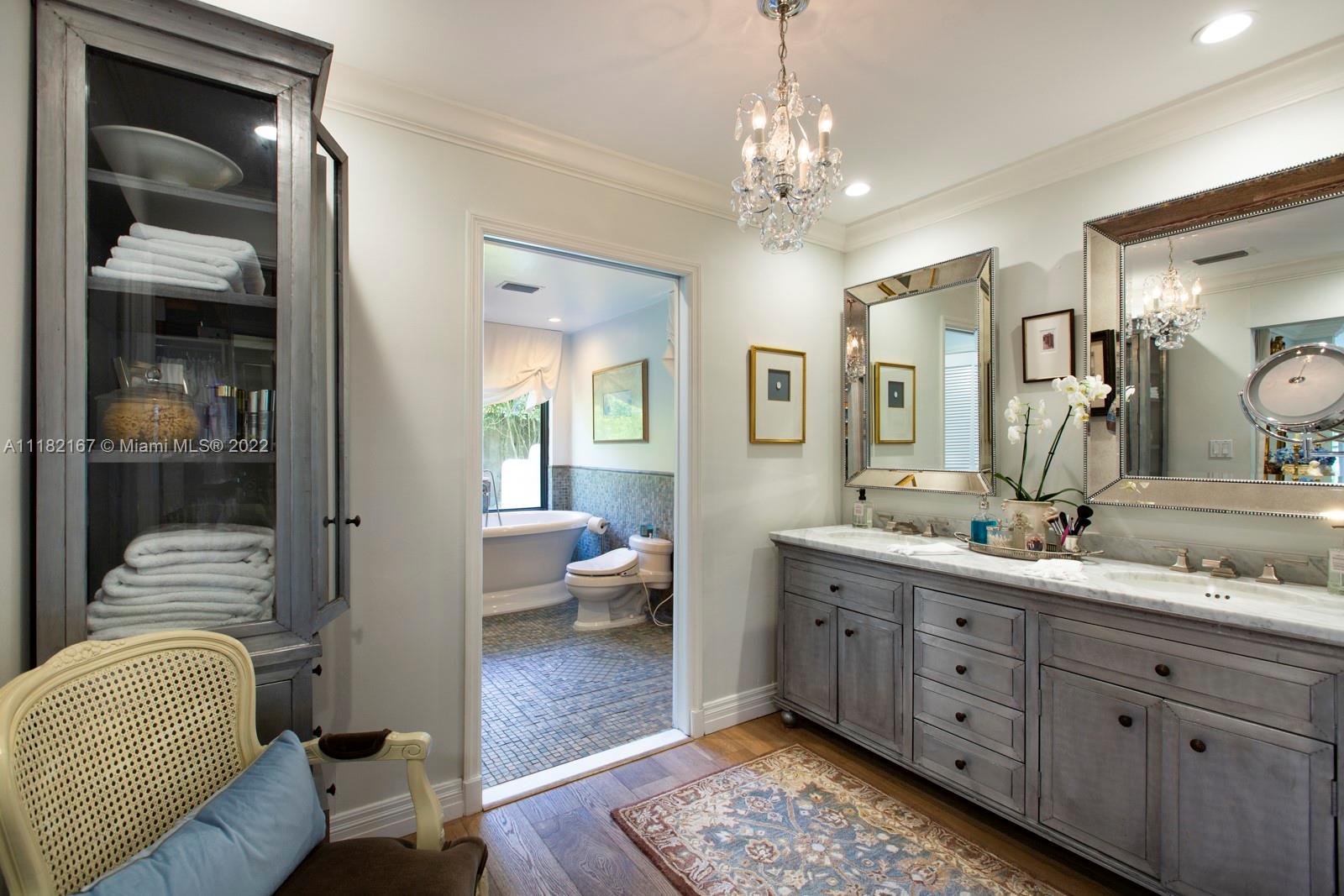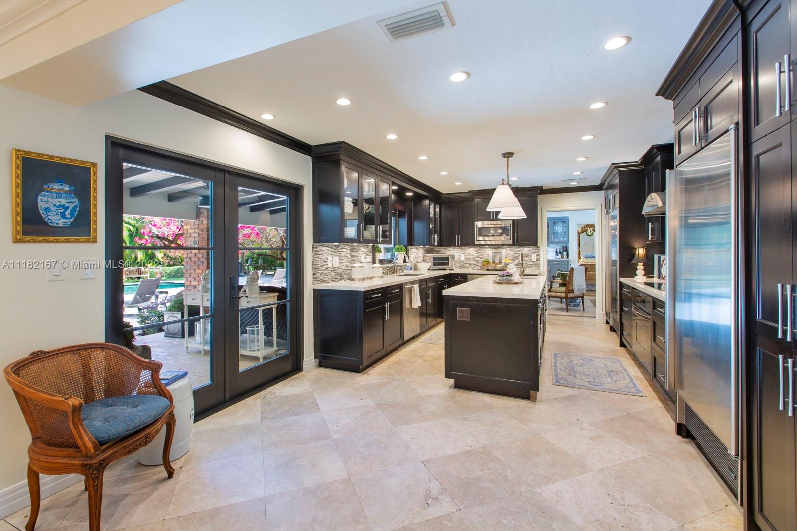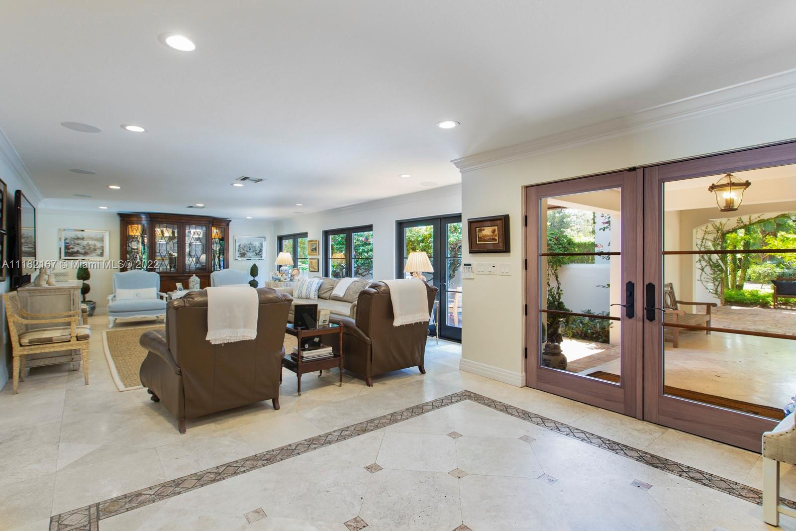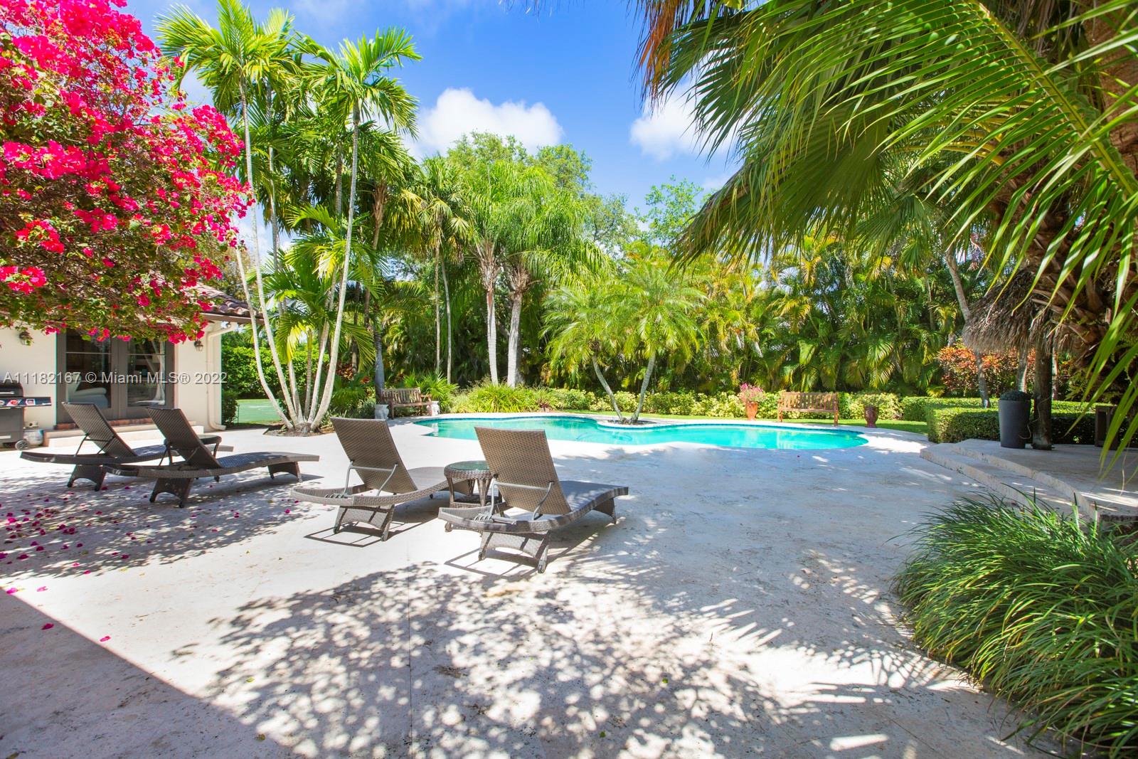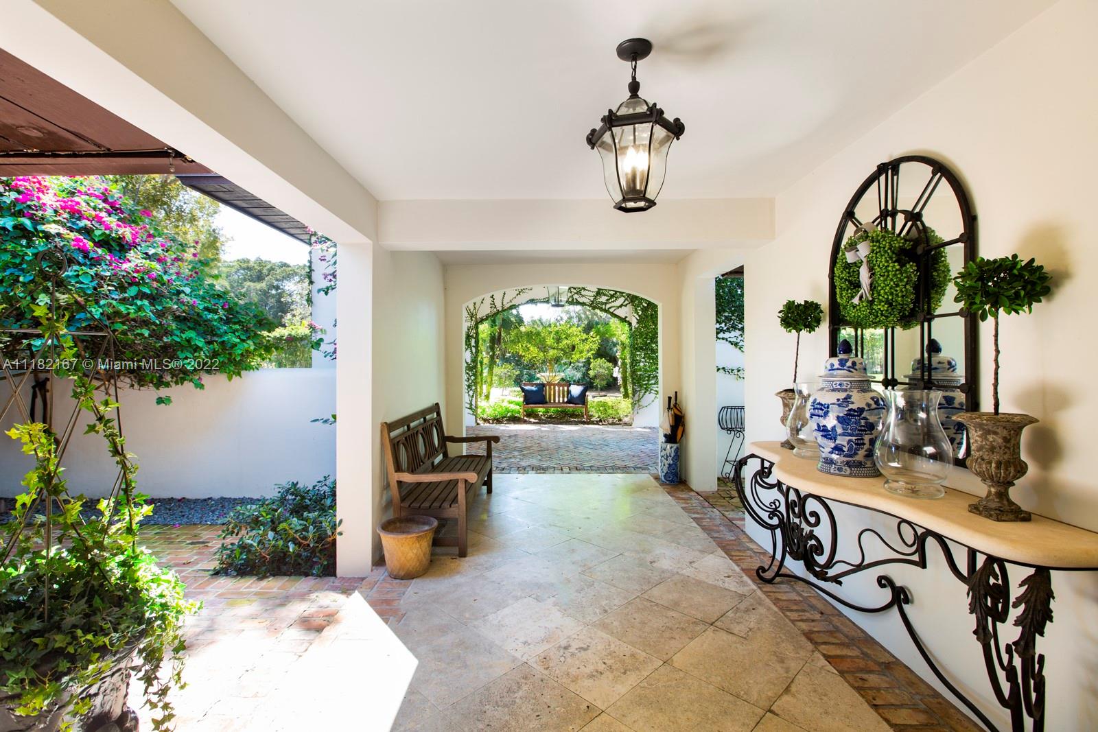 Beautifully updated 6 bedroom 5 bath fully gated and secluded corner acre home in the heart of East Pinecrest. Picturesque and elegant family home with loads of charm and space for formal and informal living, both inside and out. Strong sense of style along with beautiful vistas make it feel like you have escaped to Tuscany. Redone plumbing, all impact glass, fabulous updated gourmet kitchen, gym/office, gorgeous tropically planted pool-patio-yard + basketball/pickleball court. Top of the line detailing and upgrades throughout. Porte-cache + 3-car carport, inviting and lush front dining courtyard. All of the best schools in Pinecrest.