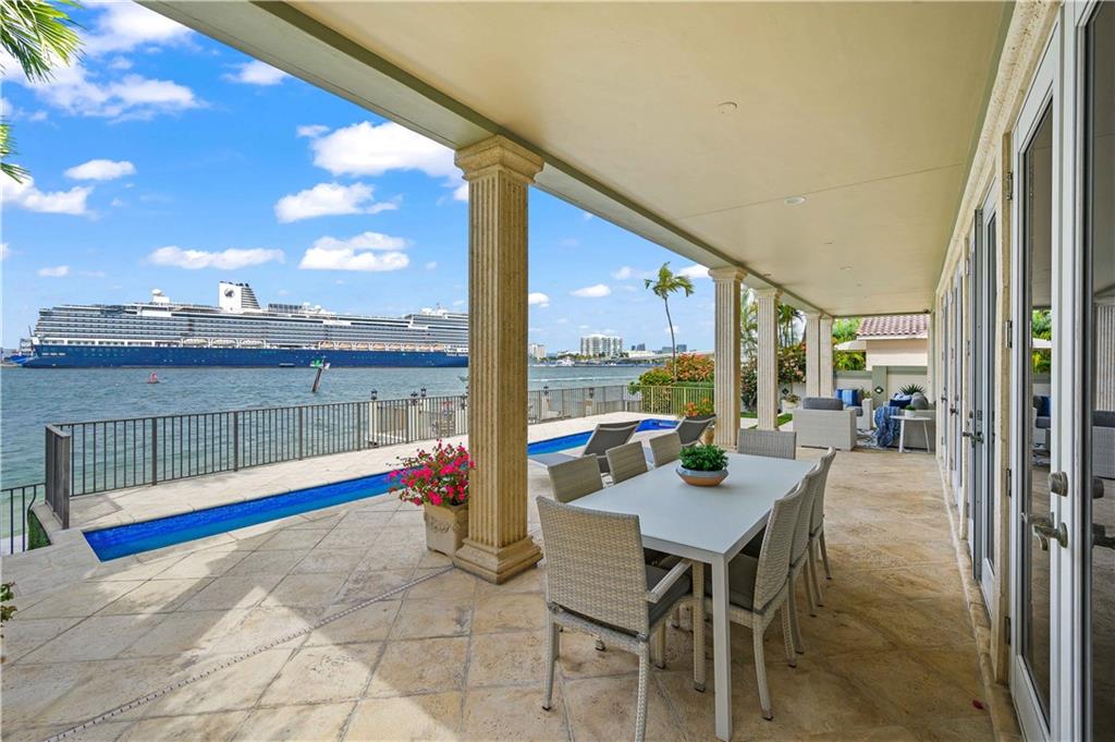 Sought after and rarely available Harbour Inlet waterfront estate, featuring incredible views of mega yachts and cruise ships 7 days a week! Breathtaking sunsets & gorgeous downtown views. A spacious 2nd floor balcony spans the length of the home. 4 large bedrooms with office/gym, a full house automatic generator, water purifying system, wood floors, impact windows, large kitchen with island and huge pantry. Beautiful coffered ceilings with crown molding, wet bar and commercial elevator with access to 3rd floor air conditioned attic. Large master suite with 2 huge master closets. The oversized concrete dock & 11X50 ft. lap pool is fun for all social gatherings. Artificial turf and a complete mosquito misting system. Generous 3 car garage. Interior photos week of April 5th.