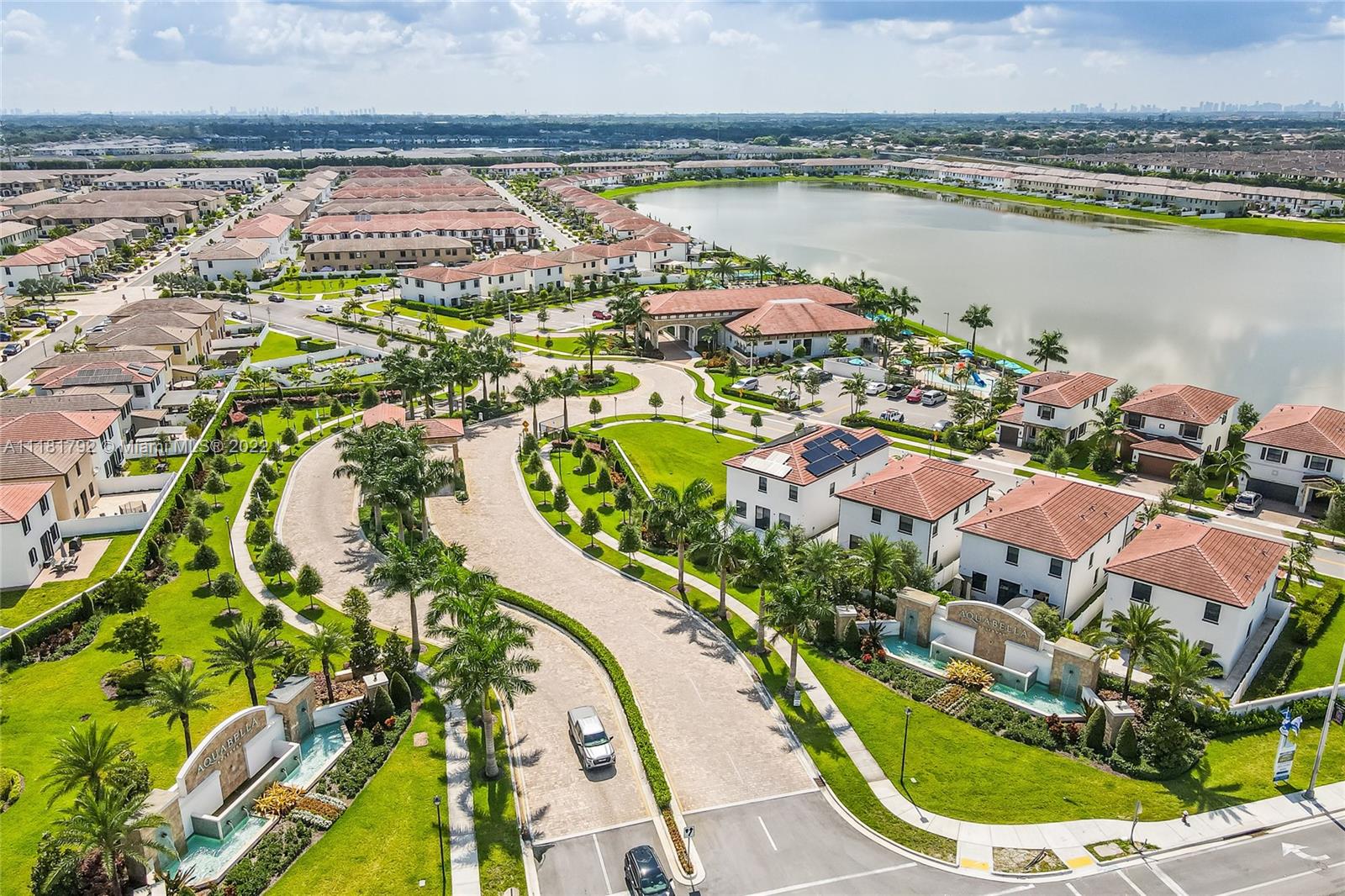 Spectacular Townhouse rarely available 4/2.5 with garage, located in the New Gated Community of Aquabella, additional den that can be use as Office, game room or library. Beautiful tile on the first floor with wood look, stainless steel appliances, granite and wood open concept kitchen, nice fence patio to fully enjoy. Resort-style amenities as LakeFront Clubhouse, Bussiness Center, Gym, Pool, BBQ area and more. Hurry Wont Last!!