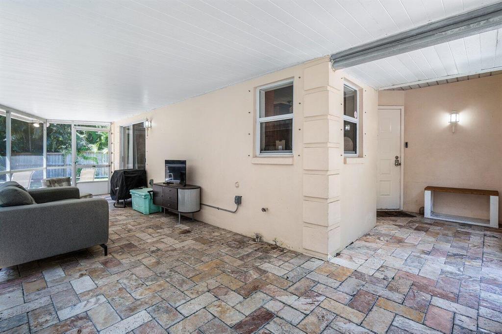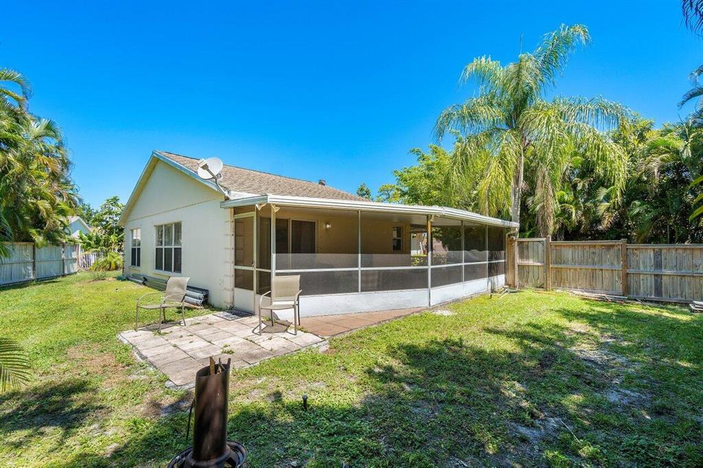 AMAZING! This UPDATED 2 bd, 2 bth BACKS UP TO THE WATER in the family friendly, LOWER HOA neighborhood of Palm Club. Enjoy peek-a-book lake views while watching the kids & pets run around the fully fenced backyard as you entertain family & friends on your TRAVERTINE PAVED & screened wrap-around porch. Inside, the RE-DONE wood tile flooring, vaulted ceilings & CUSTOM UPGRADES THROUGHOUT give this home a spacious & exquisite feel. The open living area wraps around to the kitchen boasting beautiful wood cabinetry, window to the patio & dining area w/ patio sliders. The master retreat features a large walk-in & CUSTOM en-suite bath w/ skylight, farmhouse-style vanity & ONE-OF-A-KIND, clear-coated metal roof shower w/ brick-tiled floor. The 2nd bdrm down the hall is next to another full bth w/
