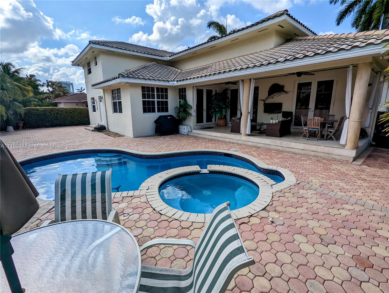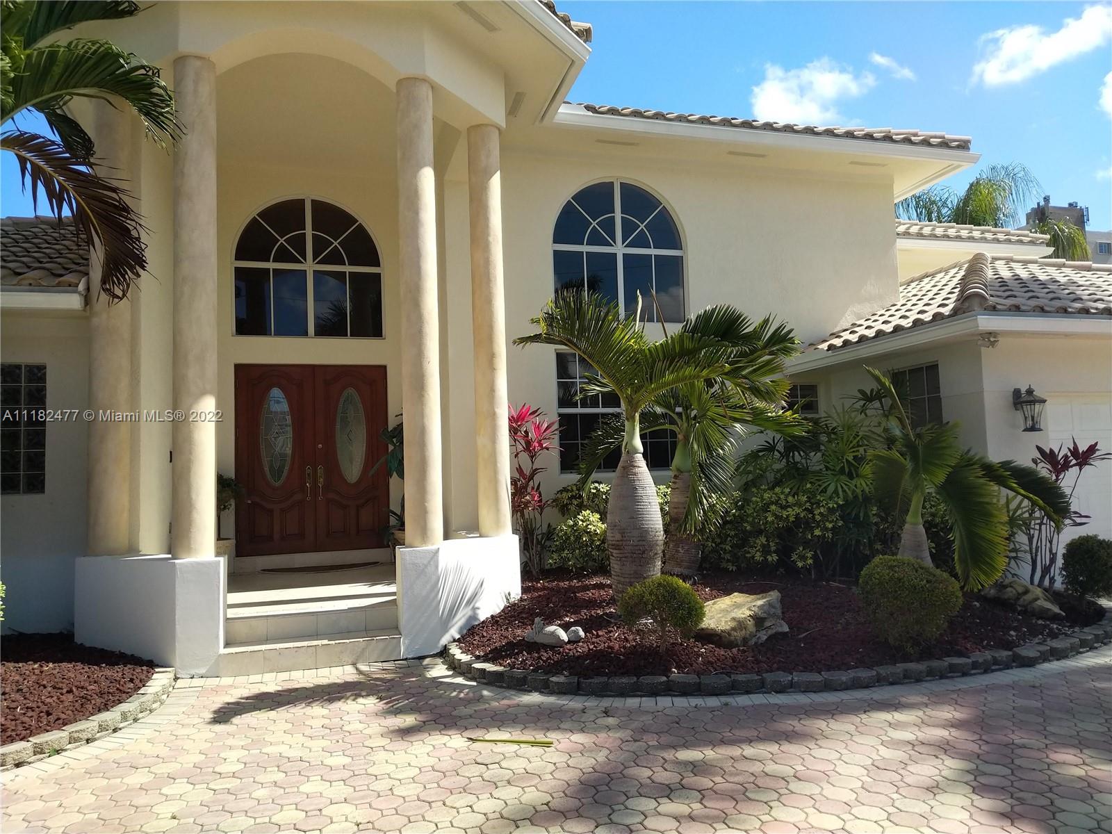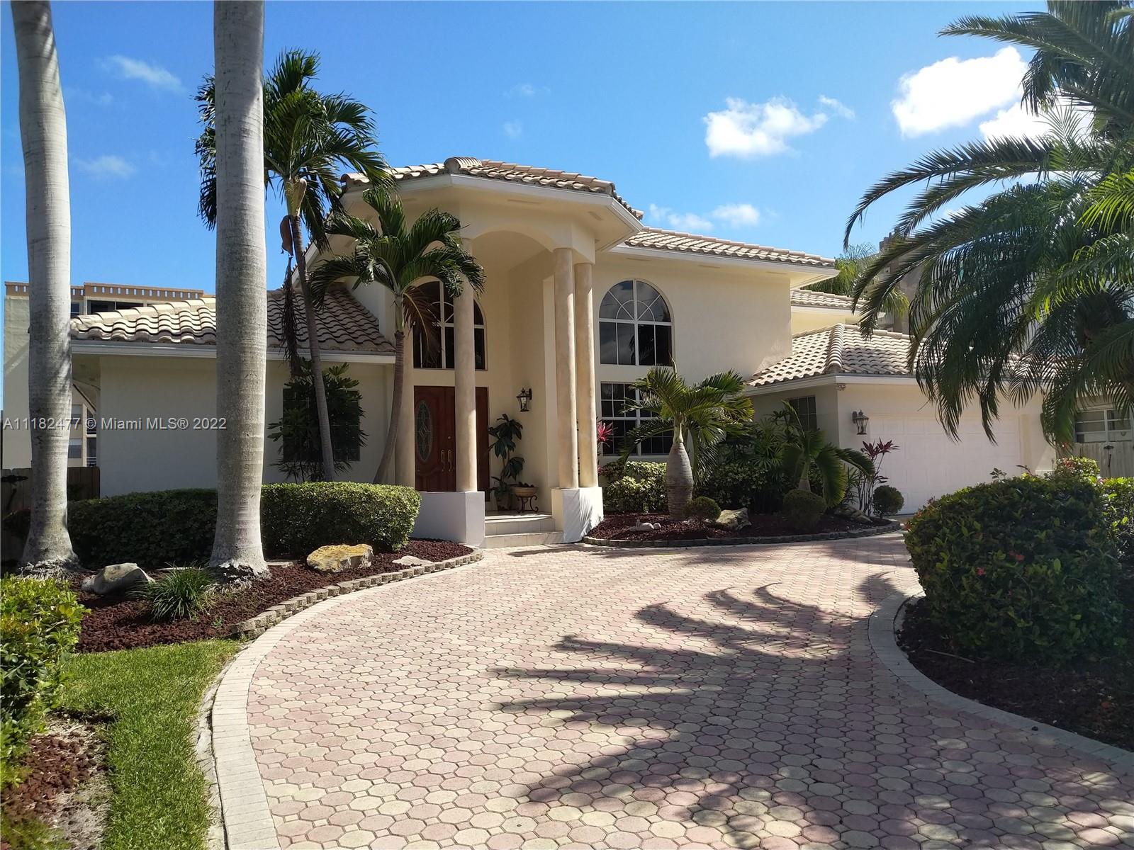 Beautiful 5/4, waterfront, ocean access home in guard-gated Eastern Shores. Dock for 80 foot yacht. Modern home with luxurious high ceilings, marble floors, granite counters, 100% hurricane impact windows, 4 AC zones, heated pool, spa, Google smart home & so much more. This house was built to modern hurricane standards with high strength roof system. The master suite is downstairs, with 2 more bedrooms downstairs and 2 more bedrooms upstairs. No fixed bridges to the ocean and this location is a very secure spot for your yacht. Includes a Waverunner elevator lift. This home is located at the private cul-de-sac at the end of 164th ST. There are only 128 homes inside this guard gate so it is a very private and secure home for your family.