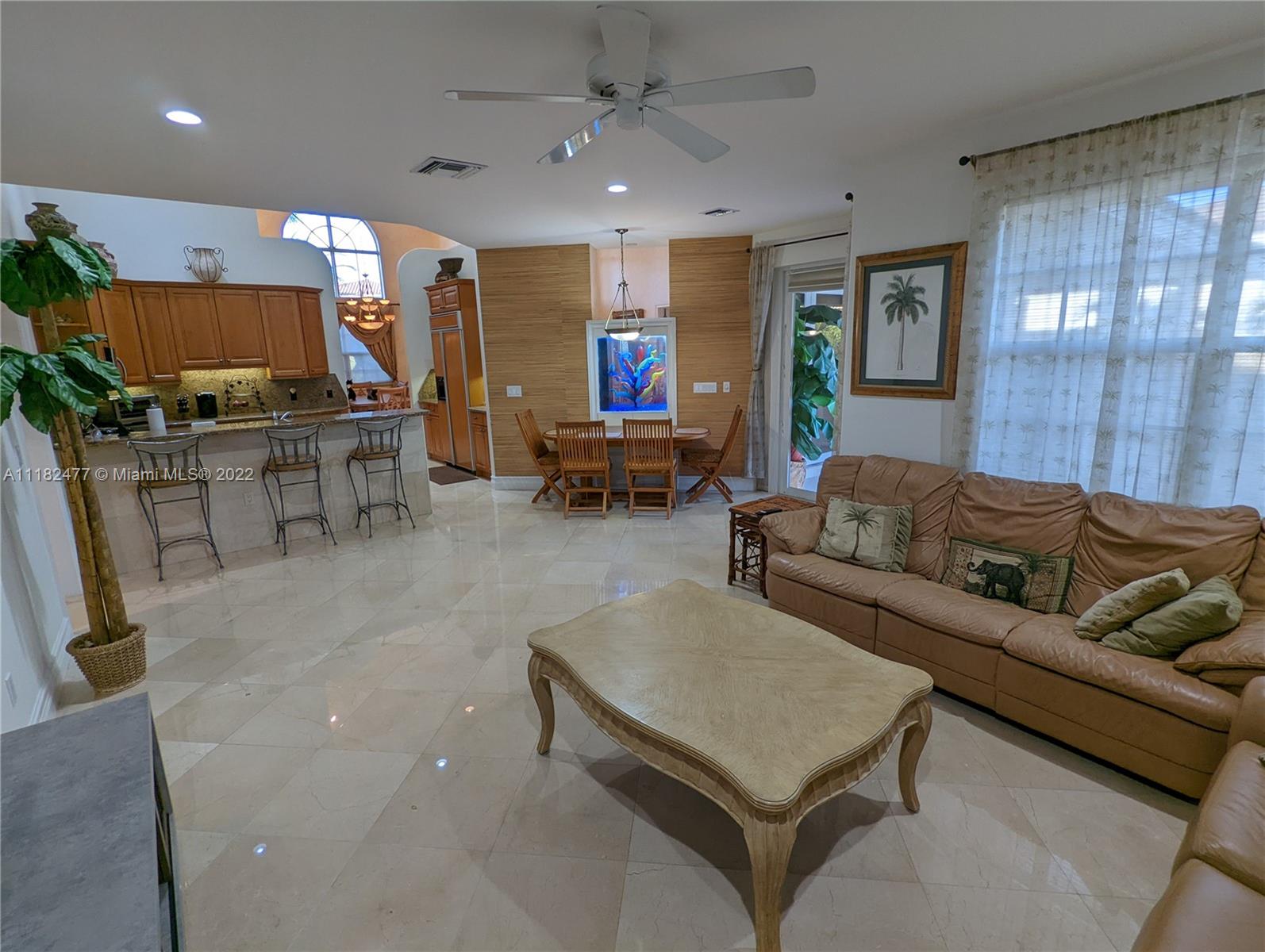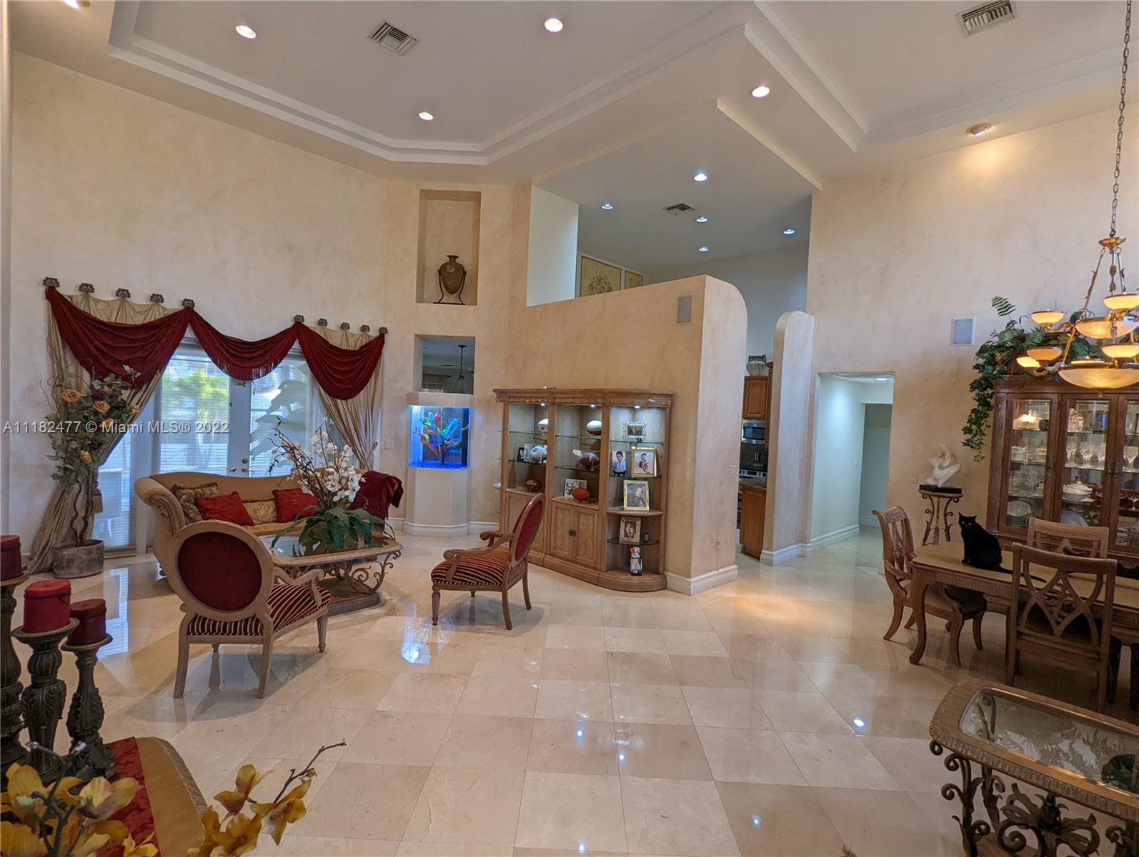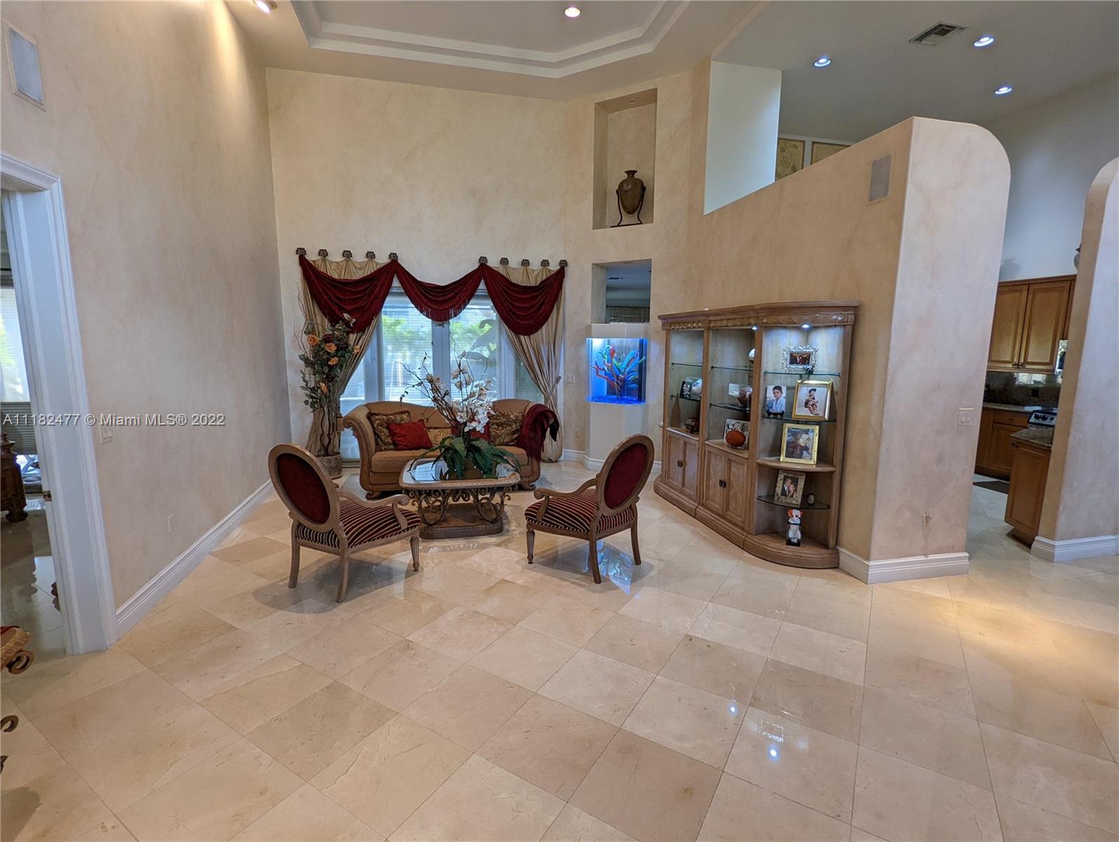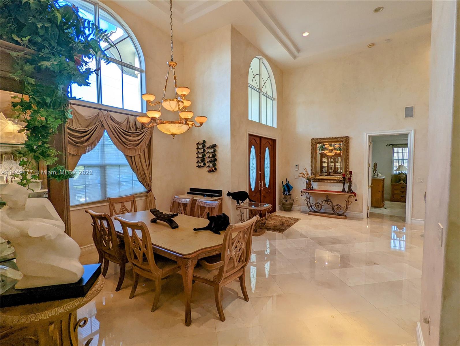 Beautiful 5/4, waterfront, ocean access home in guard-gated Eastern Shores. Dock for 80 foot yacht. Modern home with luxurious high ceilings, marble floors, granite counters, 100% hurricane impact windows, 4 AC zones, heated pool, spa, Google smart home & so much more. This house was built to modern hurricane standards with high strength roof system. The master suite is downstairs, with 2 more bedrooms downstairs and 2 more bedrooms upstairs. No fixed bridges to the ocean and this location is a very secure spot for your yacht. Includes a Waverunner elevator lift. This home is located at the private cul-de-sac at the end of 164th ST. There are only 128 homes inside this guard gate so it is a very private and secure home for your family.