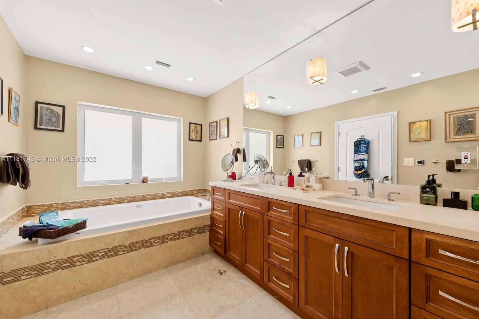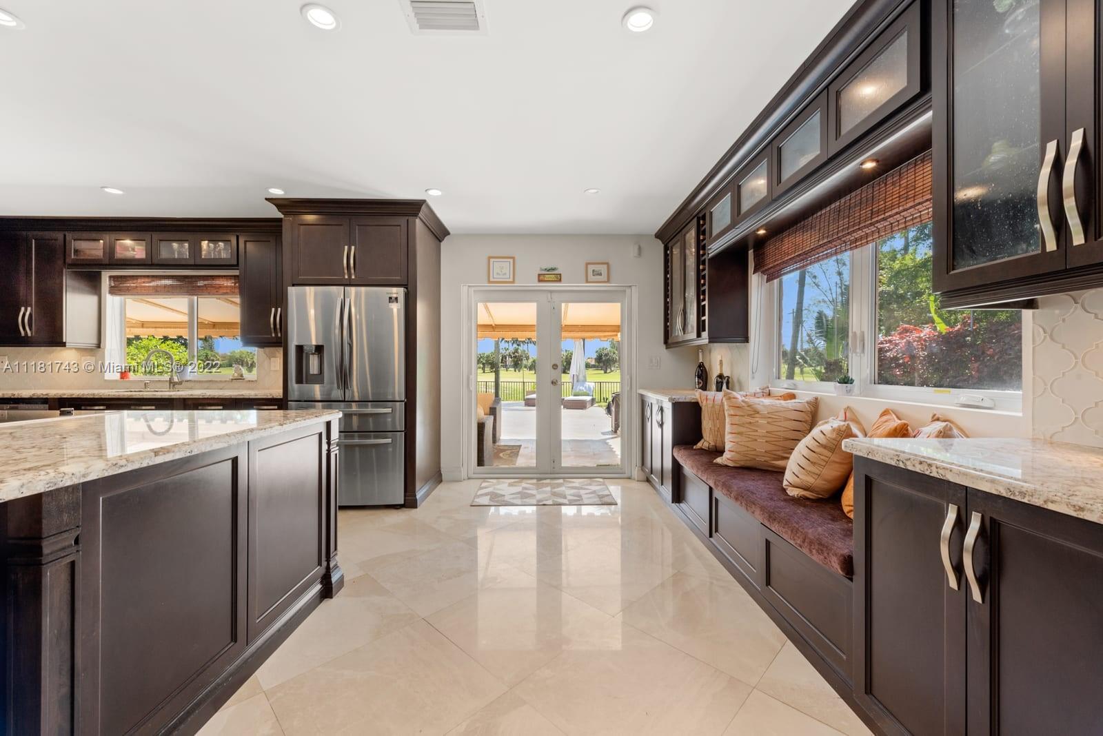 Totally updated fine executive home with top of the line finishes, oversized landscaped fenced lot on the golf course, a pool and spa that is just over a year old! Two masters, spa tubs, steamer shower, closet organizer systems, anything to make living the good life has been thought of in this home. An outdoor screened entertainment area includes built in grill and wine fridge with a tv awaits, as does the custom cabinetry throughout with an oversized kitchen island. The travertine marble patio that surrounds the oversized pool and jetted, heated spa comes complete with outdoor shower and privacy screening. For the floral lover, the entire yard boasts orchids on trees and on fencing. A zen garden also beckons for a wind down from busy days.