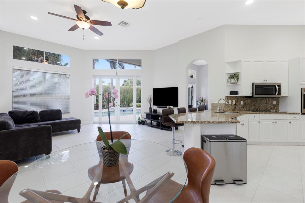 Outstanding 5 bedrooms, 3 bathrooms, 2 car garage pool home in The Greens inside Heron Bay. Master bathroom has been completely redone, no expense spared. Master bedroom has a sitting area, two separate built-in closets and faces the pool. Great outside area with covered patio, beach entry heated pool and spa surrounded by beautiful landscape. Stainless steel appliances and granite counter tops kitchen with breakfast area and open to family room. Formal living and dining room. Garage has electric car charger. Resort style gated community with pools, fitness center, clubhouse, tennis court, and playground. Don't miss this opportunity.
