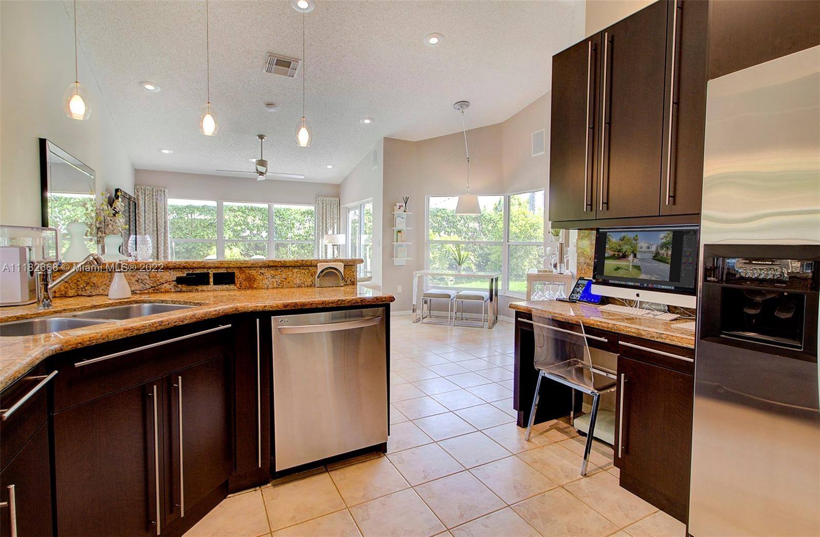 Spacious and bright -Stunning home in Chapel Oaks! Very well maintained and nicely upgraded and has had only had 1 owner. 3/ 2.5 plus a bonus room upstairs. This home features a nice open kitchen with extended cabinets, granite counters and back splash, upgraded appliances, and a custom built in buffet. High volume ceilings with recessed Lutron lighting with control system throughout, tankless water heater, Glass Staircase railing. The bathrooms have glass enclosures, upgraded vanities with granite tops, and marble floors. The garage that can be used also as a rec room, it has beautiful poured “granite look’ flooring, built in upgraded shelving with black granite counters, sound proofing throughout and a 2 ton mini split ac. The front and backyard have low voltage led lighting throughout.