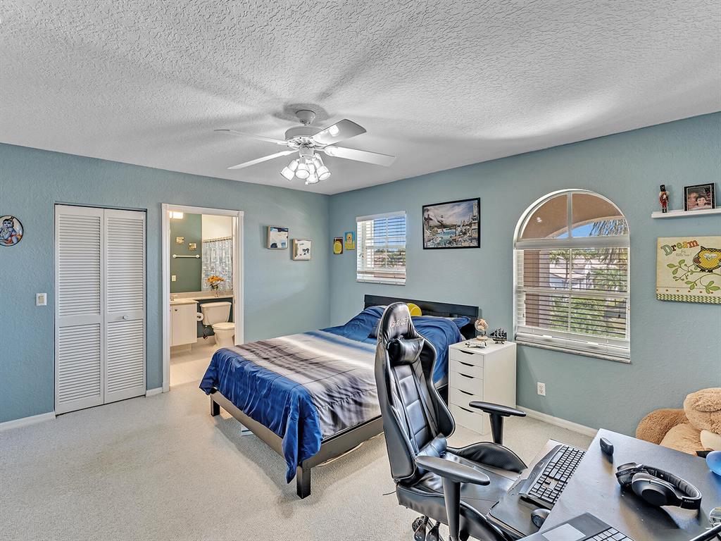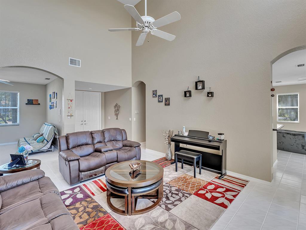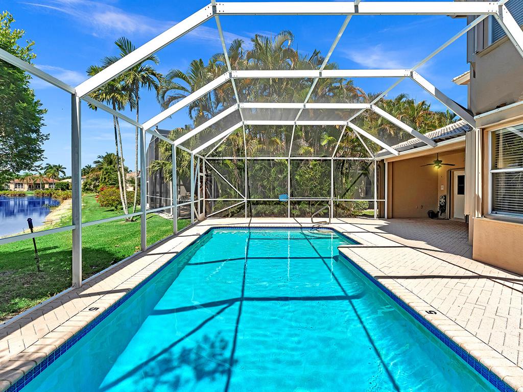 Outstanding LAKEFRONT Contemporary FIVE BEDROOM -FOUR BATH pool home set on a quiet interior lot with peaceful water view. RARE, expanded Dorchester V model pushed out the family room and master suite to give you 112 sq ft of additional living space. From the moment you walk through the double front entry doors, you're going to love this home! Inside you'll find tasteful decor, volume ceilings, solid core doors, arched & transom windows, attractive lighting fixtures & fans. Kitchen is a chef's delight & perfect for entertaining with its attractive granite buffet/snack bar. Kitchen was updated with tumble stone back splash, extra deep & wide stainless sink, Euro faucet and granite counter tops. Note: windows have accordion shutters. For a detailed description of home & community, click her