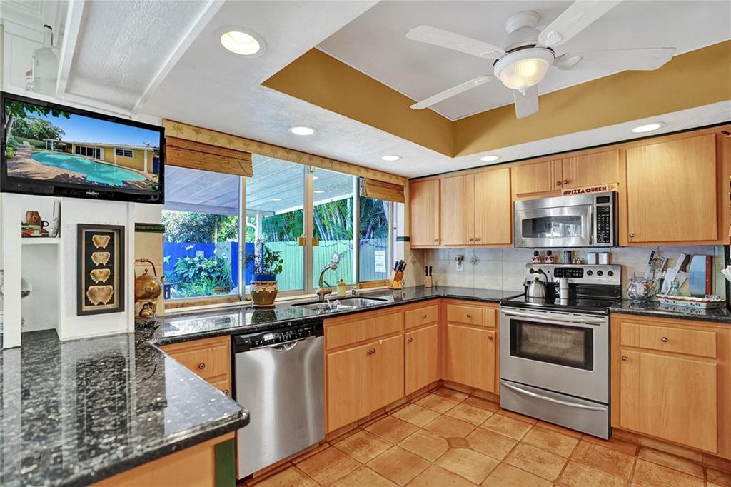 Welcome to spectacular turnkey pool home in incredible location. Amazing resort-like tropical backyard and landscaping with a free form pool with spa. Located blocks to prestigious Hollywood Lakes, minutes from the beach and houses of worship and steps to the lake and intracoastal. Sliding glass doors lead to backyard perfect for entertaining and hours of fun in the sun. The kitchen has a fantastic panoramic view of the pool and patio, giving a seamless connection between indoor and outdoor living. An Oasis in The Heart of East Hollywood across from Eco golf course. Warm and cozy home with authentic Mexican tile. Large granite top bar for guests while you dazzle them with your culinary skills. SS appliances. Bright and comforting. You feel like your always on vacation.