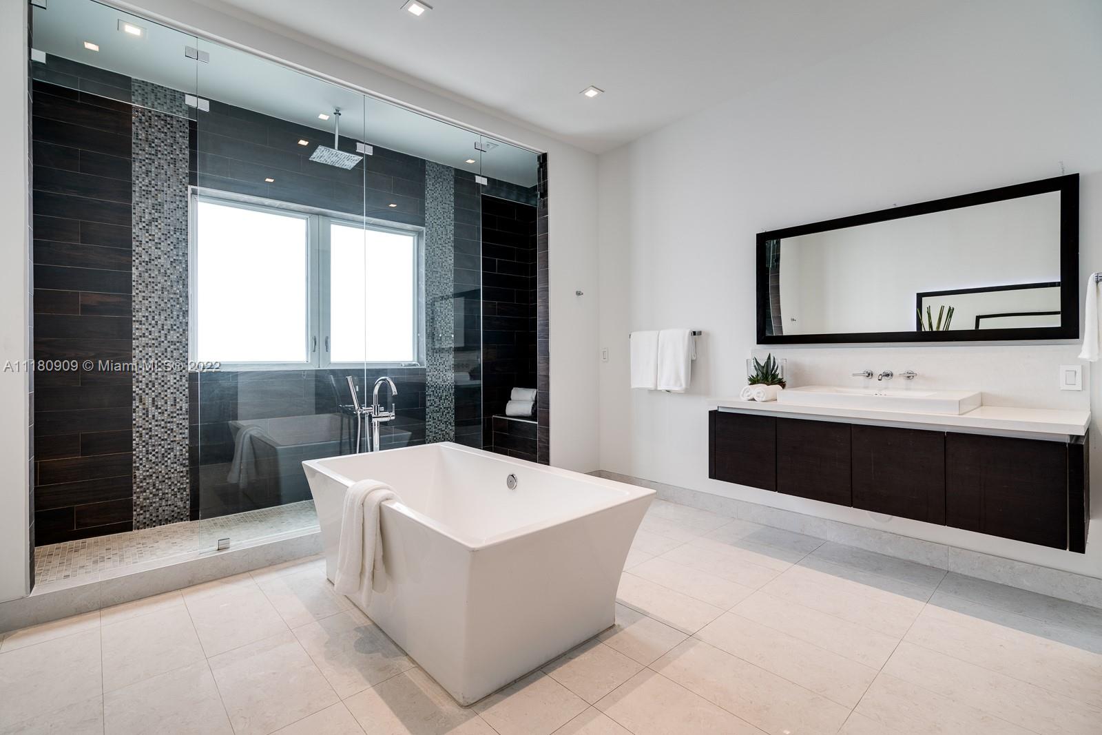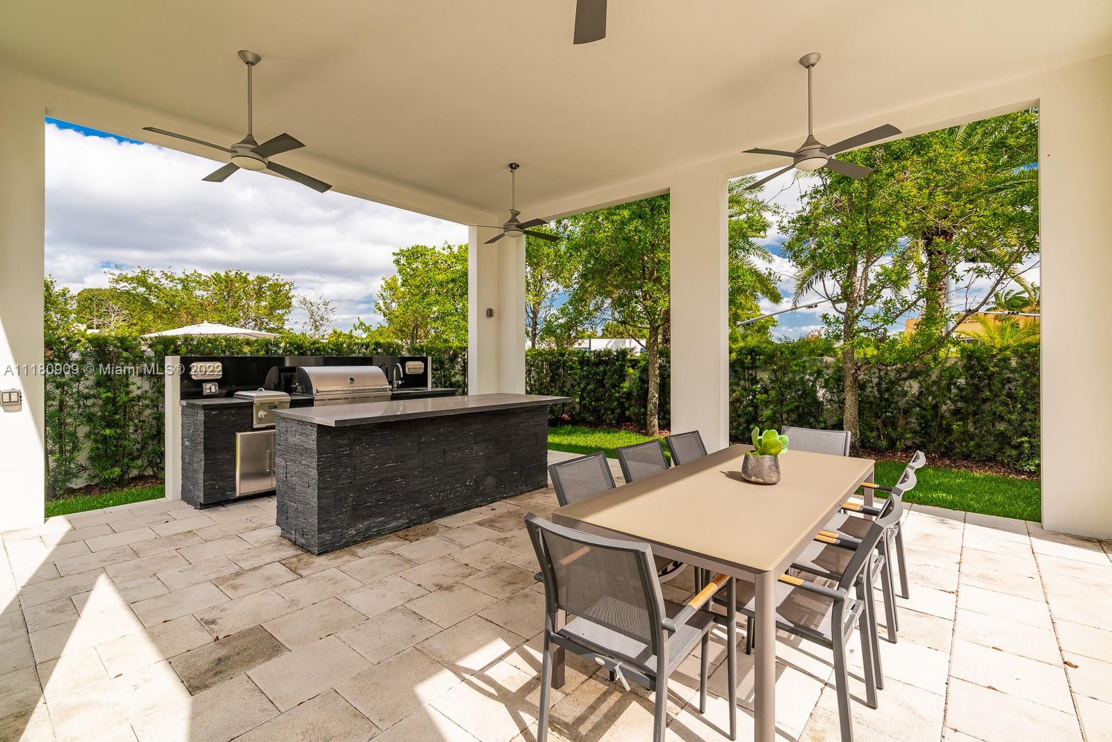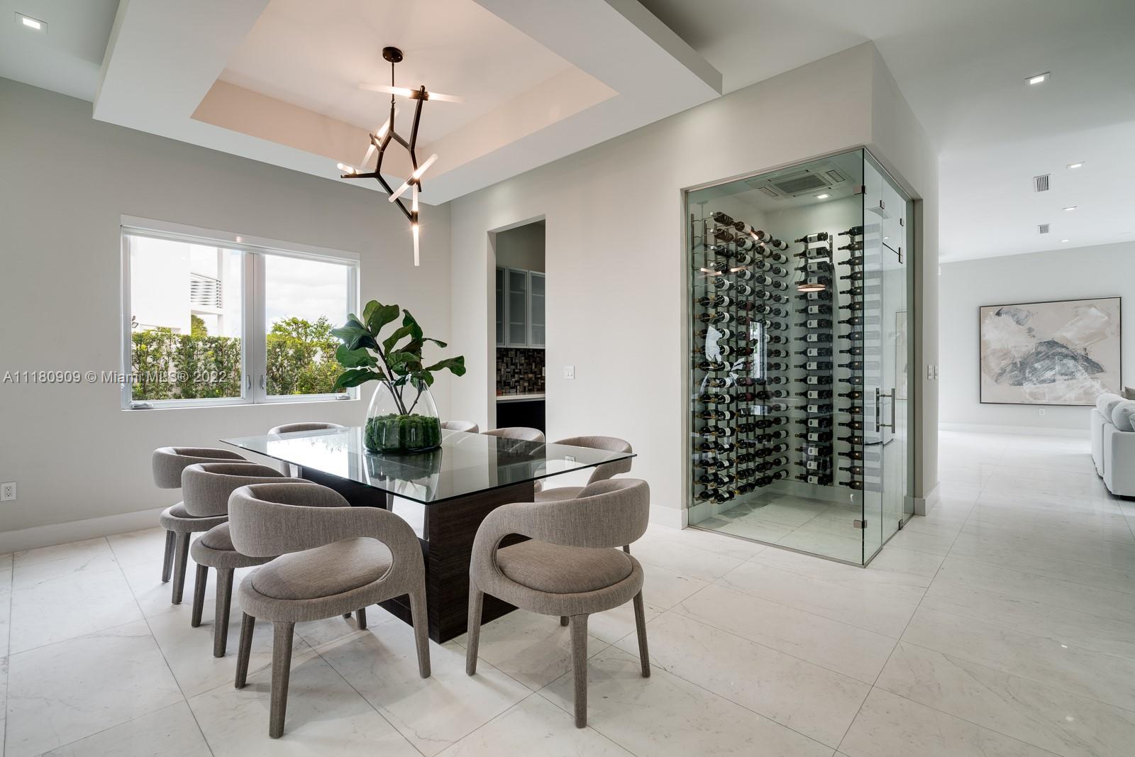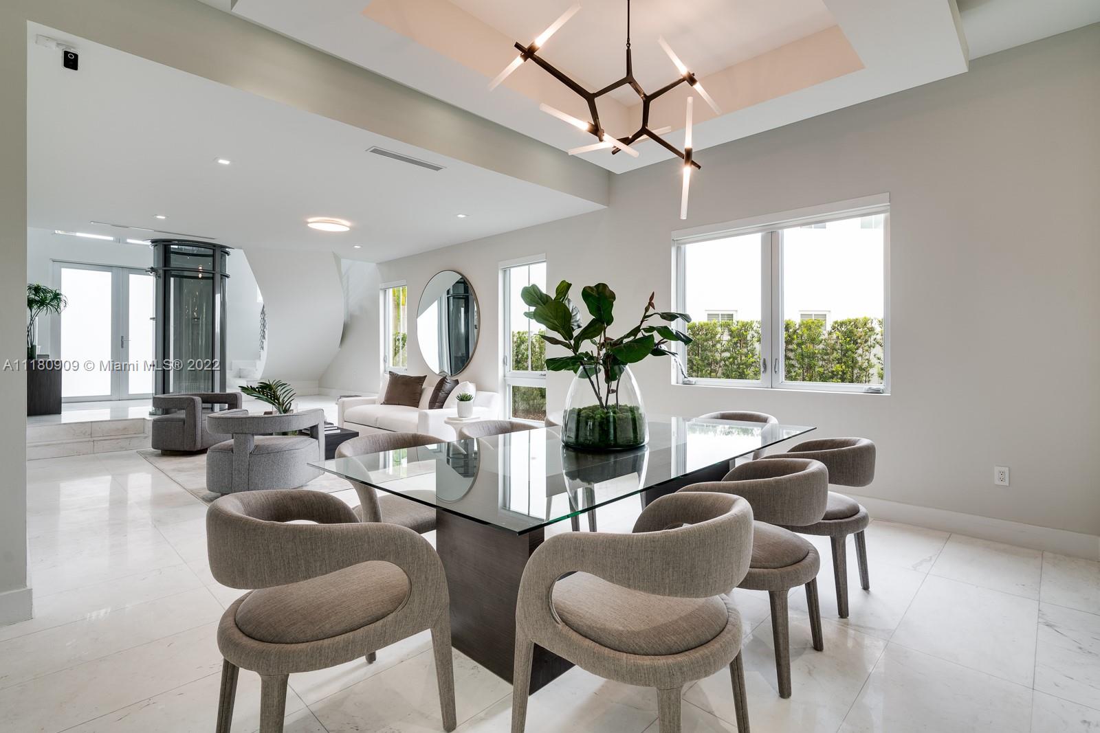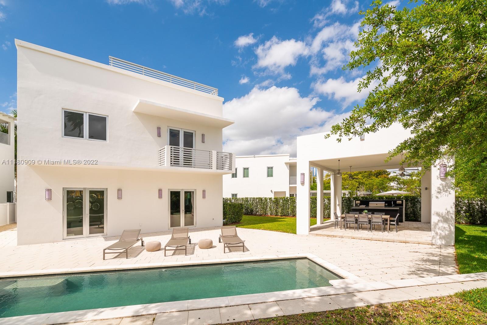 Stunning 5 bedroom, 6.5 bathrooms in the highly desired gated community of Oasis Park Square at Doral. This bright, modern, and spacious home features contemporary architecture, intelligent design and masterful construction. New roof as of 2022. The home is ideal for families with ample space to entertain. The gourmet kitchen features an open layout overlooking the family room. Master bedroom suite offers a huge walk in closet and luxurious spa bathroom with whirlpool tub and shower. Resort style patio on double wide lot with pool and covered summer kitchen and dining. Expansive rooftop terrace with additional summer kitchen, jacuzzi and area to entertain! Additional features: elevator, wine cellar, office, impact windows/doors, and 2 car garage.