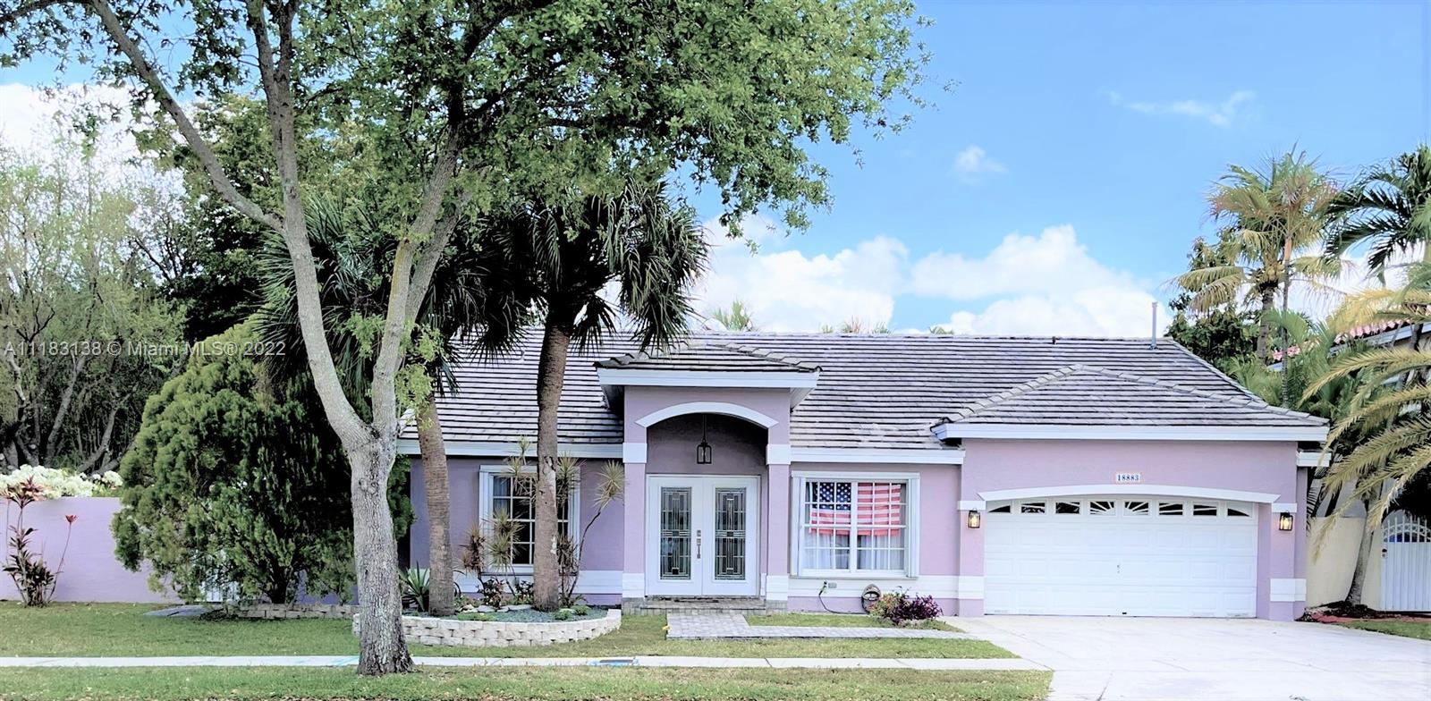 BEAUTIFUL AND SPACIOUS 3 BEDROOM, 2 BATHROOM, 2-CAR GARAGE, CORNER HOME IN “LAKES ON THE GREEN” COMMUNITY. THE OPEN SPACE HOUSE HAS PLENTY OF NATURAL LIGHT AND IS UPGRADED WITH 24X36 PORCELAIN TILE FLOORING; KITCHEN WITH SPACIOS CABINETS, STAINLESS STEEL APPLIANCES, DRAWER MICROWAVE, QUARTZ BACKSPLASH AND COUNTERTOPS AND MODERN BATHROOMS. THE HOME FEATURES: LARGE MASTER BEDROOM WITH WALK-IN CLOSET, MASTER BATHROOM WITH FREESTANDING TUB AND SHOWER SEPARATED. VAULTED CEILINGS, ACCORDION HURRICANE SHUTTERS AND HIGH-IMPACT FRONT DOOR. PAVERS AND TILE THROUGHOUT THE PATIOS. NATURAL GAS WATER HEATHER, DRYER AND KITCHEN WITH LOW UTILITY BILLS. WALKING DISTANCE TO SCHOOLS, SHOPPING, BANKS, RESTAURANTS HIGHWAYS. 24/7 GATED COMMUNITY AND ROVING SECURITY PATROL.