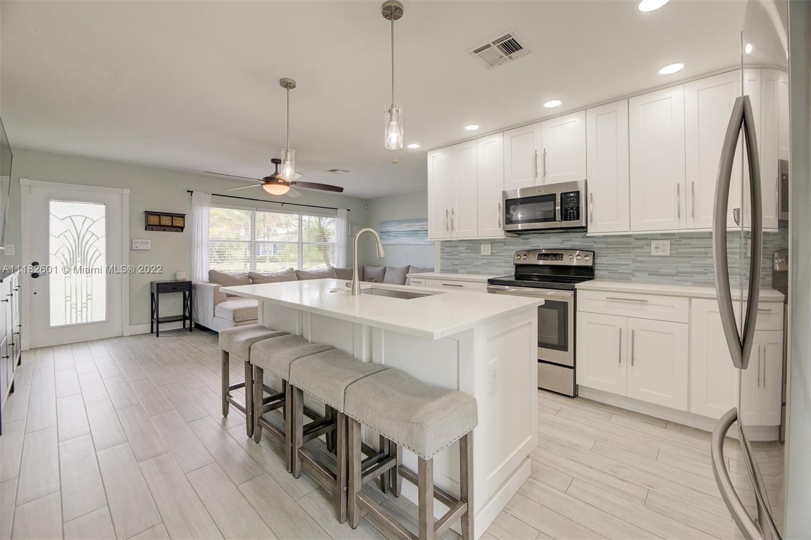 BEAUTIFUL, SUPER CLEAN & FULLY UPGRADED 3 BEDROOMS 2 BATHROOMS CORNER LOT HOME, HUGE YARD W/ROOM FOR A POOL- ONLY MINUTES TO THE BEACH! PERFECT TURN-KEY HOME OR VACATION RENTAL- NO HOA, NO RESTRICTIONS! HOME FEATURES: 2014 SHINGLE ROOF, 2017 CENTRAL A/C UNIT, 2022 WATER HEATER, CUSTOM KITCHEN WITH SOFT CLOSE CABINETS, QUARTZ COUNTERTOPS & STAINLESS STEEL APPLIANCES, LED LIGHTING, ALL TILE FLOORS, SEPARATE LAUNDRY, NEWER ELECTRIC PANELS, EASY LOW MAINTENANCE LAWN- HURRY TO SEE THIS ONE, IT WON'T LAST LONG!