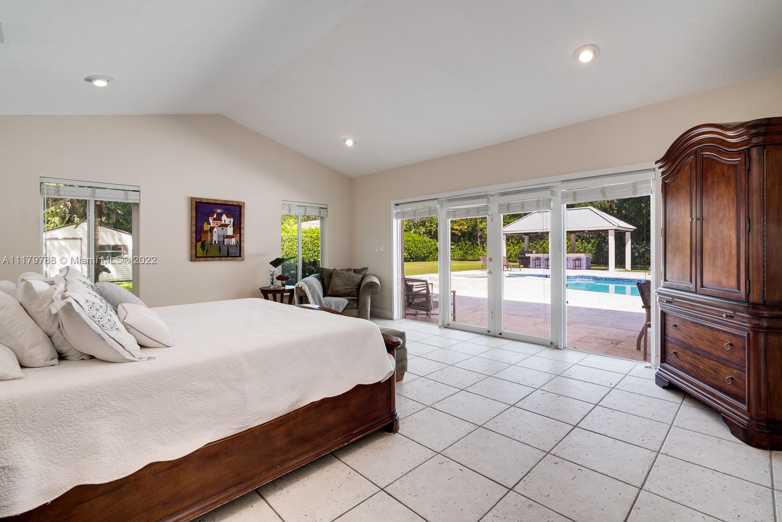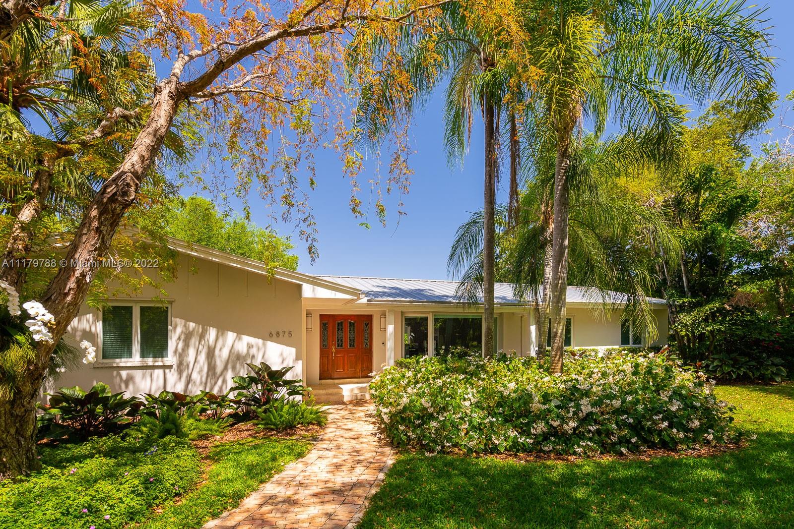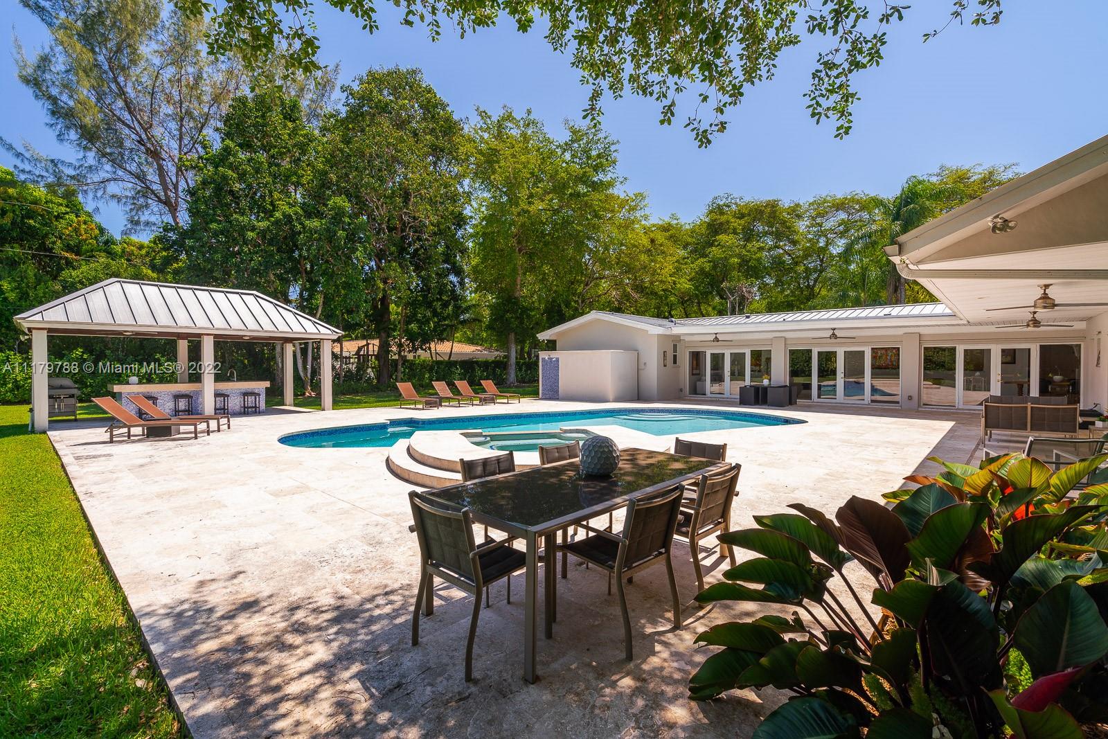 You will be charmed the moment you arrive at this wonderful home which sits on a magnificent and lush 37,156 sq ft property in highly sought-after N Pinecrest. This 6 bedroom / 4 bath split plan has an updated kitchen that opens to the family room. The formal living, dining and Florida rooms are all spacious and light-filled. French doors lead to large terrace with pool, a covered gazebo with wet bar & extensive manicured gardens - perfect for entertaining! The private primary suite includes two office / sitting areas and a substantial master bath & walk-in closet. Other special features include guest suite w/ separate entrance, gated 2-car garage, cabana bath & gorgeous oaks. Don't miss this unique opportunity that has infinite potential!