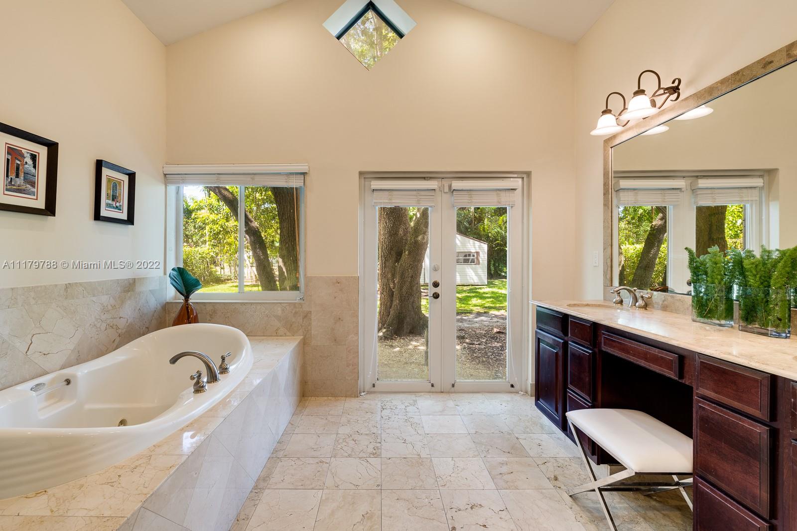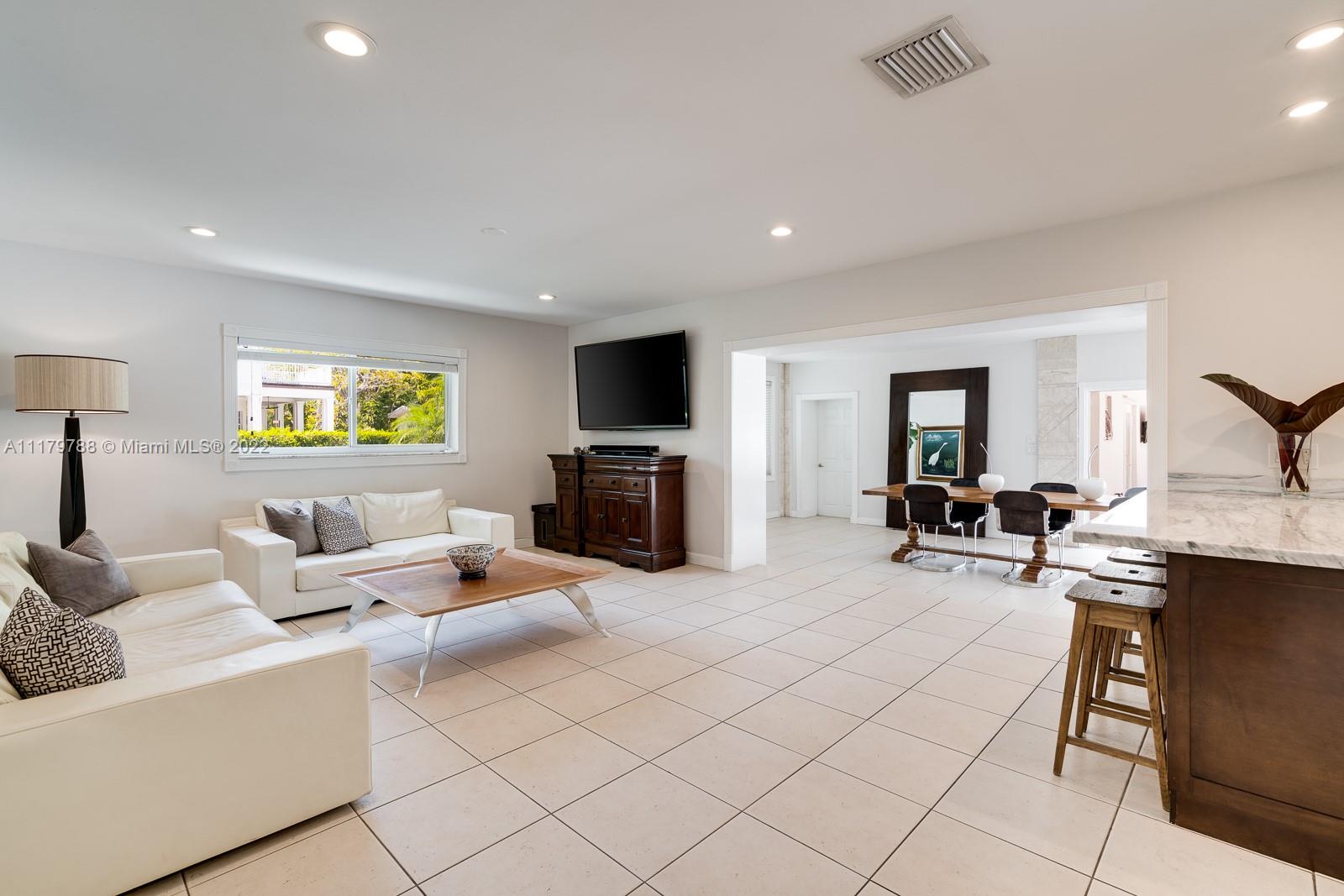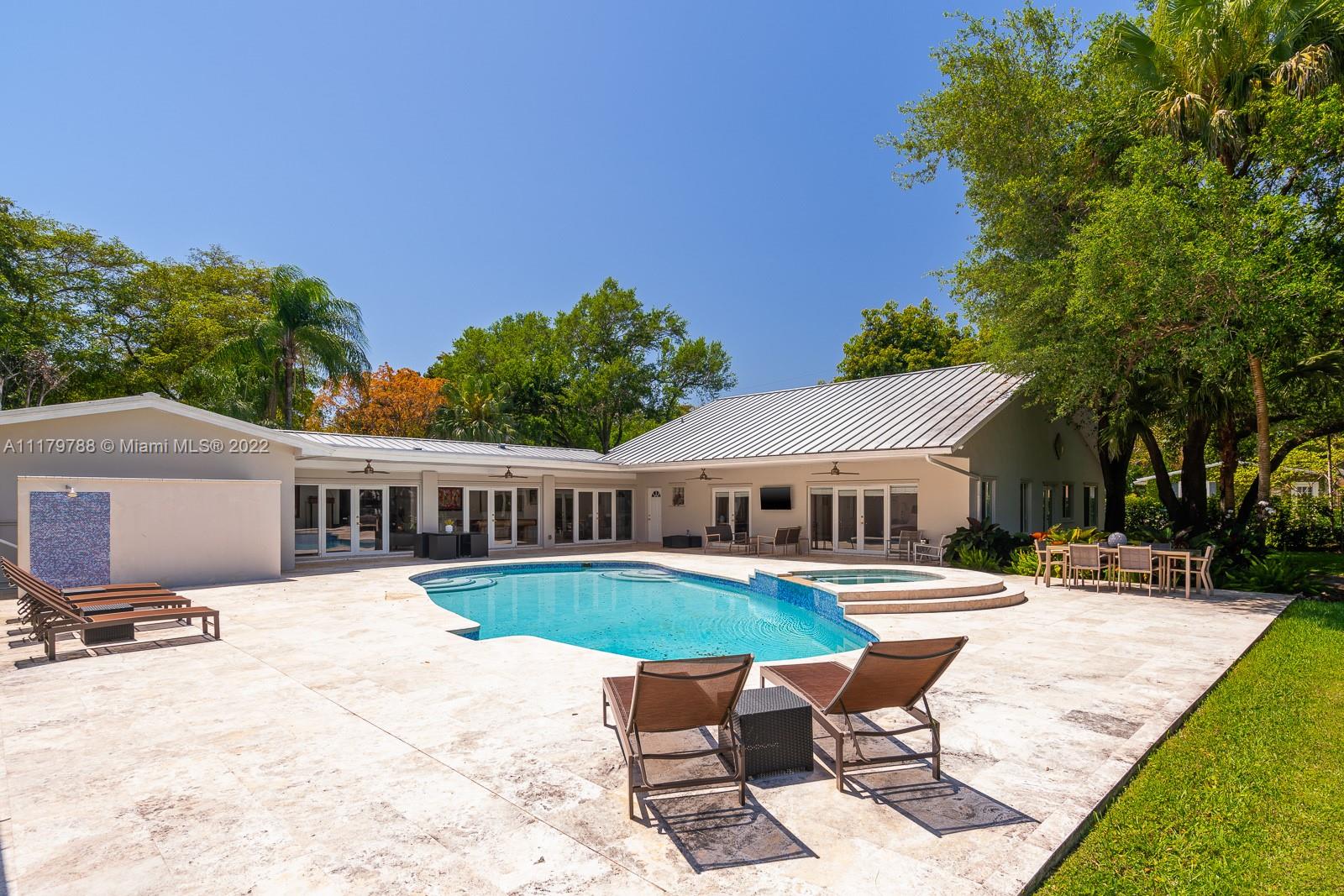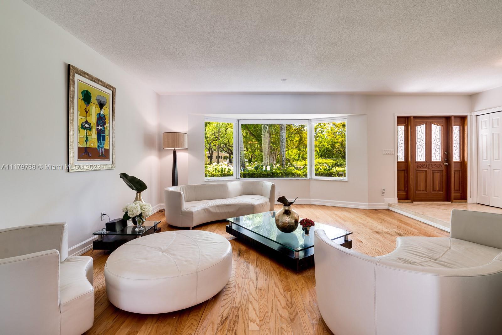 You will be charmed the moment you arrive at this wonderful home which sits on a magnificent and lush 37,156 sq ft property in highly sought-after N Pinecrest. This 6 bedroom / 4 bath split plan has an updated kitchen that opens to the family room. The formal living, dining and Florida rooms are all spacious and light-filled. French doors lead to large terrace with pool, a covered gazebo with wet bar & extensive manicured gardens - perfect for entertaining! The private primary suite includes two office / sitting areas and a substantial master bath & walk-in closet. Other special features include guest suite w/ separate entrance, gated 2-car garage, cabana bath & gorgeous oaks. Don't miss this unique opportunity that has infinite potential!
