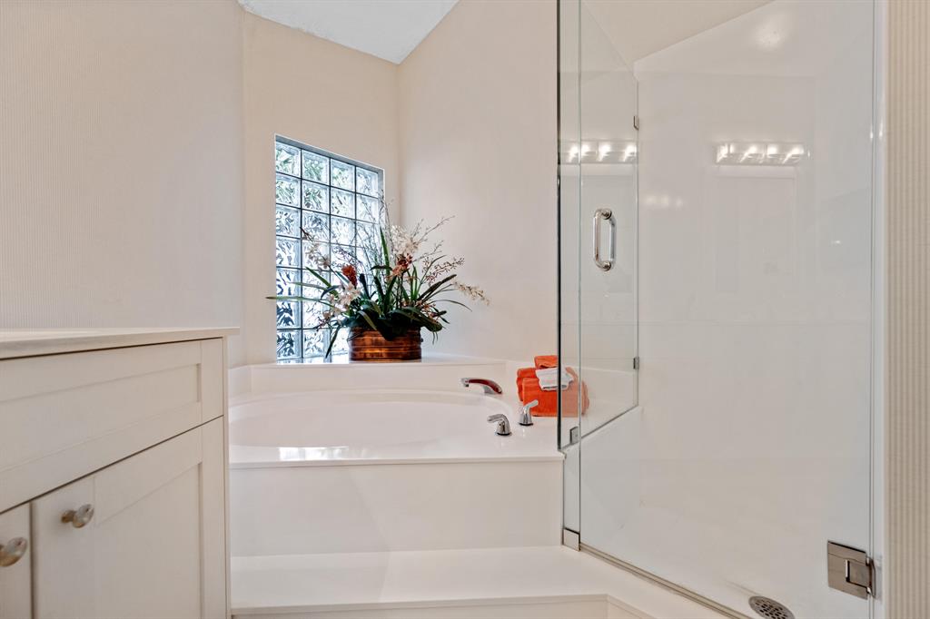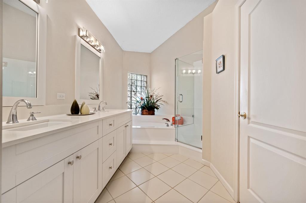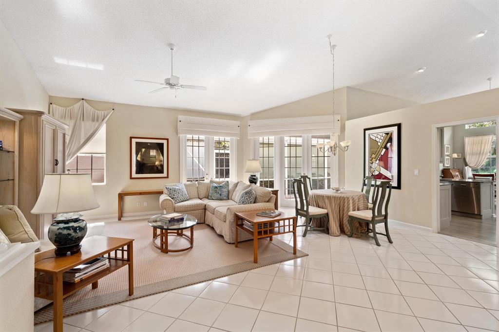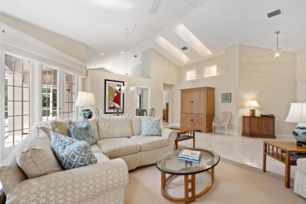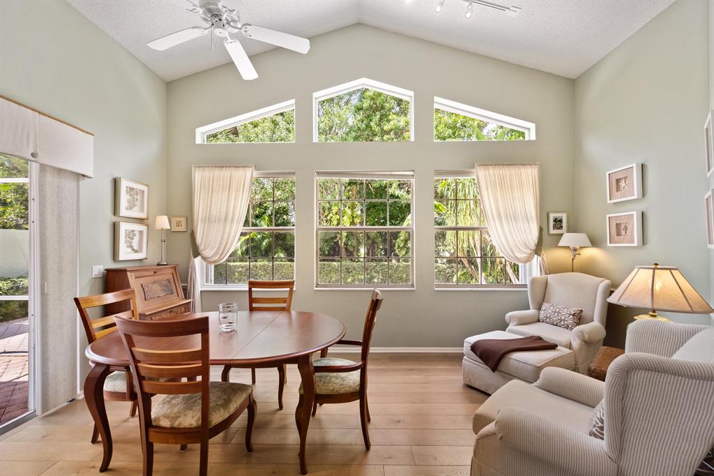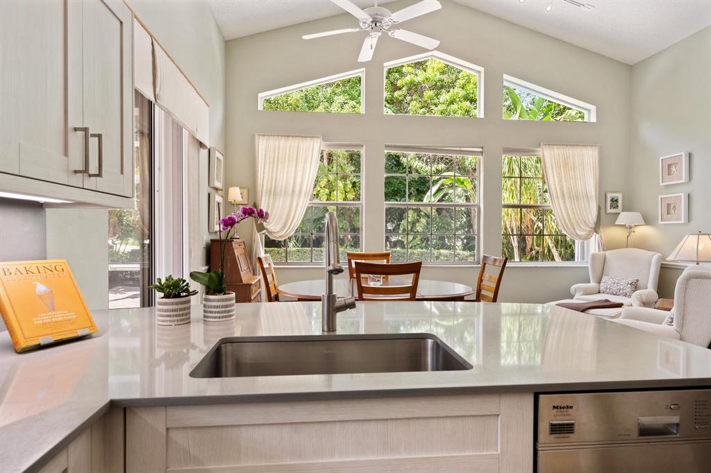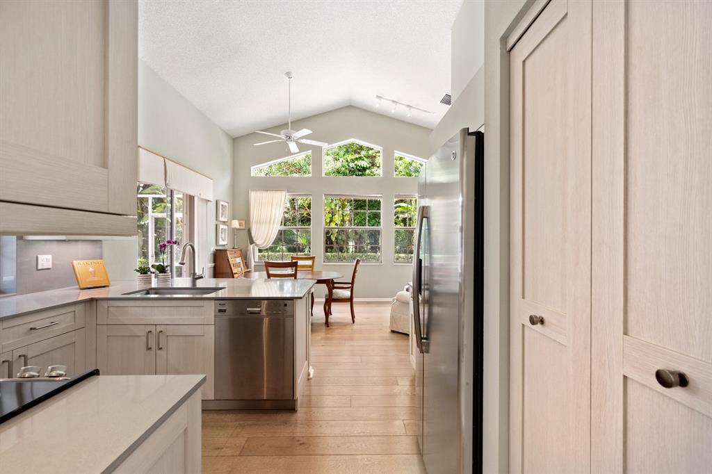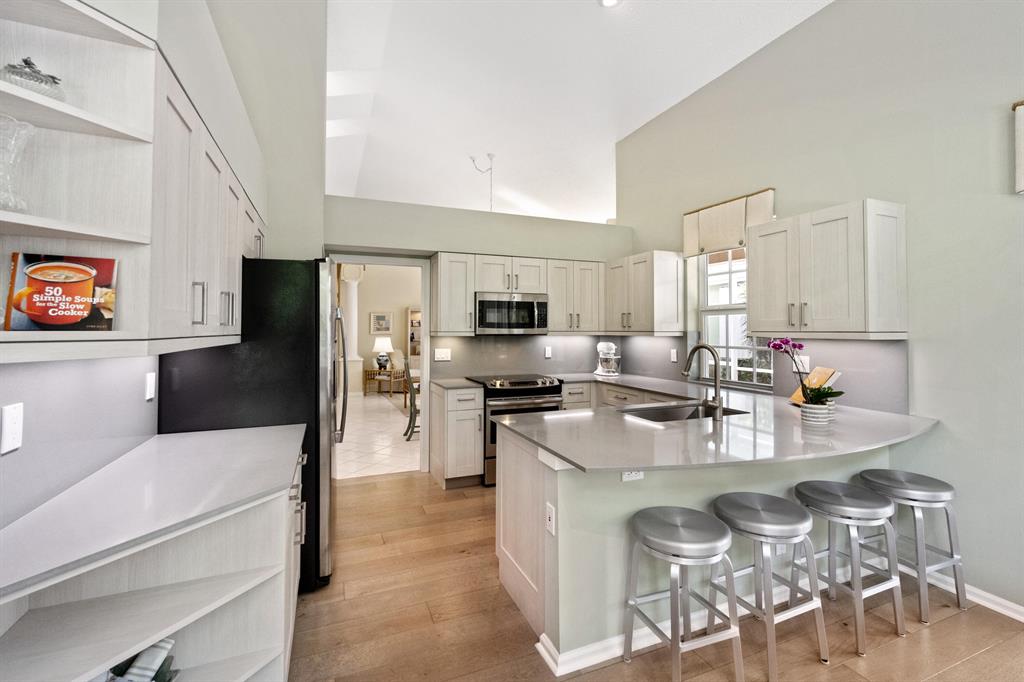 Great value in today's market! Beautiful Bermuda style home --2 BR+Office, 2.5 Baths--with 2,069 AC Living Area. Spacious Great Room w/vaulted ceilings & French doors opening to screened brick paver patio. Updated Chef's Kitchen features beachwood-colored contemporary cabinets w/custom pull-outs for ample storage, grey quartz counters & backsplash, stainless steel GE Profile appliances (and Miele dishwasher) and English oak wood flooring. Kitchen opens to light-filled Family Room with its wall of windows & sliding doors to the screened patio. Tranquil Master Bedroom also has vaulted ceilings & lg window overlooking patio w/mature landscaping. Master Bath w/white vanity, white quartz counters with dual sinks as well as separate tub & shower w/frameless shower enclosure. HIs & Her closets.
