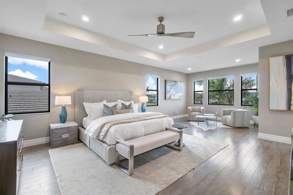 Experience true luxury in this stunning, move-in ready 5 bed, 6 bath Anabelle Contemporary in sought after Boca Bridges. This floorplan is ideal for entertaining with formal living and dining rooms, wine cellar, family room, club room, loft and cabana bath. The gourmet kitchen is equipped with stacked cabinets, Quartz countertops, upper and lower cabinet lighting, KitchenAid SS appliances, pantry and oversized island. Second floor features the primary suite plus 3 additional bedrooms with en-suite baths, loft and laundry room. Primary suite boasts a coffered ceiling, sitting area and dual walk-in closets outfitted by California Closets. Complete with impact glass windows, upgraded pavers, summer kitchen with gas grill and refrigerator, pool, and full house generator.