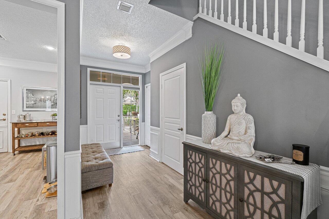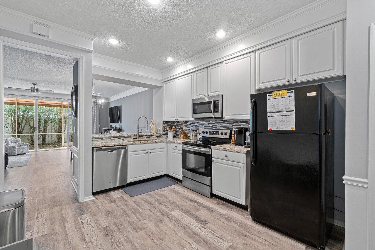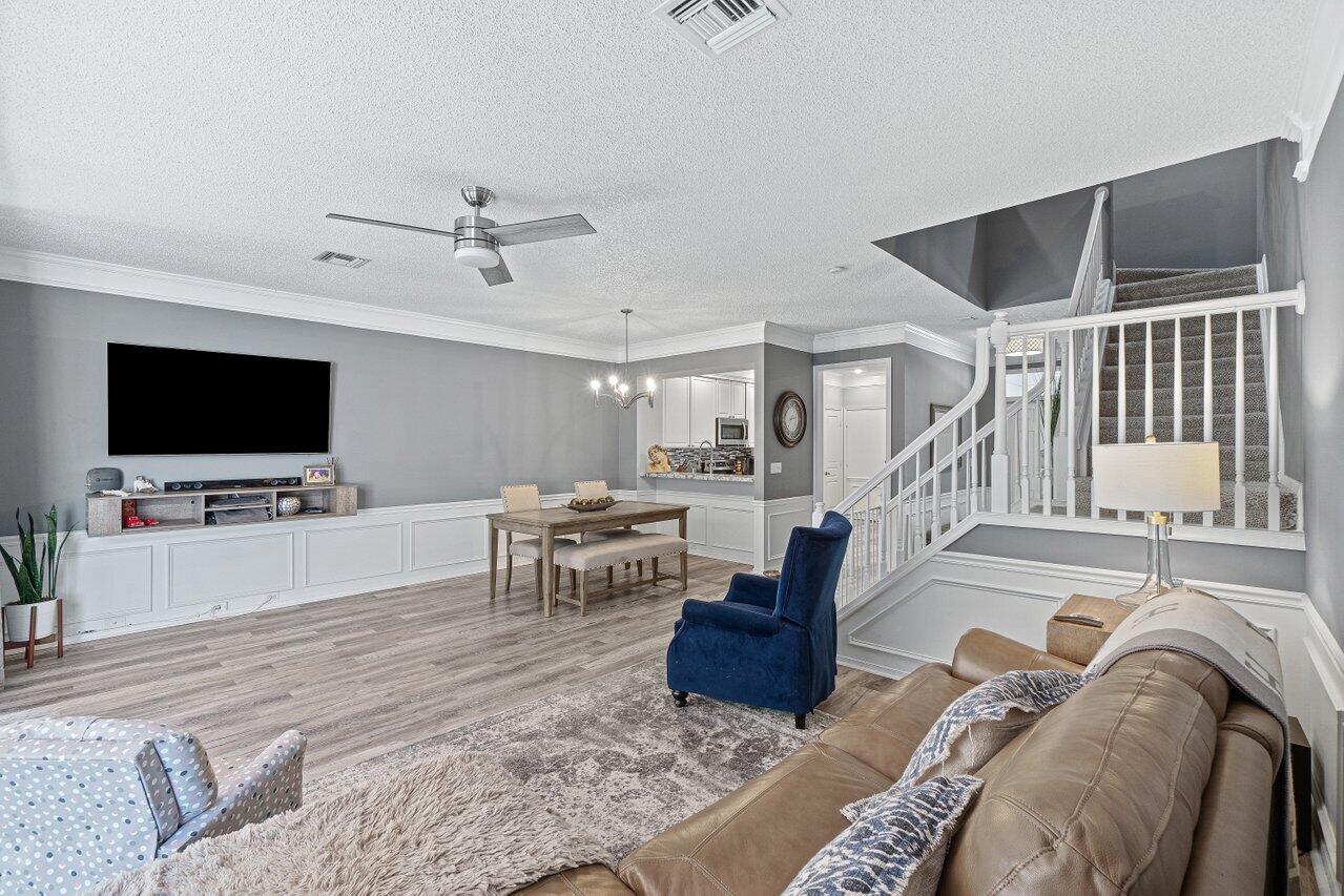 Beautifully updated townhome in Grand Fairfield! Highly sought after 3 bedroom, 2.5 bathroom, 1 car garage floor plan. From the moment you walk in, you are greeted with open, light, and bright living space. The main level has a huge living room, an opened up kitchen with granite counter tops, tiled backsplash, and SS appliances, 1/2 bathroom, vinyl flooring, and a screened patio. The second floor has 3 spacious bedrooms, 2 full bathrooms, the second bathroom has been remodeled. The master bedroom has vaulted ceilings, a huge bathroom, and walk in closet. The Fairfield community is a 24/7 guard gated with fantastic amenities such as community pools & spa, clubhouse, playground, tennis, basketball, bike & jogging paths, and so much more! The maintenance fee covers exterior insurance,