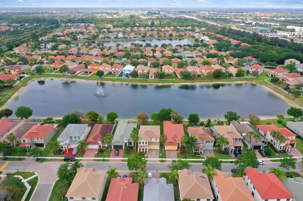 This lakefront beauty is not to be missed. Rarely available floor plan with master on the first floor with fabulous view of the lake. Fully tiled downstairs. Upstairs features additional 2 bedrooms with laminate flooring and a huge open loft area great as play room/ office/ gym etc. Could easily be converted to 4th bedroom. Hoa includes basic cable, lawn maintenance of front and rear yards including irrigation,. Clubhouse, Gym, Tennis Courts, Basketball Courts and pool. Easy access to Turnpike and shopping close by. Very close to King's Academy.