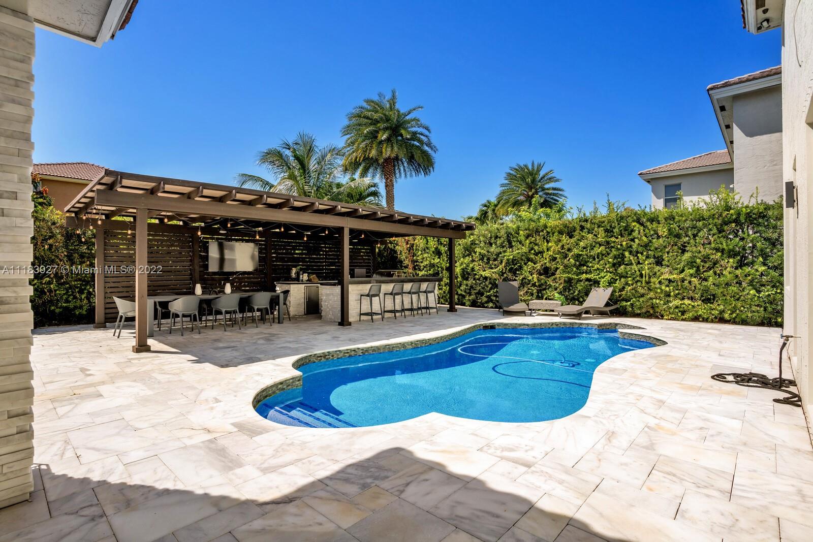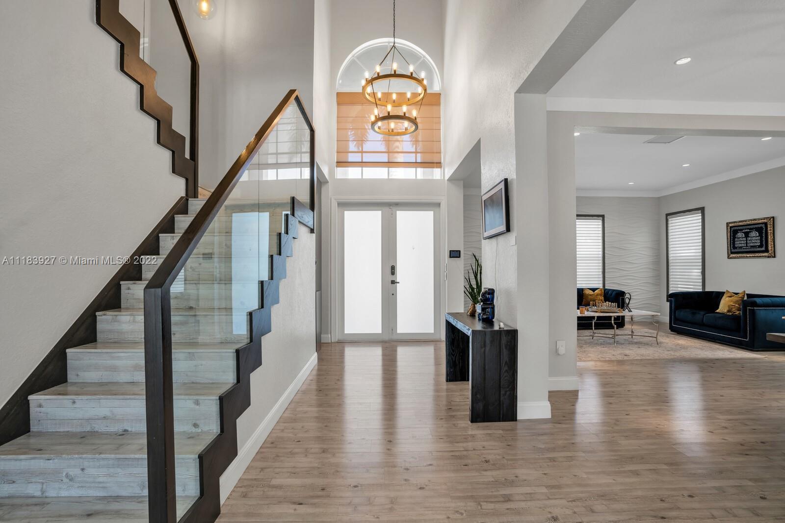 Welcome to this impressive Luxurious Modern Pool Home that has been exquisitely finished with a contemporary flare. This home boast 5bed/3baths/ 3 Car Garage with large open floor plan, an expansive flow through living and dining room space, upgraded kitchen with a large island Kitchen. Smart home equipped, nest, ring security, new led lighting, freshly painted inside and outside upgraded bathrooms. Outdoor entertaining is enjoyed at the pool and patio with extreme privacy surrounded by mature lush tropical greenery exterior lighting. Community features include an Olympic size pool, Clubhouse, Gym, three Tot-lot areas, and 24hr guarded visitor entrance. Sunset Falls is centrally located to all Schools, Highways, Shopping, and Dinning
