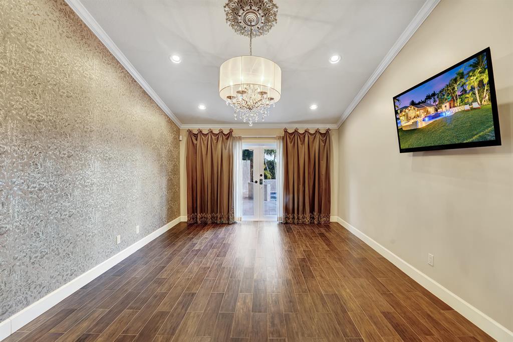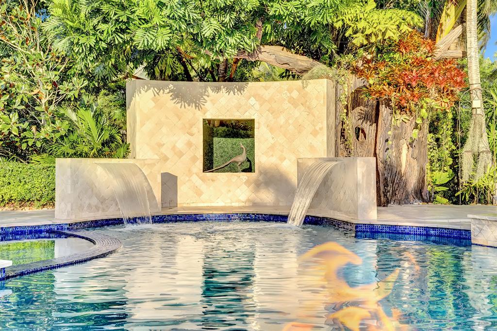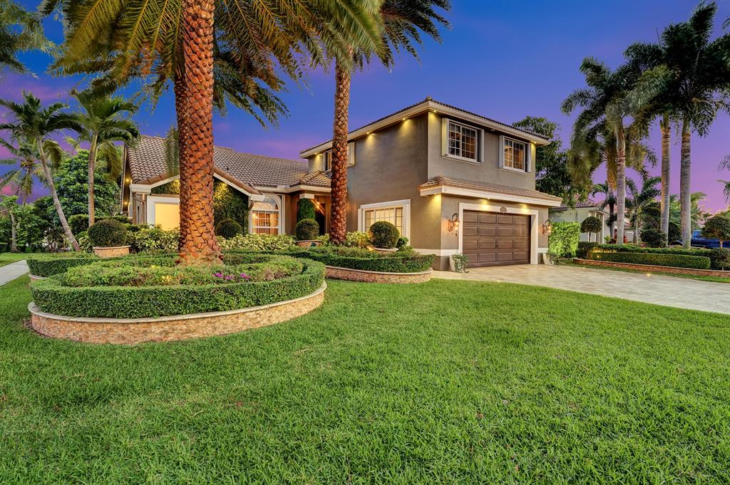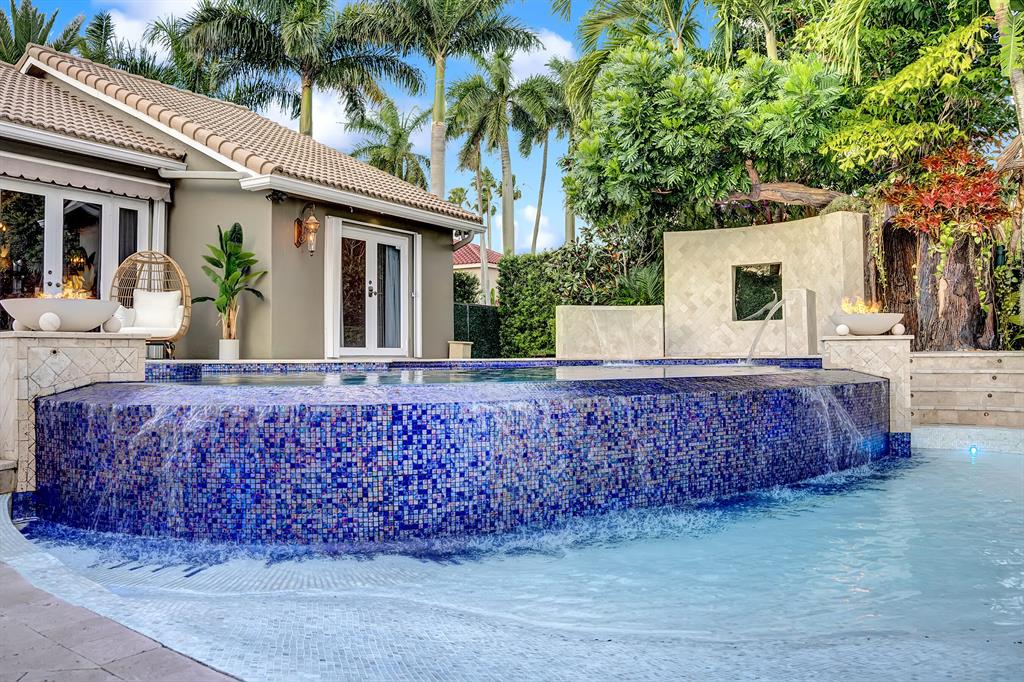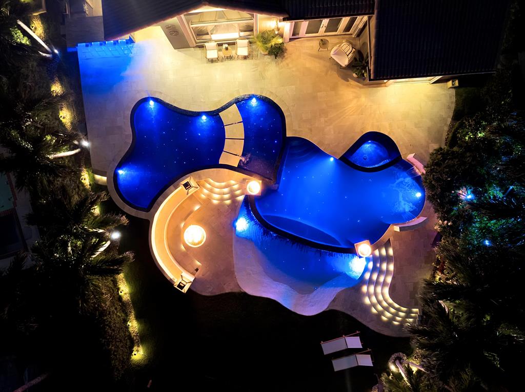 Enjoy expansive & breathtaking waterfront views from this designer backyard oasis. You will feel like you're on a private island complete with a luxurious 3-tiered pool, beach entry pool, outdoor tree shower and 3 gas fire pits, perfect for entertaining, family gatherings and more. This exquisite home is privately situated on a professionally landscaped corner lot with lighting that will take your breath away. 100% impact windows and vault style doors for added security. Property has been fully upgraded and features 5 bedrooms with master on main floor with pool access and custom closets throughout. Fully automated smart home, complete with security camera system, Numi toilets, Nest devices, smart pool/salt water therapeutic system, delicious mango tree and more!