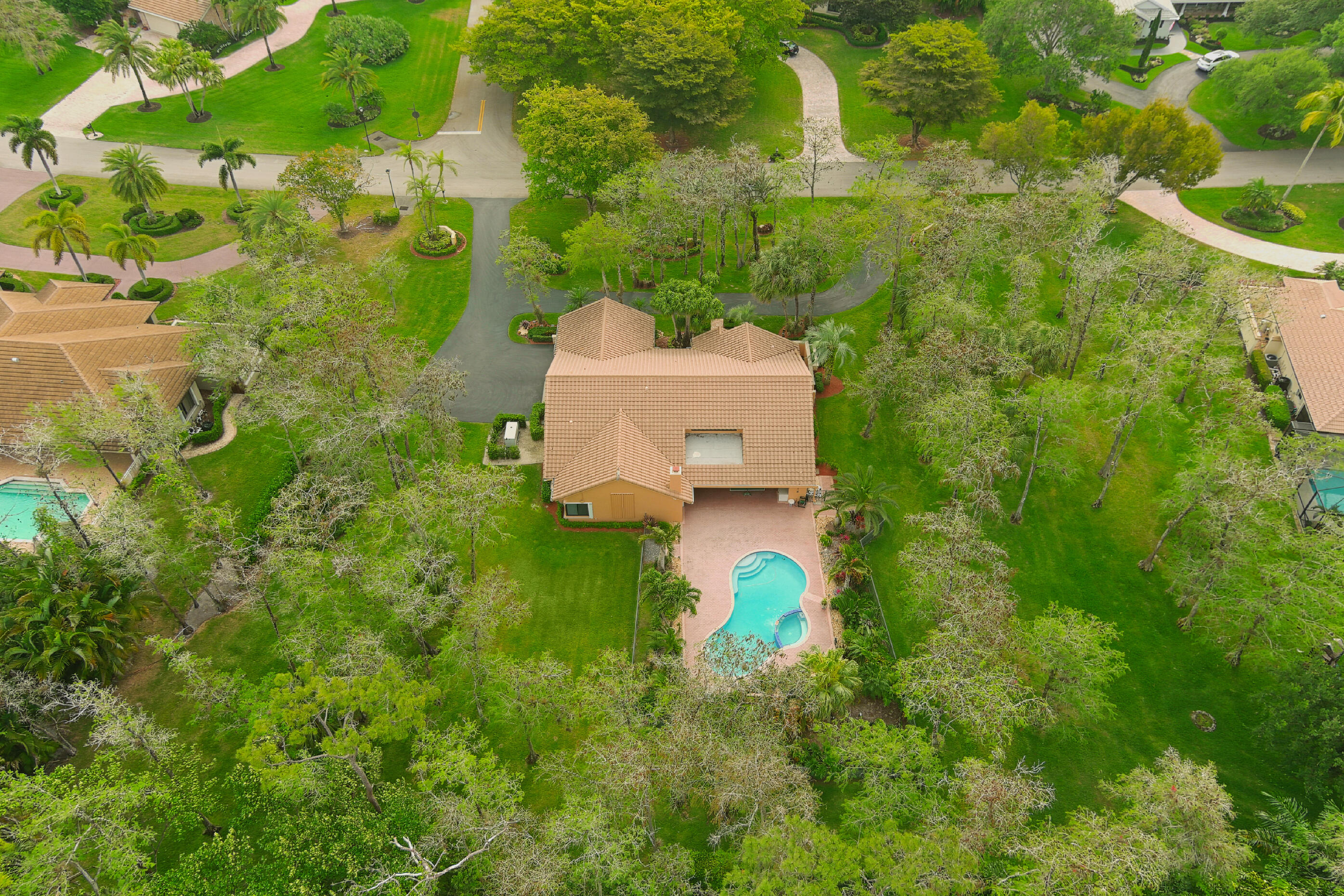 Don't miss this move in ready well maintained custom home in the highly desirable rarely available gated community of Whispering Woods. This 4 bedroom 3.5 bath home sits on 1+ acres. Gourmet kitchen with Jenn Air appliances and Sub-Zero refrigerator. Updated bathrooms. Circular Driveway redone 2021. 2 New AC units and new Duct work in 2018. 2 new variable pool pumps and the salt water pool was Diamond Brite finished in 2021. Whole house generator. Impact windows & doors. Accordian Hurricane shutters. LG washer & dryer from 2018. Custom built-ins in the Family room, 4th bedroom and Master bedroom. Rainbird sprinkler system, thermostats and garage doors can be remotely controlled from your cell phone. Plantation Shutters. Master Bedroom has electric black out window treatment. Roof 2010.