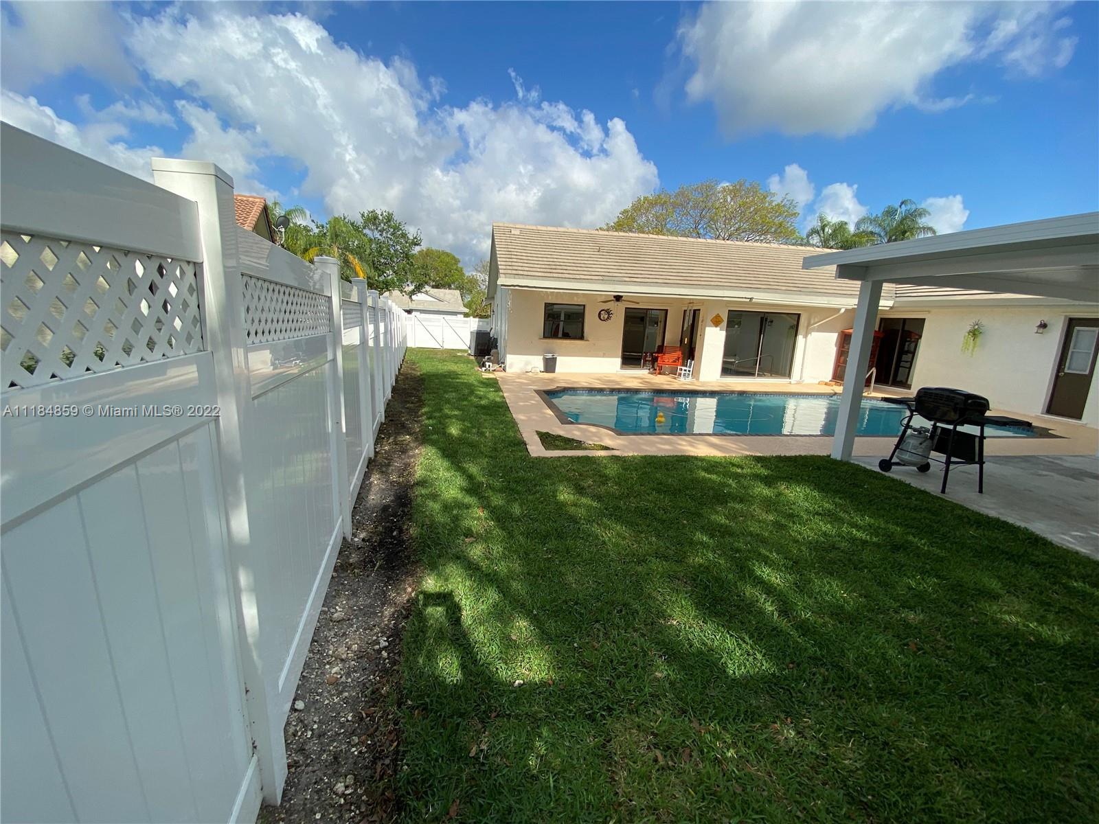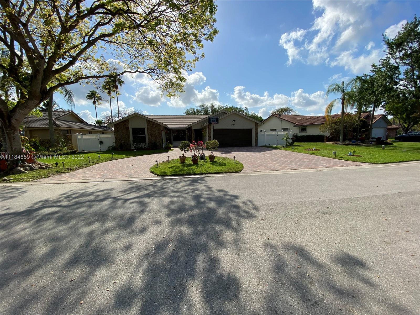Beautiful and stately Coral Spring home, 8,999 sq ft lot. Wood kitchen cabinets and stainless steel appliances, granite countertop. Two car garage, terrace, pool, master bedroom with two walking closets. Custom bathrooms, sprinkler system, House painted with neutral colors. No HOA, This house is very close to parks, highways, churches, and schools. A wide and new driveway made of pavers, a new PVC fence, Air conditioning installed two years ago, bright and clean house with a beautiful view of the pool and the backyard. You must look at it and do not miss the opportunity to visit your possible home.