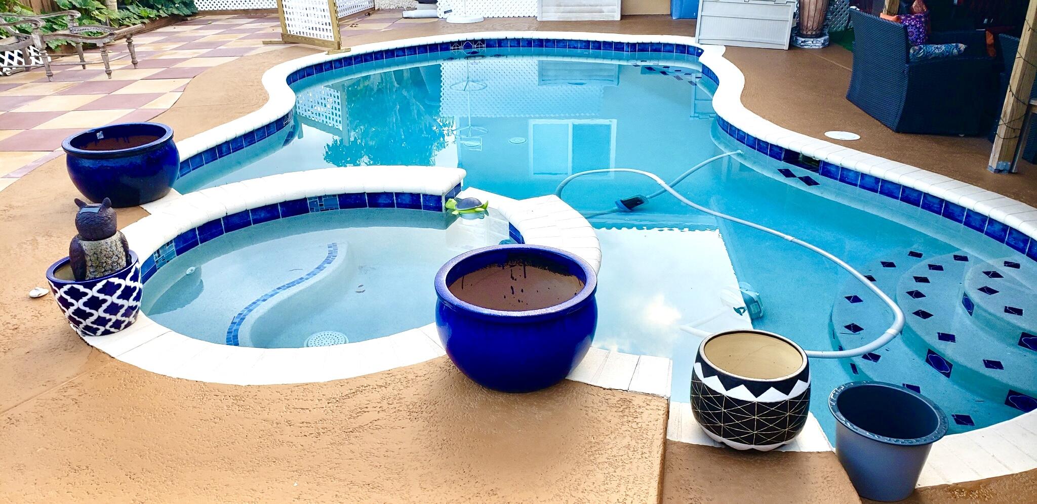 Gorgeous 4 bedroom pool home features an open, split bedroom floor plan. Recent upgrades include new Hurricane Impact windows throughout, New Diamond Brite pool and spa refinishing and new coping and tile. New, landscaping and newer AC. Extra wide driveway with new pavers. Cabana bath to the pool. Laminate floors in living room and master bedroom. walk in closets in 3 of the bedrooms. Private backyard oasis has spacious patio and plenty of room to enjoy the pool and spa. Great neighborhood!