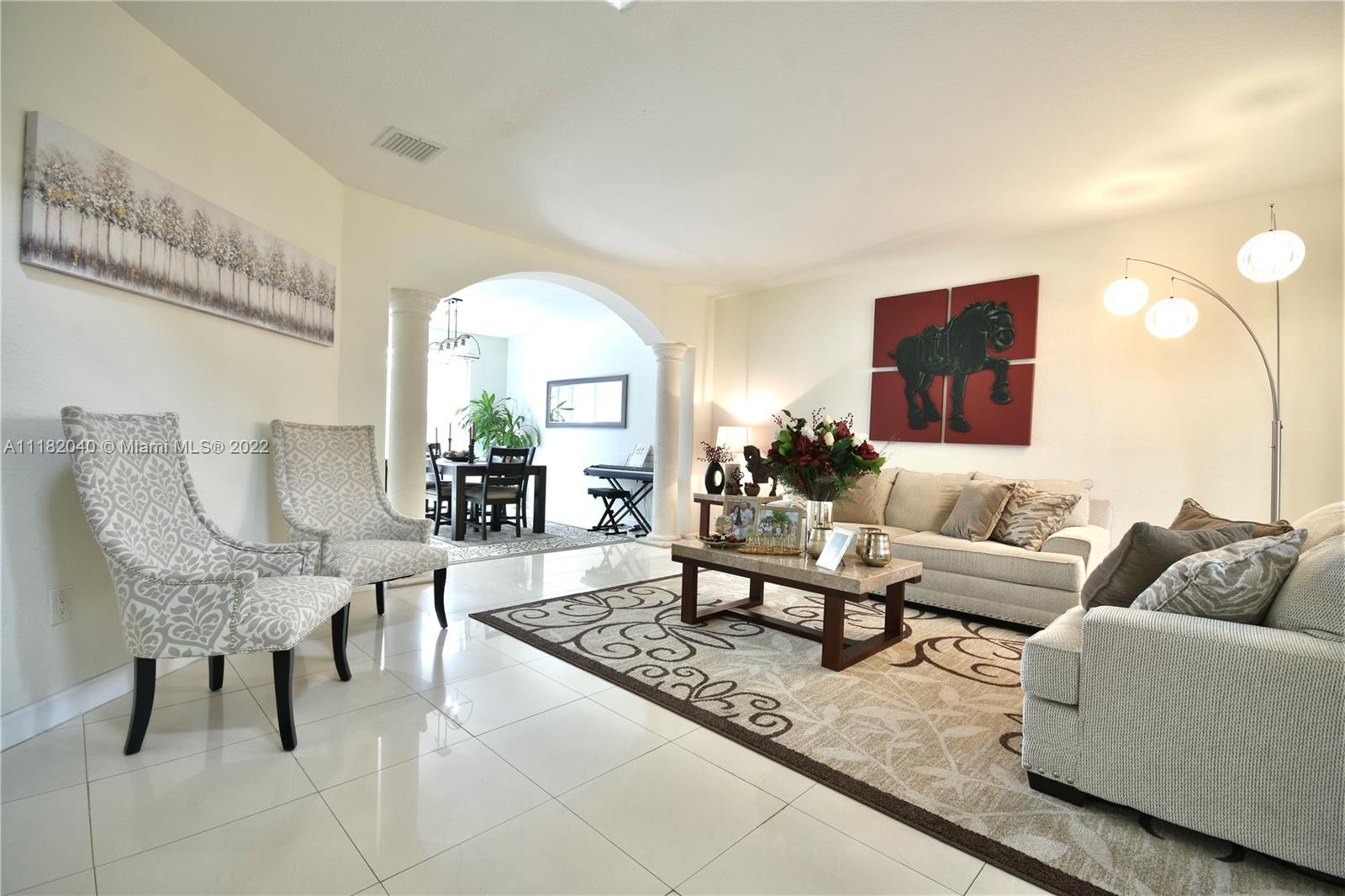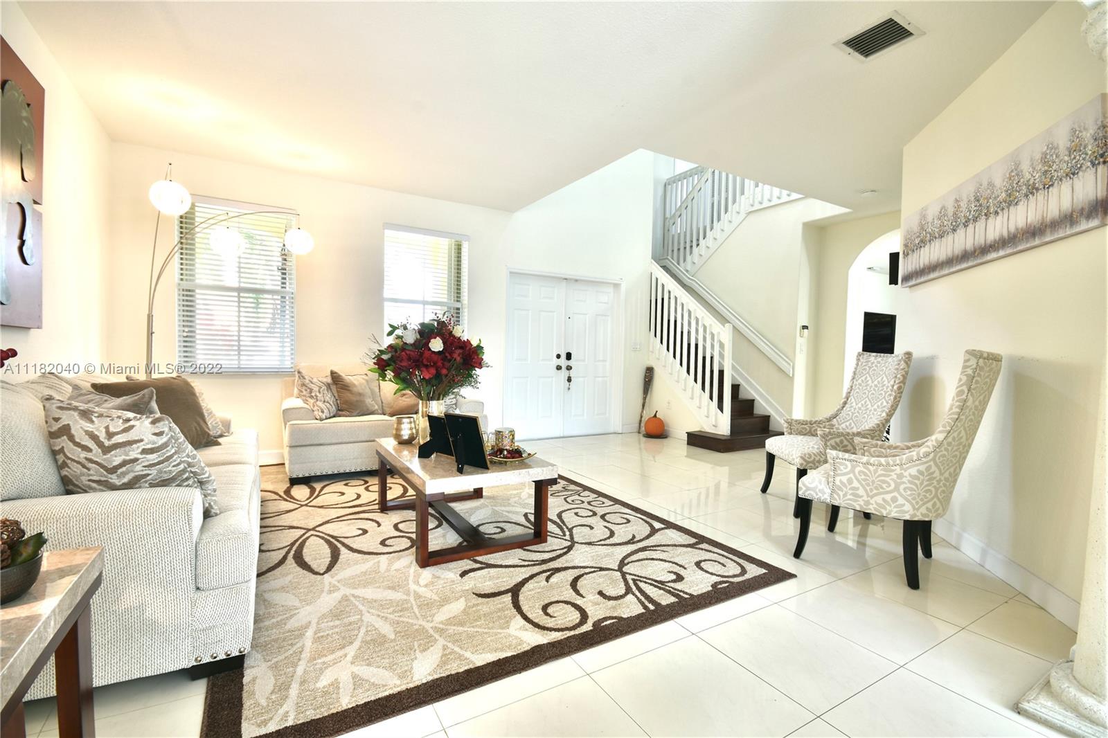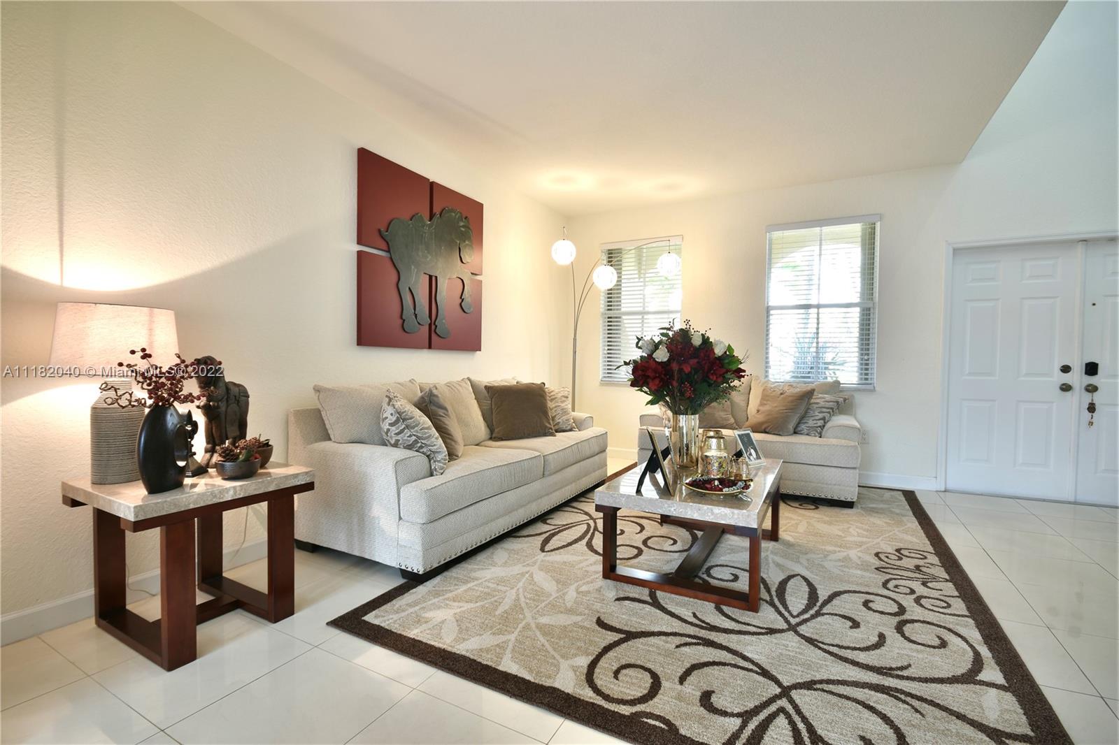 Beautiful & spacious home in the desirable community of Goldvue Estates. 4 Bedroom & 3.5 Baths. Porcelain tile throughout 1st floor and Laminated floors upstairs. Property features a comfortable living room area, separate formal dining room, an inviting open kitchen with Stainless Steel Appliances, Granite counter tops and breakfast area. Big family room. Oversized Master Bedroom with a sitting area. Home situated on a child friendly Cul de Sac. The Community has a nice Pool & a Kids Playground. Excellent location, in the heart of Doral. Close to fine dining restaurants, Shopping Malls. Walking distance to Walgreens, Publix & Starbucks. Close to Excellent Schools. LOW HOA $260, 24hs security guard. CHECK OUT **VIRTUAL TOUR AVAILABLE**