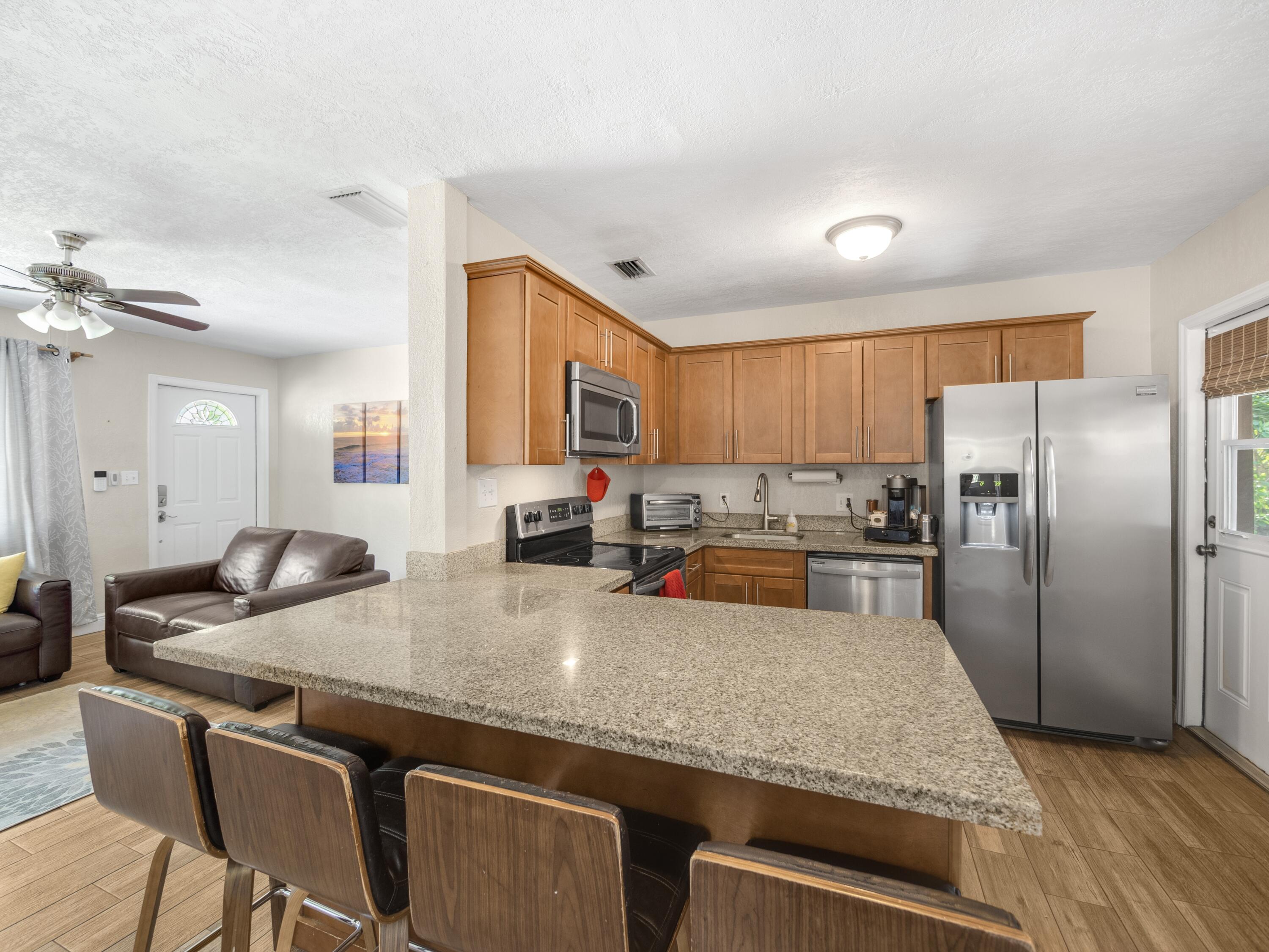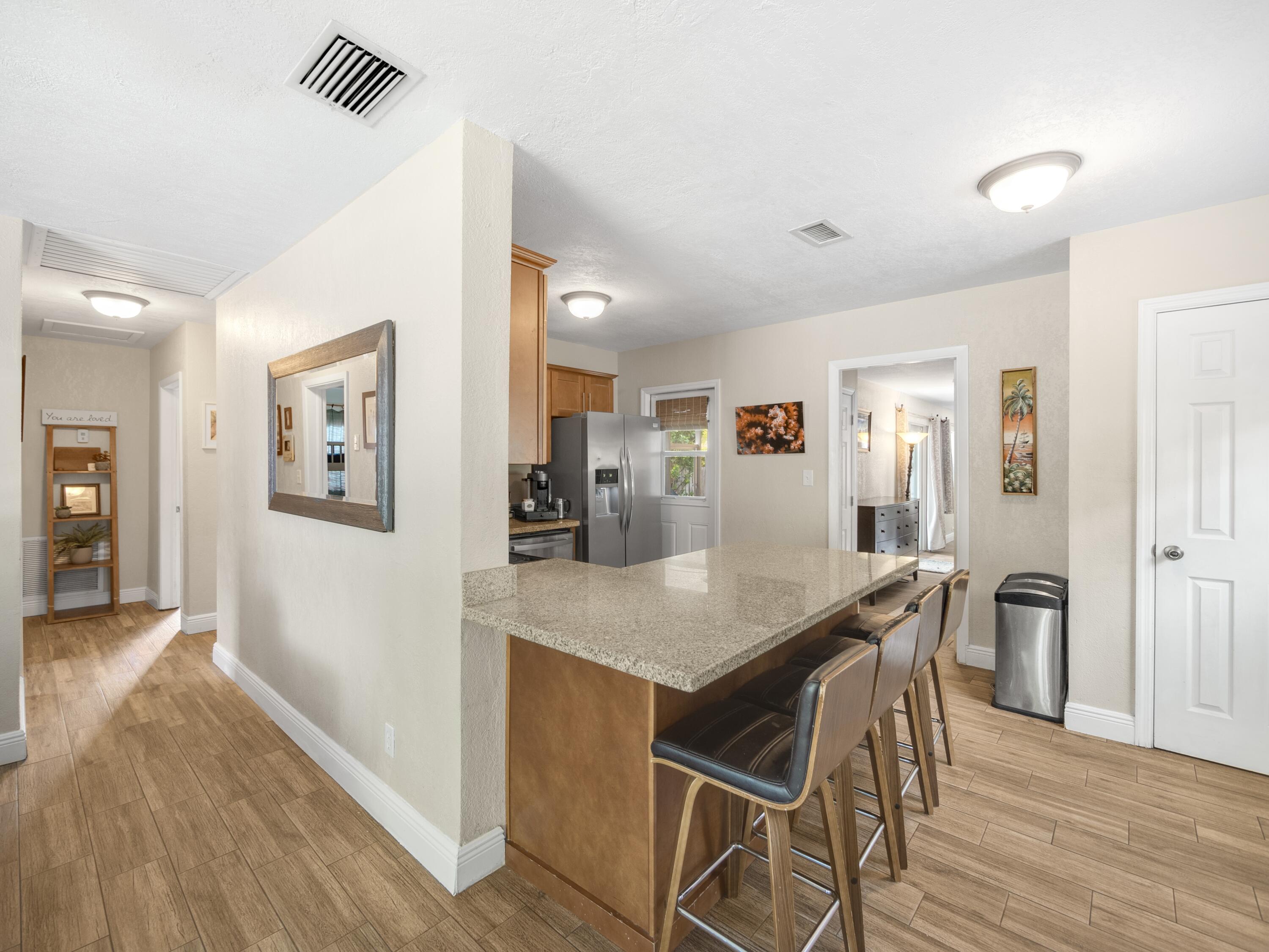Welcome to your Floridian paradise! Nestled in the highly sought-after Pineapple Park. This beautiful 3 bedroom 2 bathroom Florida cottage will be the answer to all your Florida home needs. Upon entrance, you are invited to a spacious living area with an eat-in kitchen where you'll enjoy your intimate family dinners. Then take yourselves out back to the tropical paradise and enjoy coffee, and drinks on your oversized screened-in patio big enough to entertain the largest parties, and peaceful enough to just sit outside listening to the beautiful sounds of nature while reading your favorite book. The yard space is large enough to also add in a beautiful pool, or jacuzzi if that is something you desire. We are not finished yet, If you're someone who loves adventures, and toys enjoy the extra