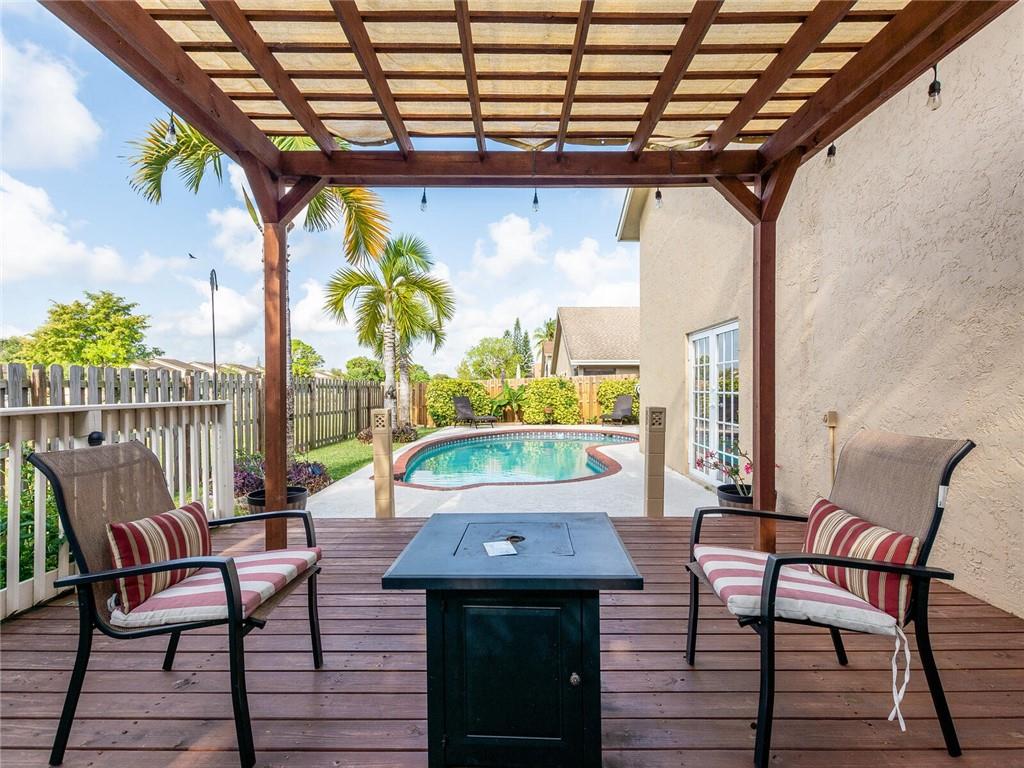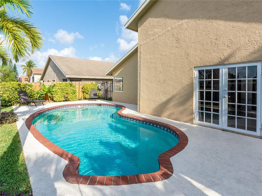 Original owners looking for a new family to take pride of ownership. Gorgeous one story pool home located on a nice sized lot in Welleby features a split open floorplan layout with spacious rooms. French doors & windows overlooking the backyard providing plenty of natural light. The kitchen is in the center of the house surrounded by formal entry living/dining room & family room. Tile throughout & carpet in bedrooms. High ceilings. Walk in closets and plenty of storage space. Washer/dryer in garage. Hurricane panels for all windows. Full house gas generator. The private fenced in backyard backs to a canal. Enjoy family gatherings & entertaining under the shady pergola. Very low HOA. Close to City Civic Center, restaurants, shopping, BB&T, Sawgrass Mills Mall & Expressway