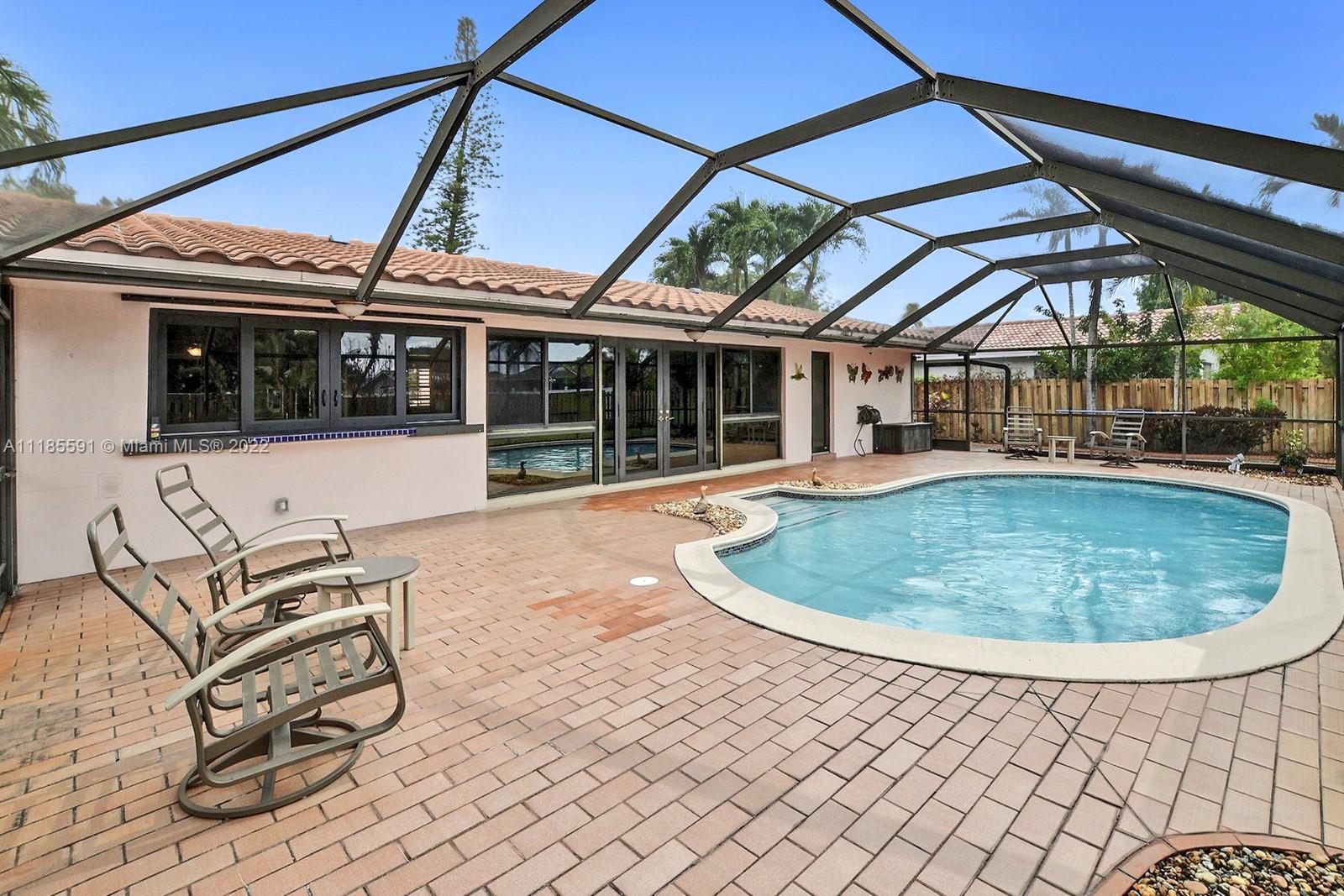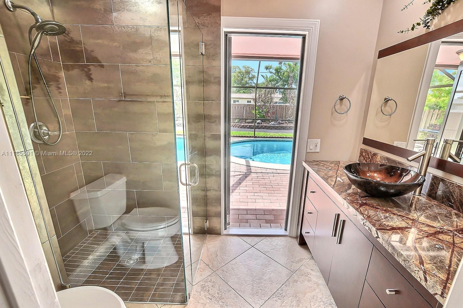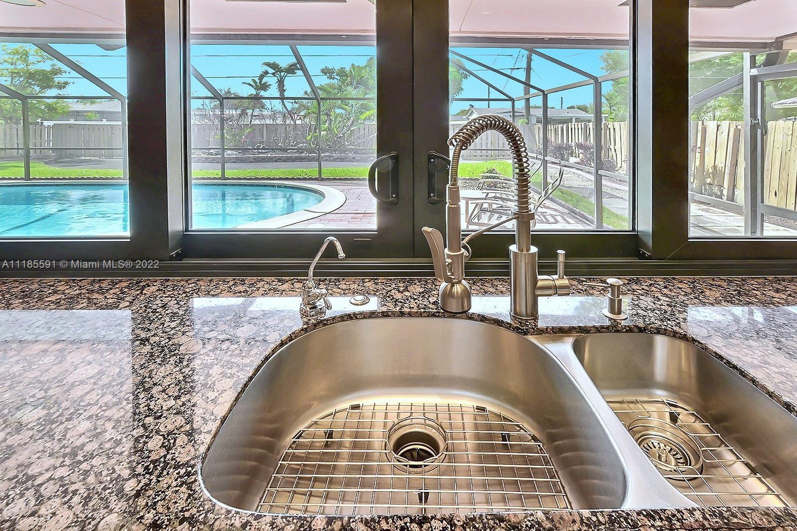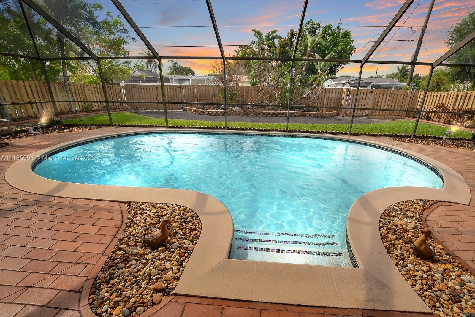 FABULOUS 3 BED, 2 BATH POOL HOME W PRIVATE COURTYARD ENTRANCE IN HOLLYWOOD HILLS. ENJOY POOL VIEWS THROUGH A FULL WALL OF FLOOR TO CEILING GLASS. SPECTACULAR CHEF'S KITCHEN HAS REAL WOOD CABINETS, GRANITE COUNTERS, ISLAND, STAINLESS APPLIANCES, GAS RANGE, DOUBLE WALL OVEN, CUSTOM HOOD, WINE FRIDGE, TRAY CEILING & BIG WINDOW W PASS-THROUGH TO THE PATIO. SPACIOUS PRIMARY SUITE W ENSUITE CABANA BATH, GLASS ENCLOSED SHOWER & CUSTOM VANITY. BEAUTIFUL FLOORING, PLANTATION SHUTTERS, CROWN MOLDING, RECESS LIGHTING & CEILING FANS. LARGE SCREENED PATIO W A SPARKLING POOL & PRIVATE REAR ACCESS TO A CIRCULAR DRIVEWAY, PERFECT FOR BOAT & RV PARKING. IMPACT WINDOWS & ACCORDION SHUTTERS, DIRECT GAS LINE FUELS DRYER, WATER HEATER & GENERATOR, LAUNDRY ROOM W SINK, 1 CAR GARAGE, NO HOA, CENTRAL LOCATION.