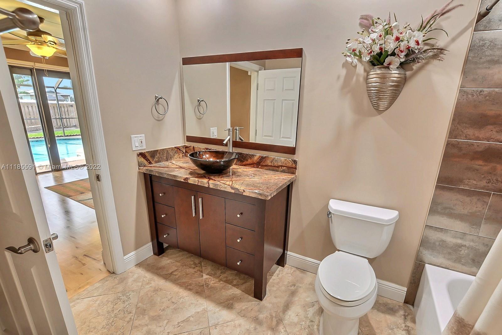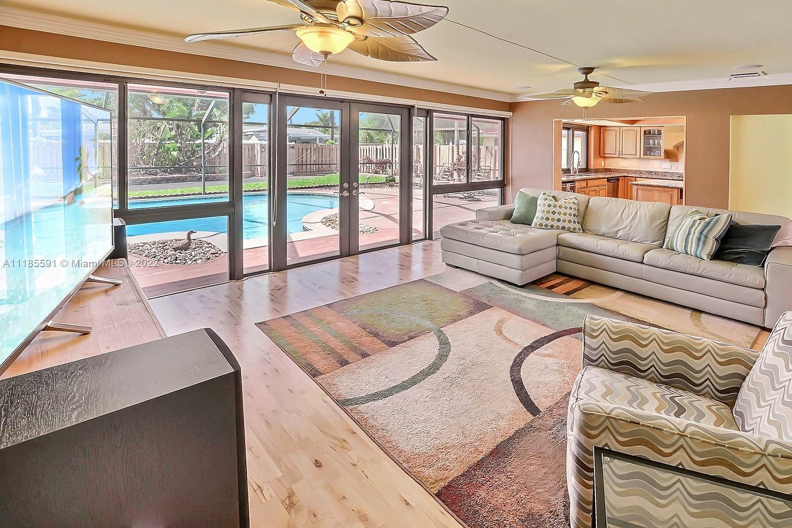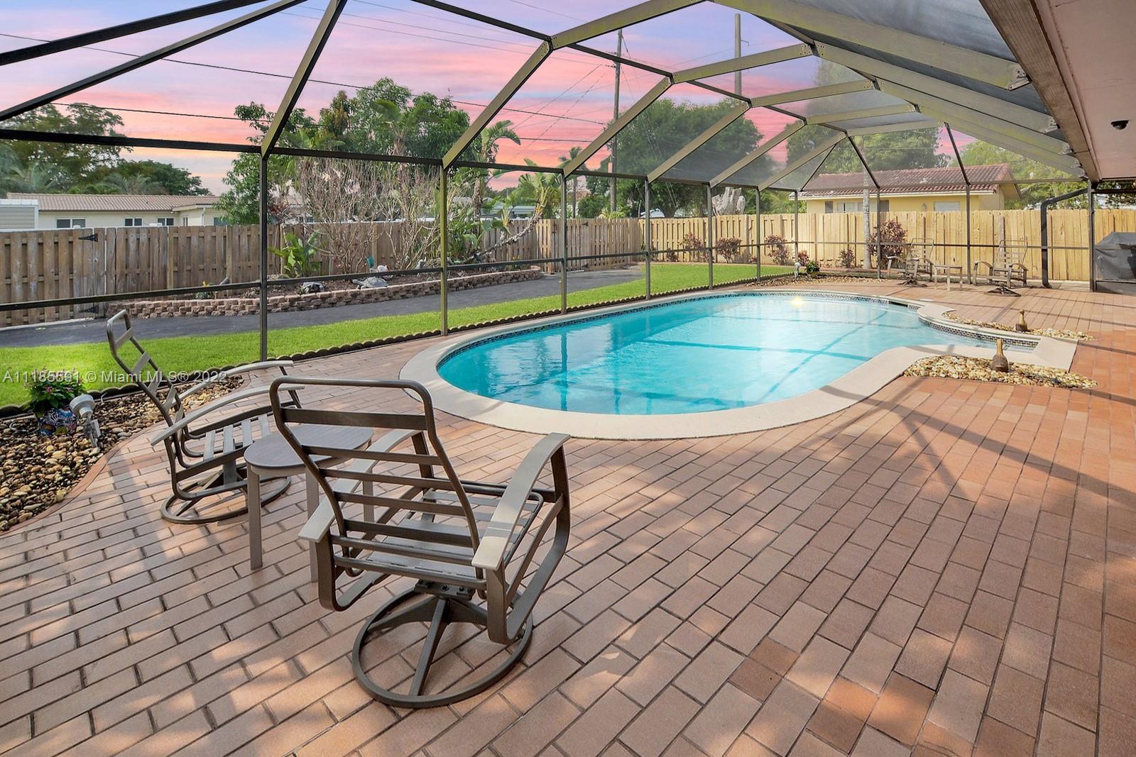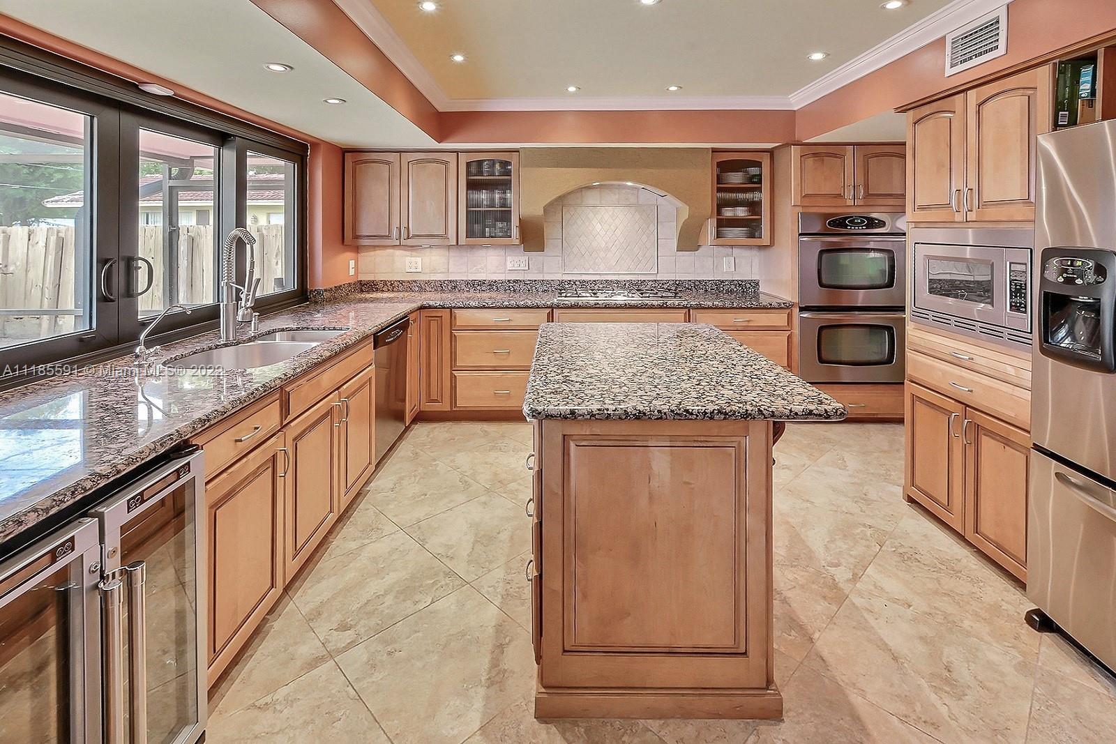 FABULOUS 3 BED, 2 BATH POOL HOME W PRIVATE COURTYARD ENTRANCE IN HOLLYWOOD HILLS. ENJOY POOL VIEWS THROUGH A FULL WALL OF FLOOR TO CEILING GLASS. SPECTACULAR CHEF'S KITCHEN HAS REAL WOOD CABINETS, GRANITE COUNTERS, ISLAND, STAINLESS APPLIANCES, GAS RANGE, DOUBLE WALL OVEN, CUSTOM HOOD, WINE FRIDGE, TRAY CEILING & BIG WINDOW W PASS-THROUGH TO THE PATIO. SPACIOUS PRIMARY SUITE W ENSUITE CABANA BATH, GLASS ENCLOSED SHOWER & CUSTOM VANITY. BEAUTIFUL FLOORING, PLANTATION SHUTTERS, CROWN MOLDING, RECESS LIGHTING & CEILING FANS. LARGE SCREENED PATIO W A SPARKLING POOL & PRIVATE REAR ACCESS TO A CIRCULAR DRIVEWAY, PERFECT FOR BOAT & RV PARKING. IMPACT WINDOWS & ACCORDION SHUTTERS, DIRECT GAS LINE FUELS DRYER, WATER HEATER & GENERATOR, LAUNDRY ROOM W SINK, 1 CAR GARAGE, NO HOA, CENTRAL LOCATION.