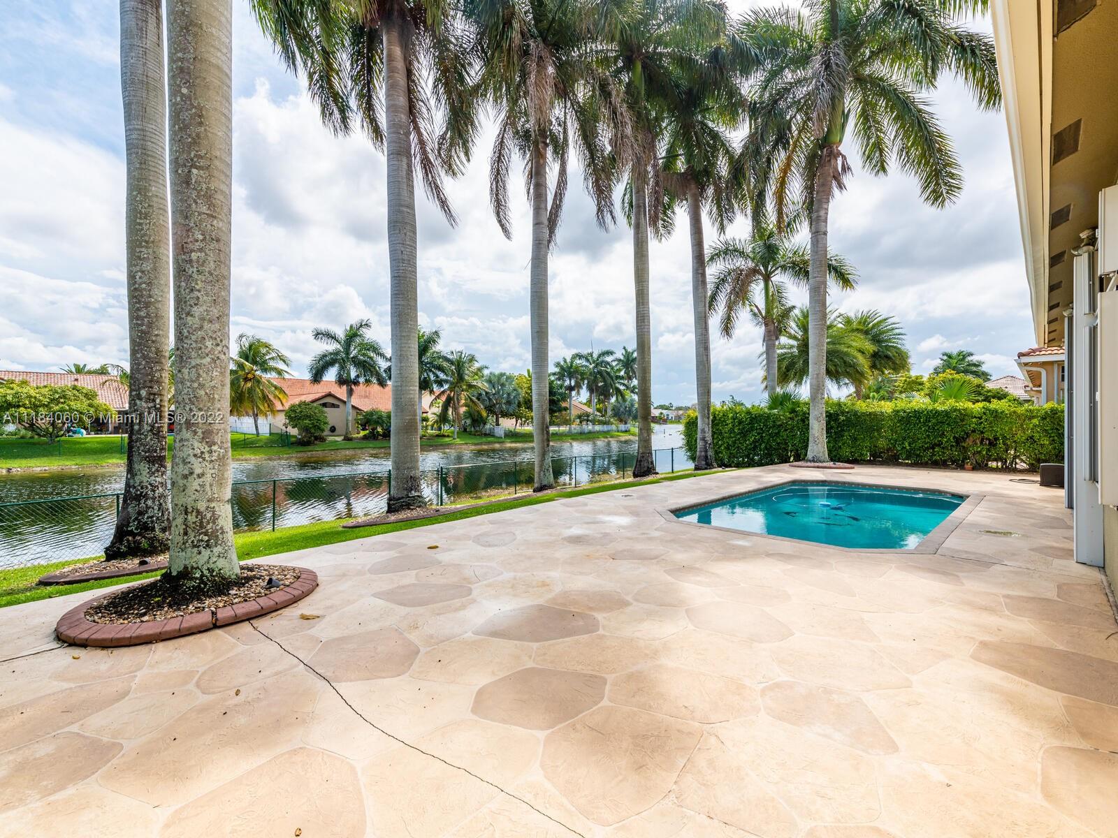 STUNNING 3 B/ROOM 2 1/2 BATH POOL & LAKE VIEW HOME. BEAUTIFUL NEUTRAL TRAVERTINE TILES THROUGHOUT. MASTER SUITE OPENS TO PATIO/POOL AREA. SPLIT B/ROOM PLAN MASTERBATH W/HIS & HER VANITY, JACUZZI TUB, SEPARATE SHOWER, WALKIN CLOSETS. 48" KITCHEN OAK CABINETS W/PULLOUTS DRAWERS, GRANITE COUNTERS S/STEEL APPLIANCES. VOLUME CEILINGS. HURRICANE IMPACT DOORS & ACCORDIAN SHUTTERS. NEWLY FENCED YARD. PAVERED CIRCULAR DRIVEWAY. DIAMOND BRITE POOL WITH TURTLE/DOLPHIN INLAYS LARGE CONCRETE DECK, ROYAL PALMS CREATE TRANQUIL TROPICAL SETTING. GUEST/POOL HALF BATH HAS EXTERNAL DOOR. LAUNDRY ROOM W/CABINETS W/BARN DOOR. ACCORDIAN SHUTTERS IN PATIO ALLOWS FURNITURE TO STAY THERE IN A STORM. GARAGE W/LOTS OF STORAGE CABINETS. NEW TANKLESS WATER HEATER. SPRINKLER SYSTEM & PUMP NEW. ALARM SYSTEM HOOK UP!