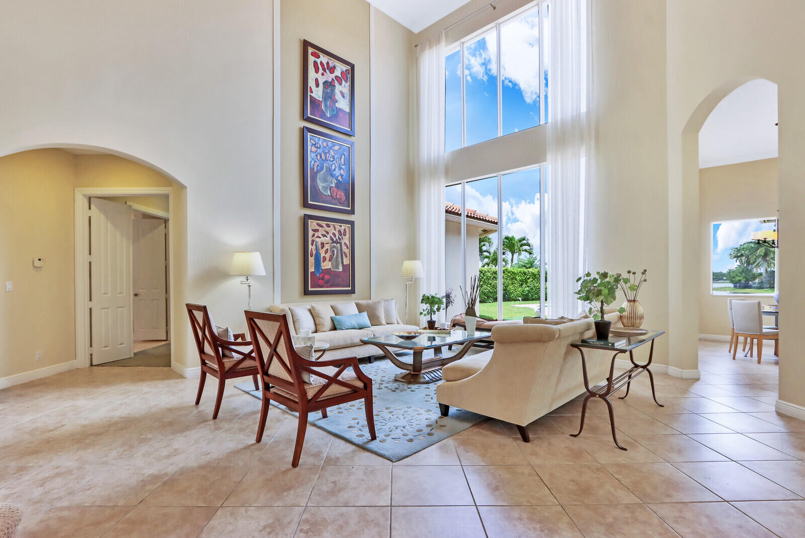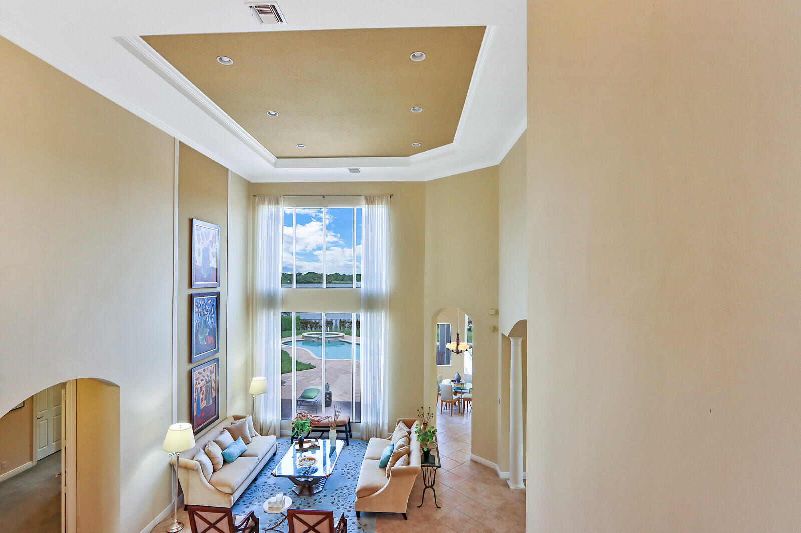 One of the LONGEST WATER VIEWS IN IBIS from this over-sized, cul-de-sac, pie-shaped lot! There is a 60x60 Ft backyard for the pool, spa and patio area + a large grassy area that overlooks ''Lake Ibis'' with Nicklaus-designed Tradition #'s 12-15 on the horizon. The Eastern side of the property features a 100x60 ft area that provides a luxurious buffer from the home next door--a part of the property that could be enhanced and utilized. Boasting 3900 SF and 4BR/4.5BA+Den, this 2005-built ''Paradiso'' features soaring ceilings, an upgraded wood and wrought iron staircase and large windows which emphasize the drama of this light, bright and impressive home.