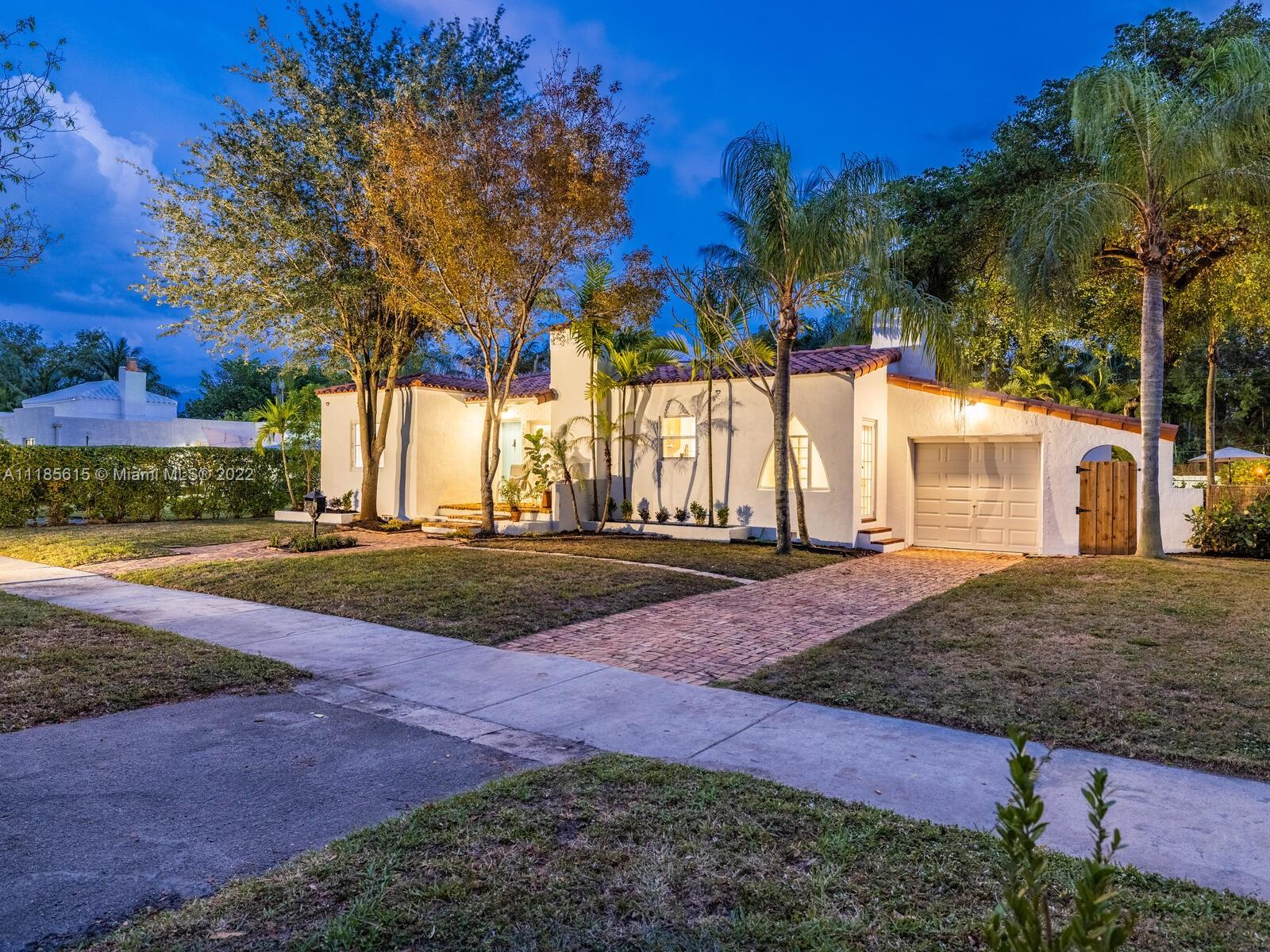 Welcome to Blossom House, the Majestic Mini Manor and Magical Gardens! Delight in vaulted living with conical soaring fireplace and hand-carved “blossoming flower” limestone mantle- a regal touch! New kitchen with hip “architectural plywood” cabinets plus spacious dining are great to create and savor dinner with friends and family. Bright, window-lined elongated media room opens to expansive, fantastic rear gardens with Napa Valley style deck to lounge, grill and dine! Enjoy lush landscaping of your home-escape with room for a pool. Split bedrooms— two on one side and a third plus bath on other. Bonuses: impact windows-doors, bright mini-office, hardwood floors and garage, all in a great location just a half-block to fab downtown Miami Shores restaurants and shops. Let your life blossom!