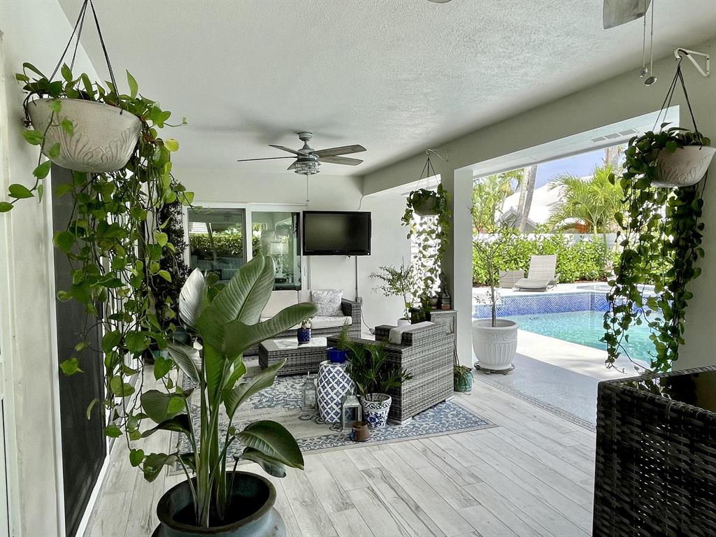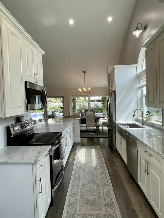 Completely renovated! Impact glass, new water heater painted inside and out in, new landscape and landscape lighting all done 2021, pool refinished and new pool heater in 2020. Kitchen and bathrooms were redone in 2018 and roof replaced in 2015.