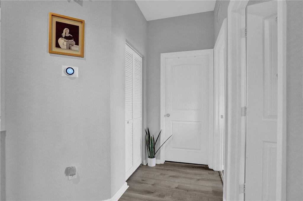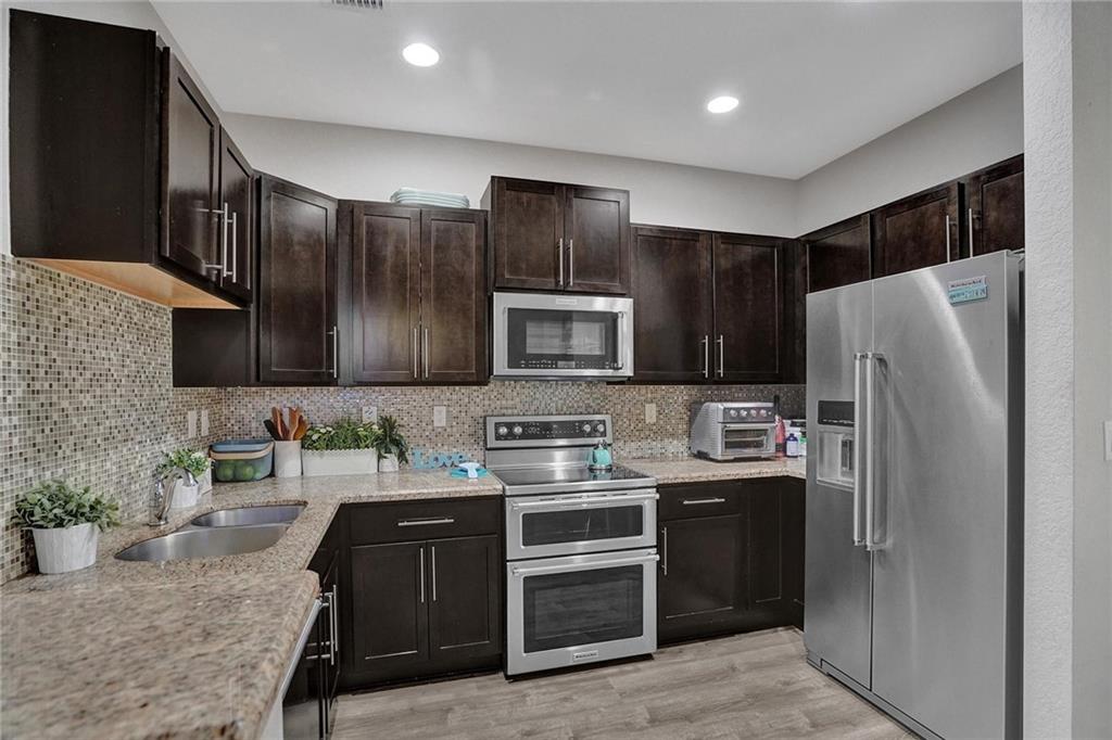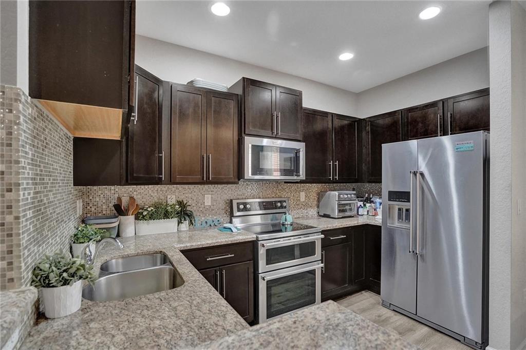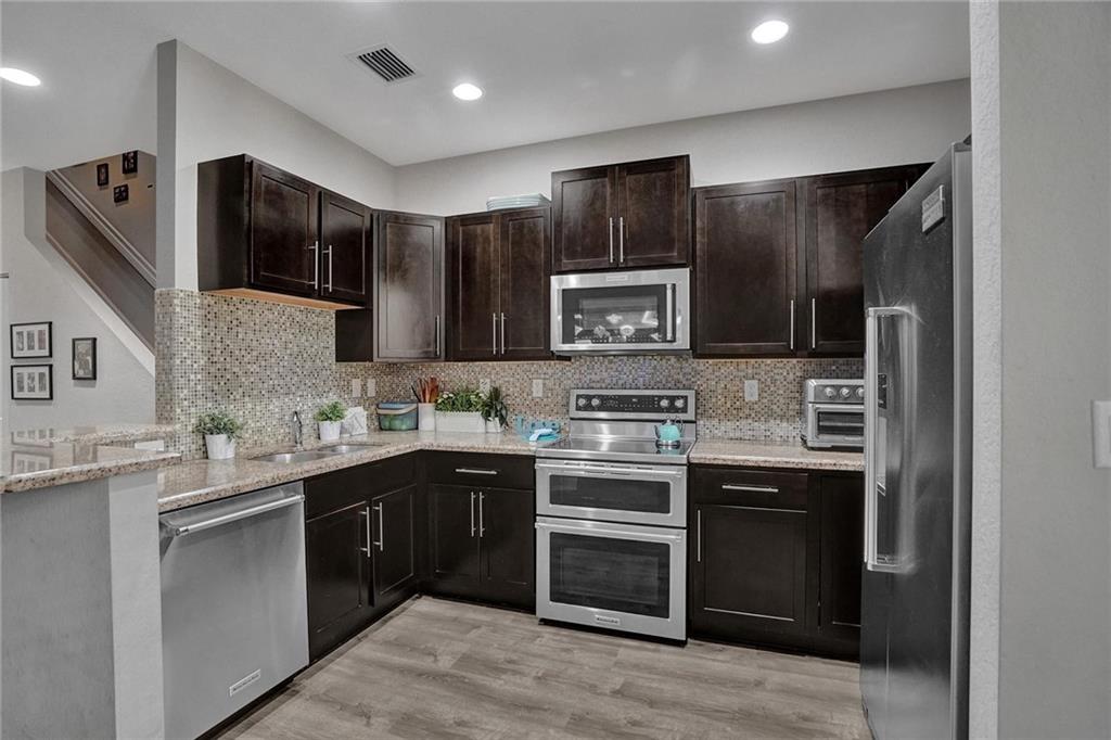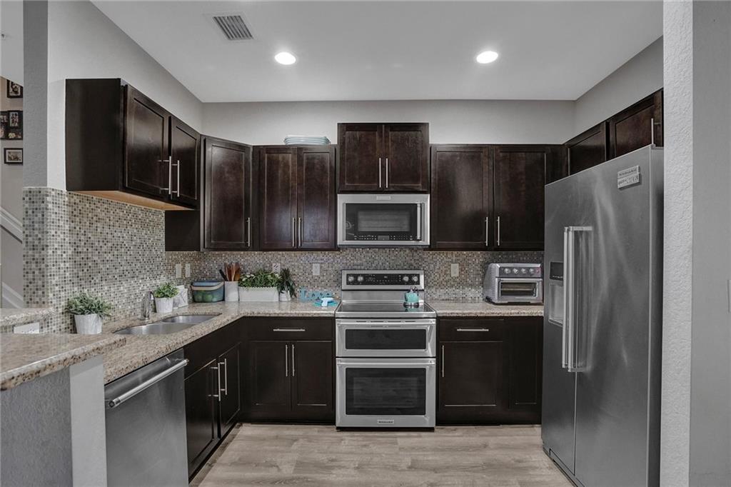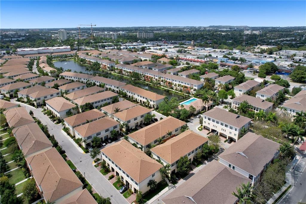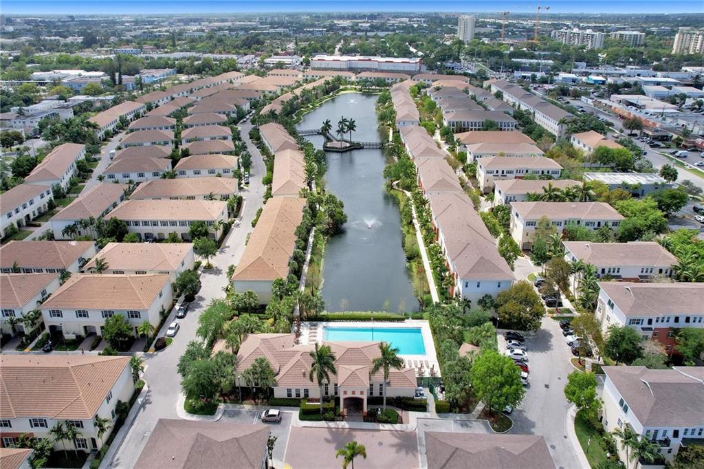 Desirable 3 bedroom, 2 1/2 bathroom corner unit townhouse in Cypress Grove with open floor plan perfect for entertaining. Gourmet kitchen with granite counter tops and Stainless Steel Kitchen Aide appliances. 3 bedrooms and laundry room upstairs. High impact windows and doors. Wood look flooring throughout. Large master suite with walk-in custom closet and upgraded master bathroom. LG HE washer and dryer. 1 car garage with epoxy floor finish. Enjoy the tropical grounds that include a jogging/walking path surrounding the lake, or enjoy the pool, gym, or clubhouse. Security guard on premise at this community located in close proximity to the beaches, shopping, nightlife, restaurants and schools.