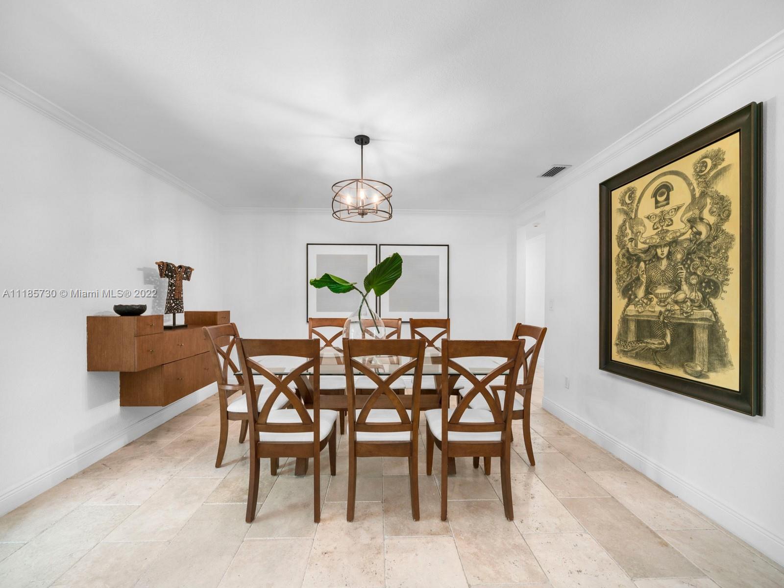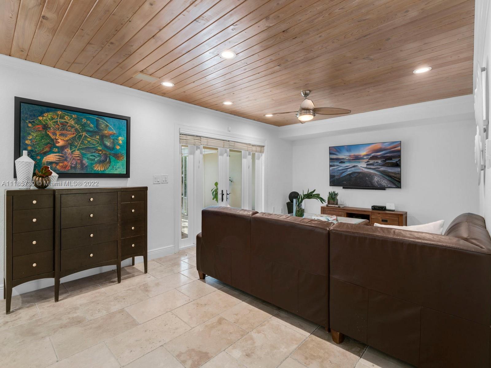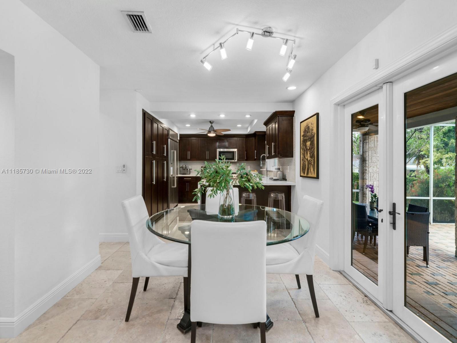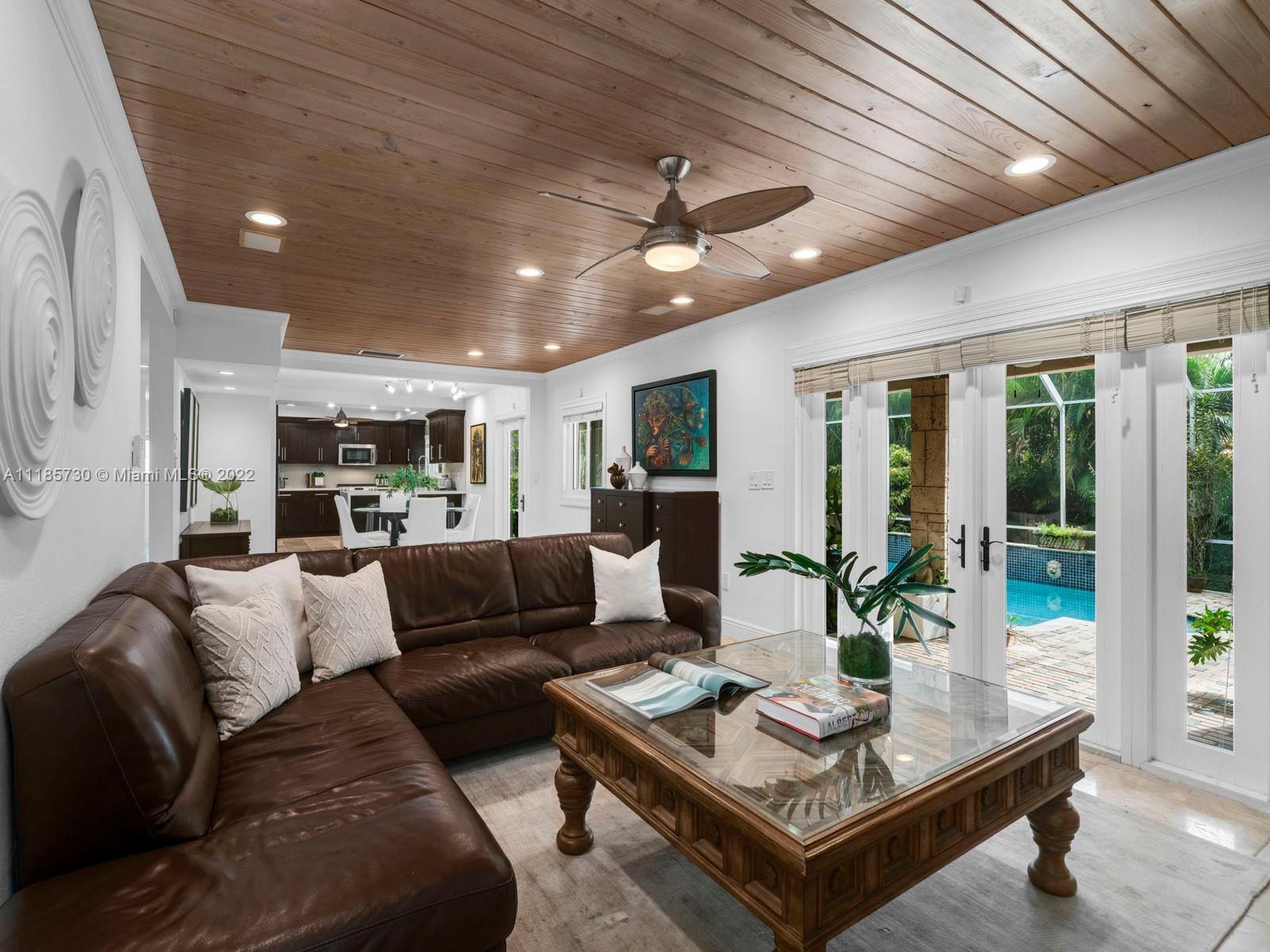 Gorgeous and completely renovated one-story home in highly sought-after Pinecrest by the Sea. An exclusive guard gated community offering a neighborhood park, pedestrian friendly roads, top municipal services, and an excellent voluntary HOA. Elegantly renovated move in ready home that includes 5 bedrooms and 5 full bathrooms plus home office/den and converted garage. Home features elegant interiors, spacious living areas, formal living and dining, family room adjacent to an updated kitchen with quartz countertops and stainless-steel appliances overlooking a beautiful pool surrounded with luscious landscaping. Features include impact windows and doors, travertine floors, saltwater pool, and Tesla charger. Beautifully elevated and oversized corner lot. Elite schools nearby