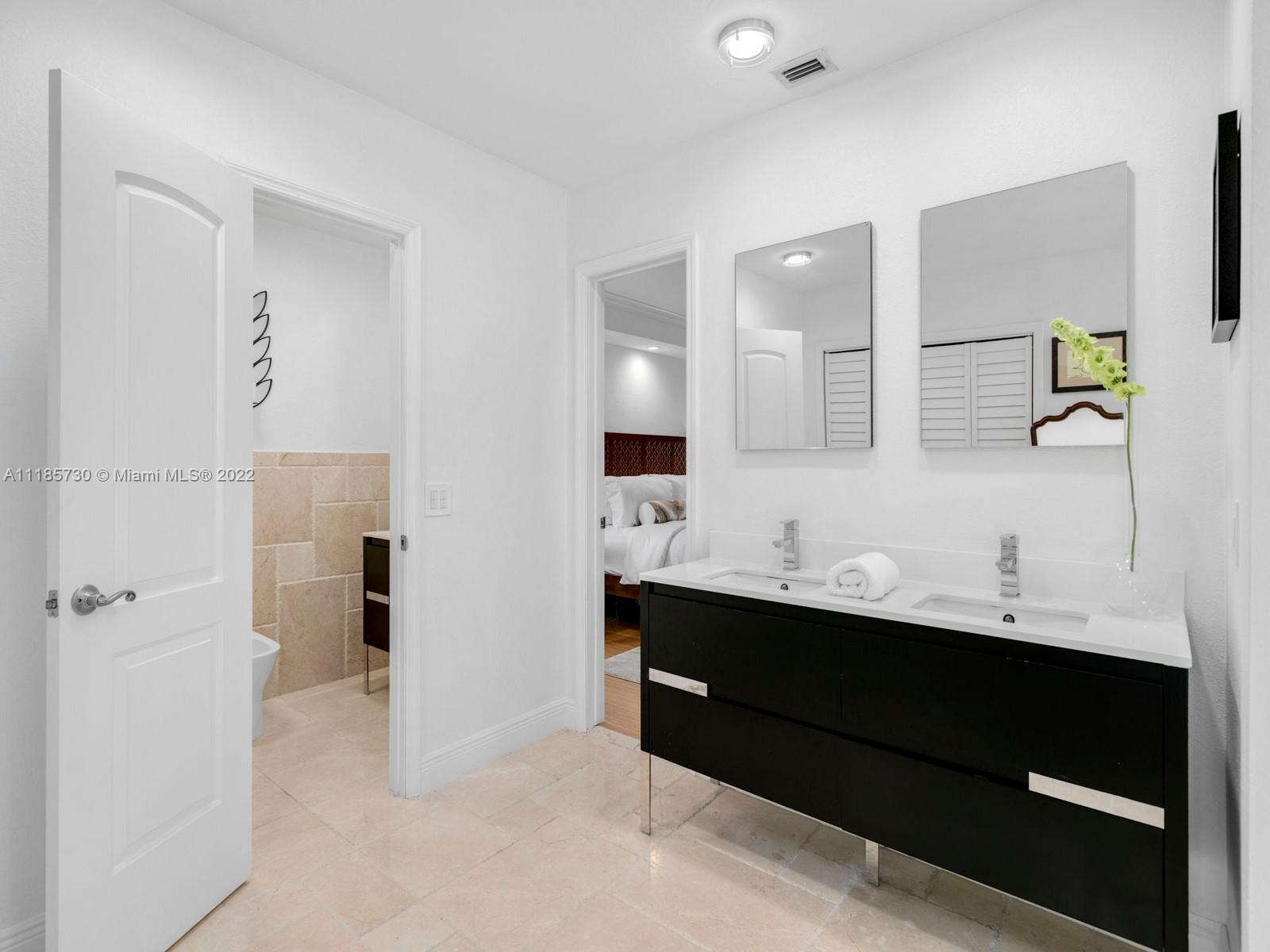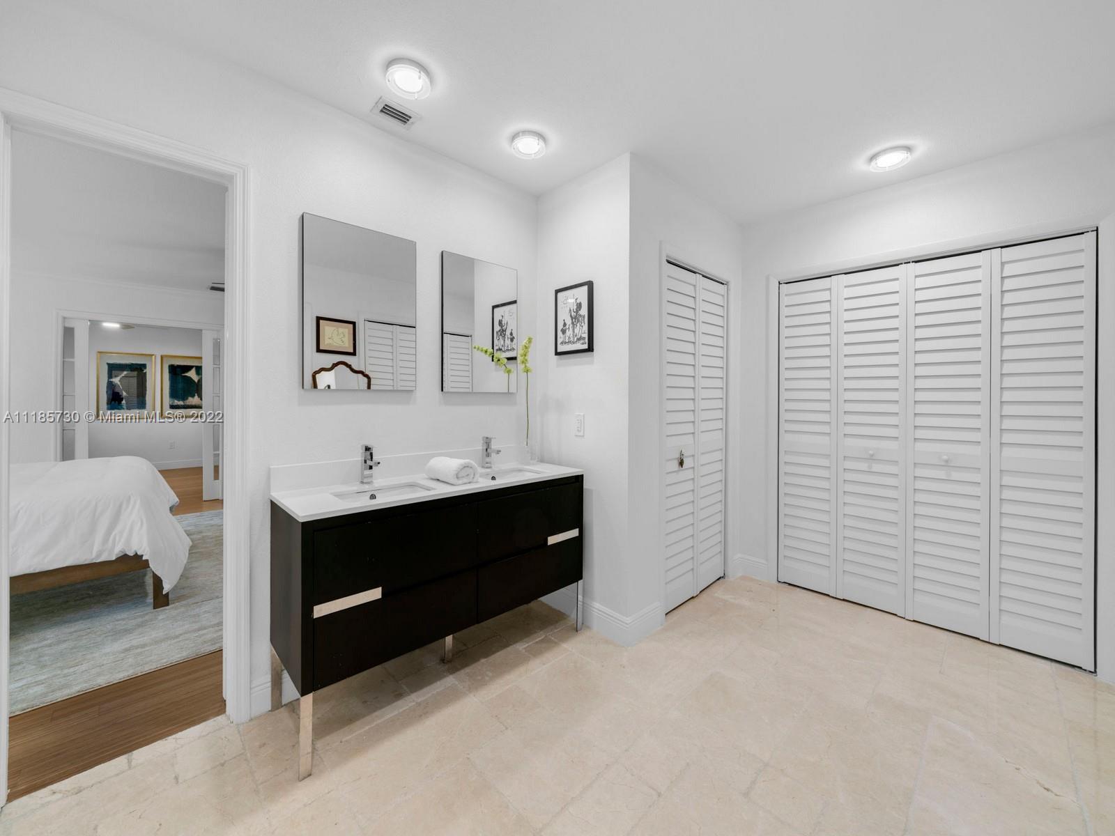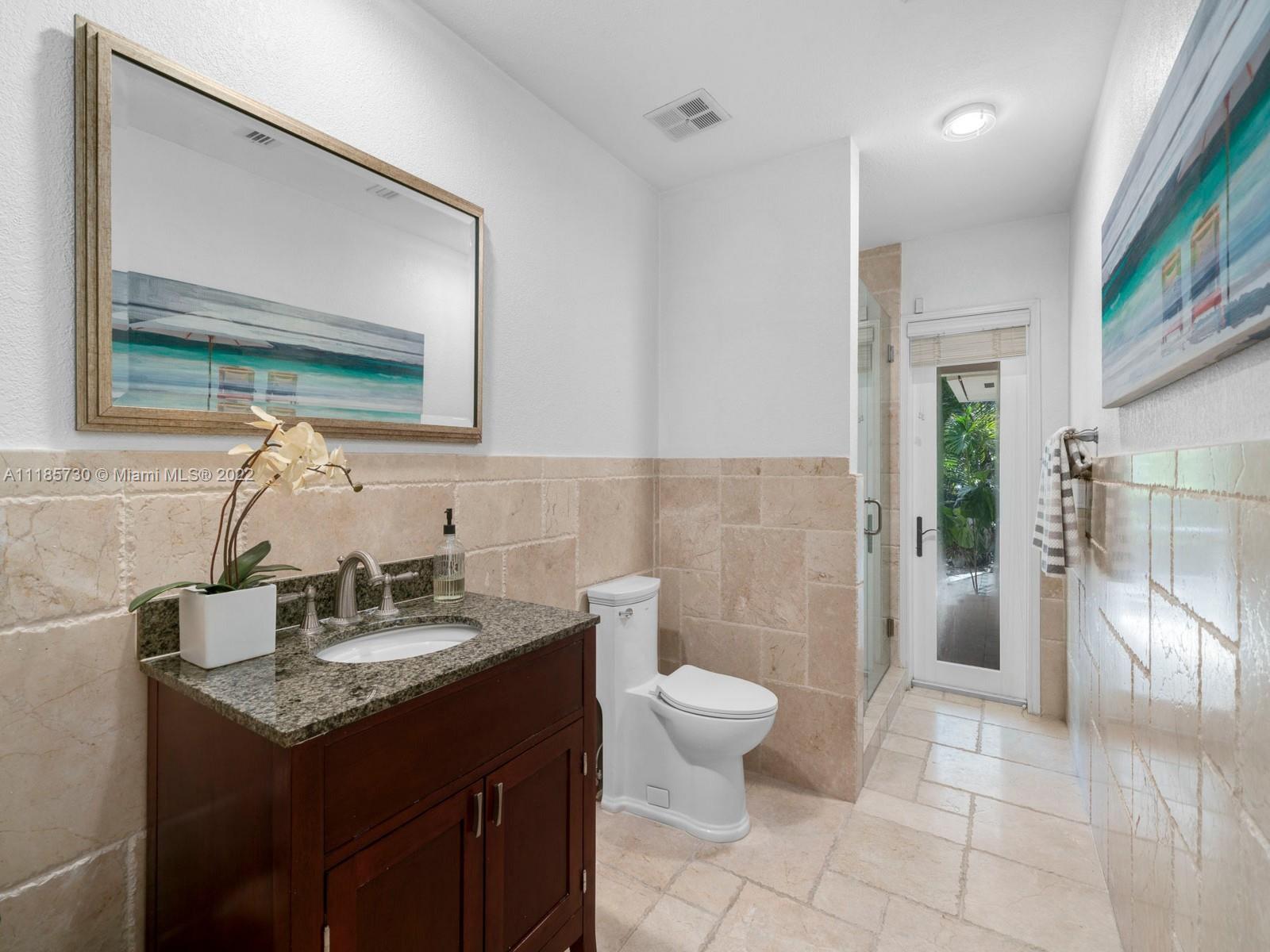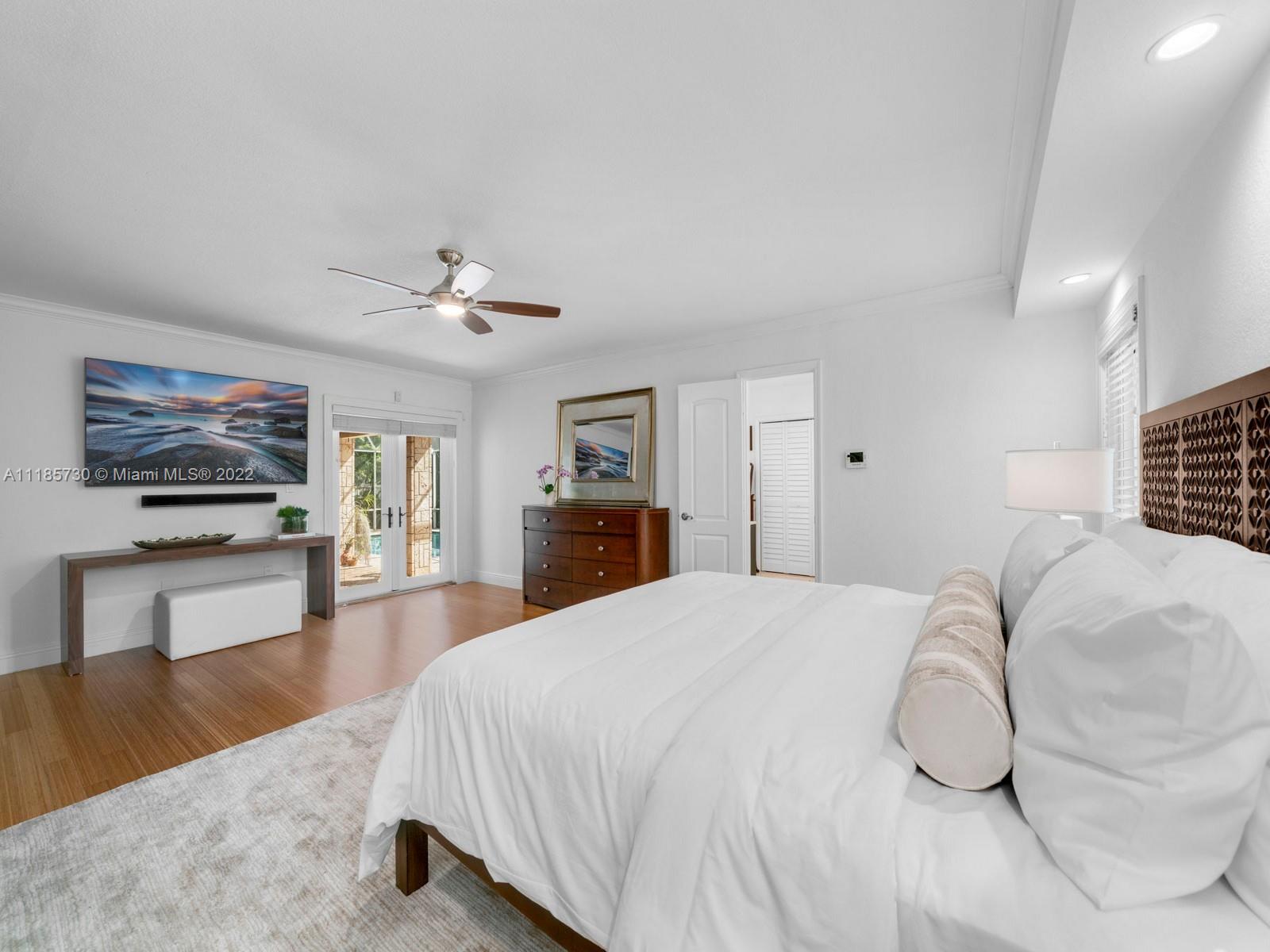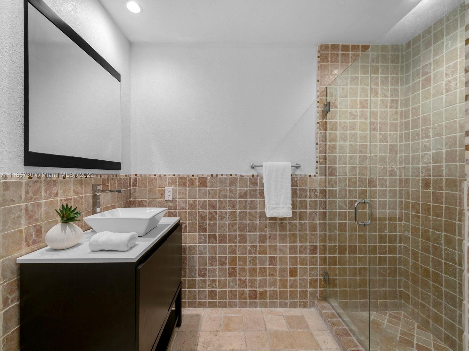 Gorgeous and completely renovated one-story home in highly sought-after Pinecrest by the Sea. An exclusive guard gated community offering a neighborhood park, pedestrian friendly roads, top municipal services, and an excellent voluntary HOA. Elegantly renovated move in ready home that includes 5 bedrooms and 5 full bathrooms plus home office/den and converted garage. Home features elegant interiors, spacious living areas, formal living and dining, family room adjacent to an updated kitchen with quartz countertops and stainless-steel appliances overlooking a beautiful pool surrounded with luscious landscaping. Features include impact windows and doors, travertine floors, saltwater pool, and Tesla charger. Beautifully elevated and oversized corner lot. Elite schools nearby