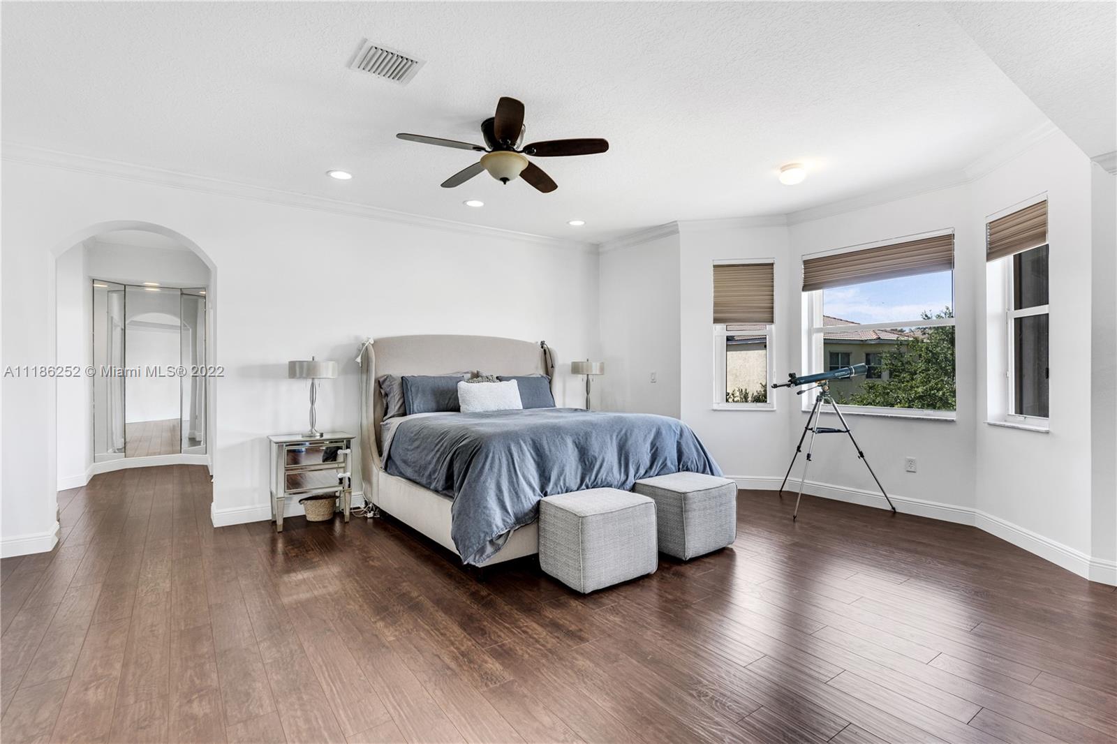 Beautiful Lake Pool Home in the beautifully maintained community of Riviera Isles !!! This amazing home has 4 bedrooms 2 1/2 PLUS a loft. Heated Pool-Large backyard - 9,559 sq ft Lot .Your Personal Tropical Oasis retreat for those long days at the office. Open floor plan with One bedroom on the 1st floor(Great for having family or friends over). Huge Master bedroom with Views overlooking the lake and pool, Crown molding, Accordion shutters, Walk out balcony in the loft area,Wine rack and so much more.Community pool-Basketball courts and more.Two A/c units were replaced in 2018 ,Recently changed tank less water heater and new pool pump.Property is immaculate .24 Hr Security Showing will only be done on Saturdays by appointment only 12-3 Pm Don't miss out on your own private oasis