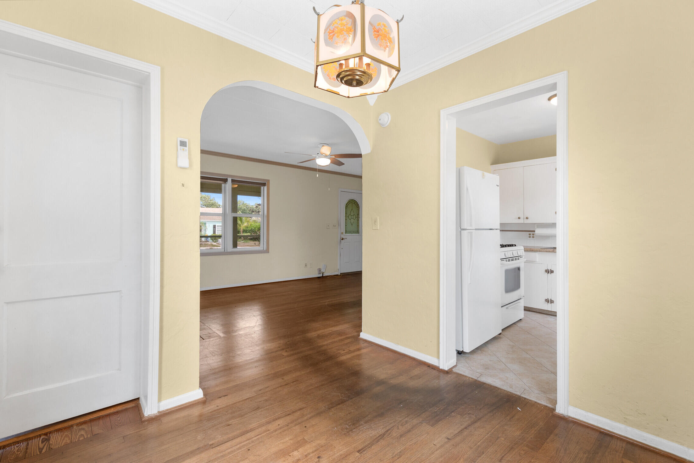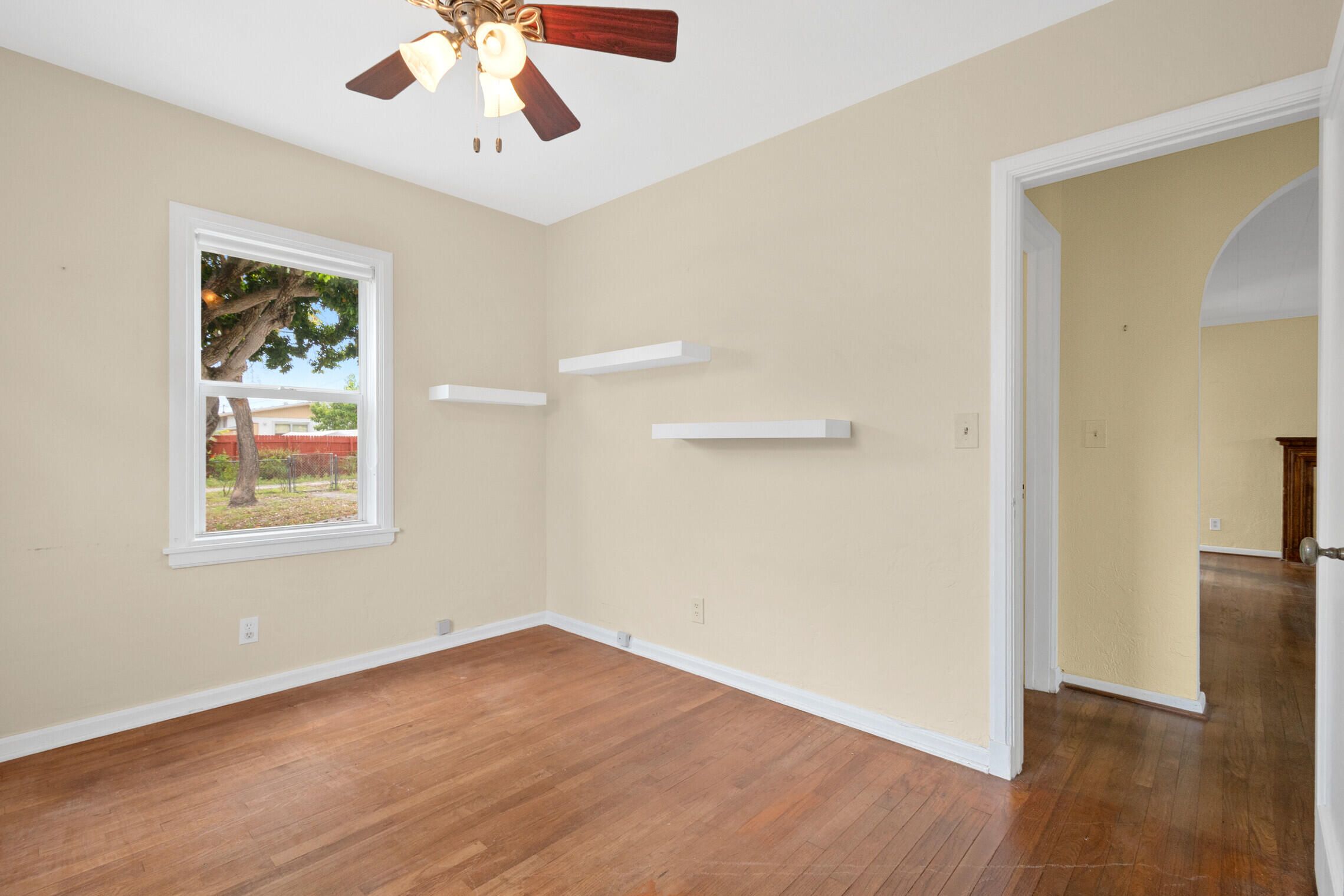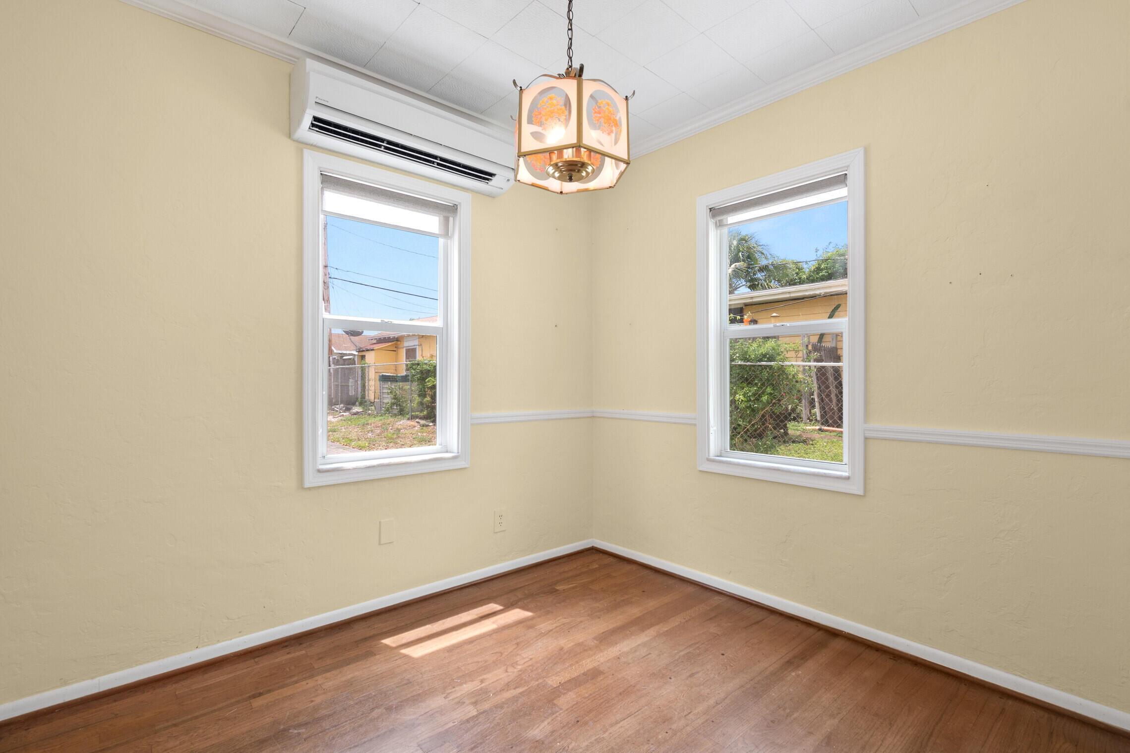 This home is full of classic Florida charm starting with the Real Wood ceiling on the screened front porch. Open the front door to a large open area with a wood burning fireplace upon entry. The interior boasts crown molding and real wood floors thru-out the living areas. Large utility room holds a washer, dryer and offers plenty of storage space and additional front door entry. Hurricane shutters are stored in outside shed. There are 2 Daikin AC systems (2014 & 2016) in Dining room and Master bedroom. Dryer and stove on Gas. Large fenced yard features a beautiful shade tree and a large paved open patio area. Location offers easy access to I95 and is a short ride to the Beach, local parks, Palm Beach Outlets and downtown West Palm Beach.