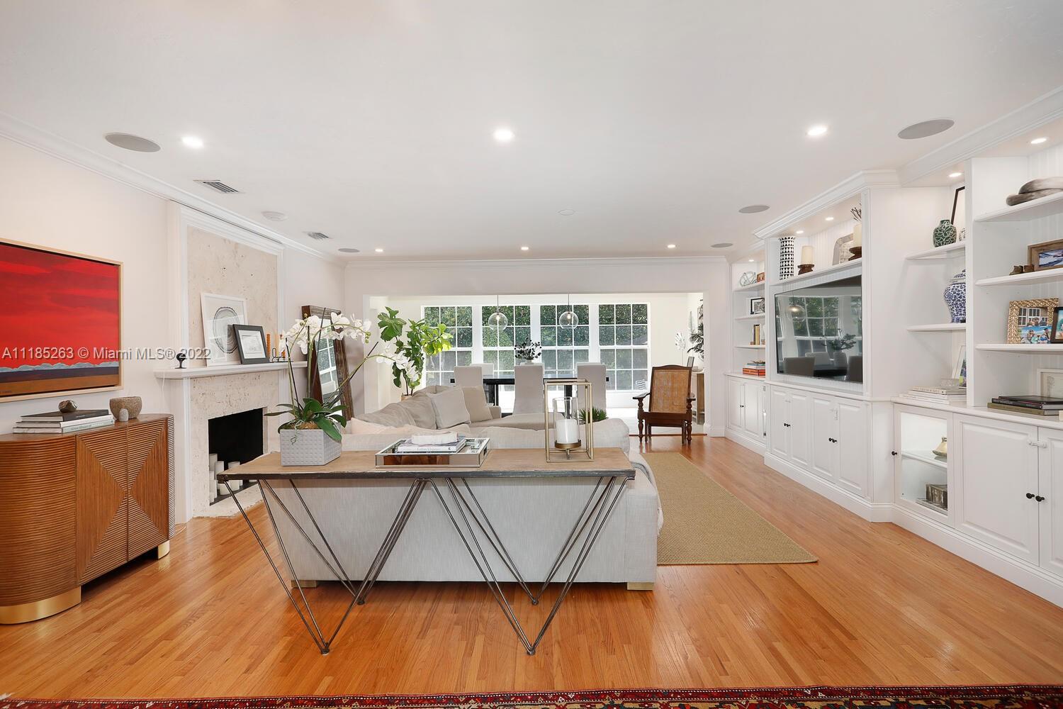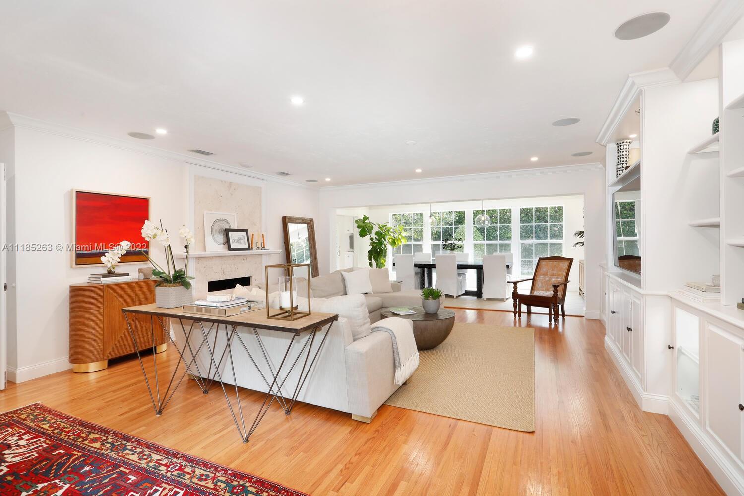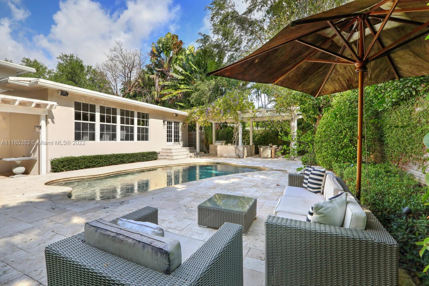 Lovely, walled & gated home on a quiet, tree-lined street just 1 block from Merrie Christmas Park. Light-filled living spaces feature wood & tile flooring, fireplace and custom built-ins & millwork throughout. Open floorplan layout offers 4BR’s/3.5BA’s + office/den. Extensively updated including: all impact glass, Surround sound system (inside & out), new roof, LED lighting, SWAT mosquito system & Smart Home features such as Nest thermostats. Stunning kitchen w/classic white wood cabinetry, quartz countertops, high-end gas range & charming breakfast room w/banquette seating. Ultra-private, resort-like backyard features new Summer Kitchen & pergolas, deep covered terrace and inviting, heated salt water pool. Close to the Grove village center’s boutiques, cafes and bayfront parks & marinas.