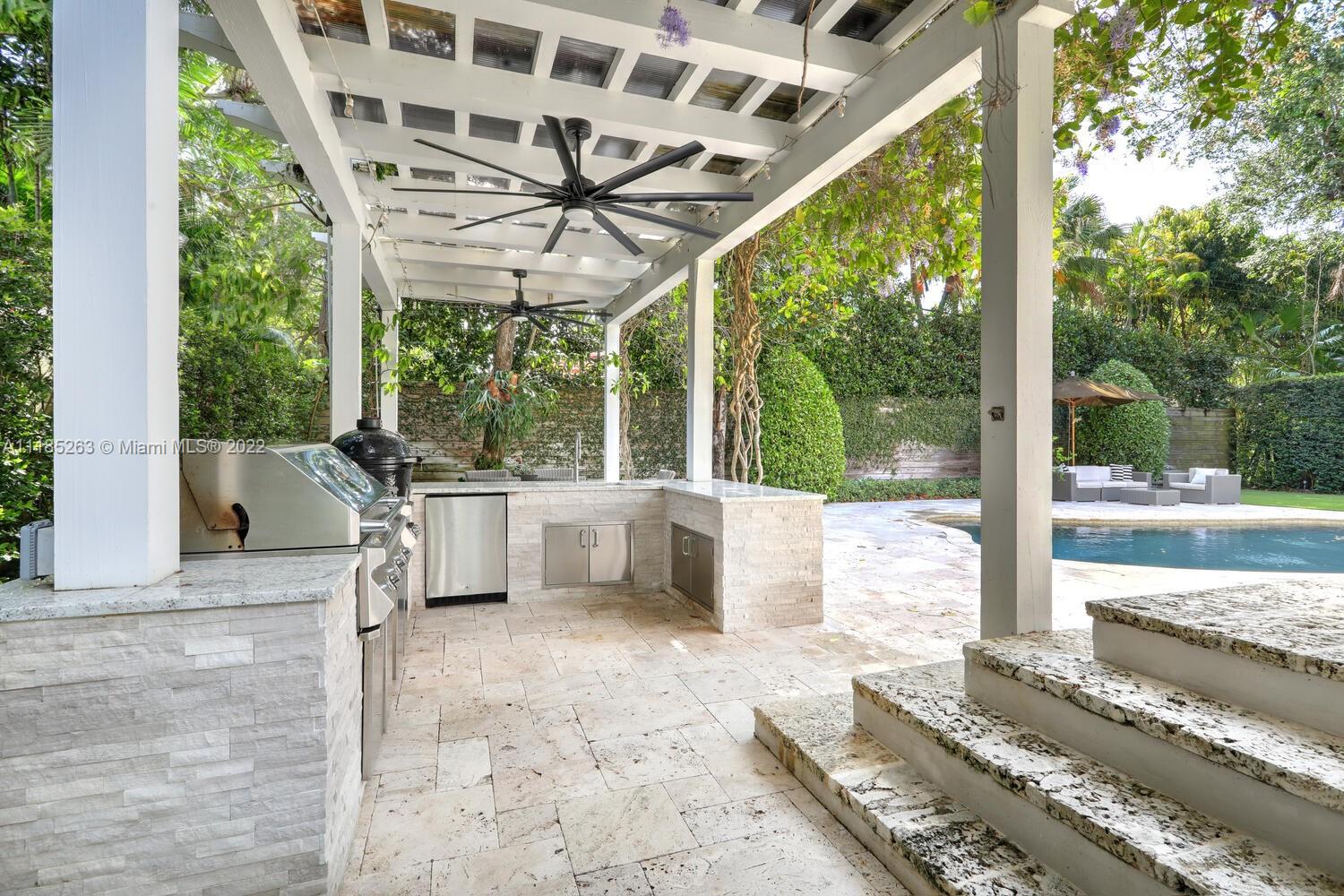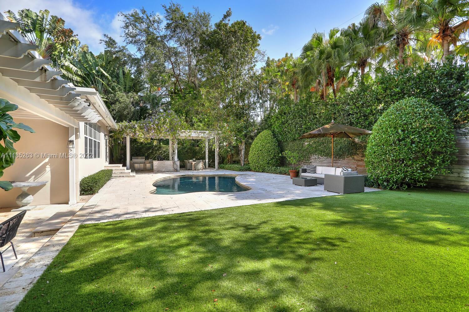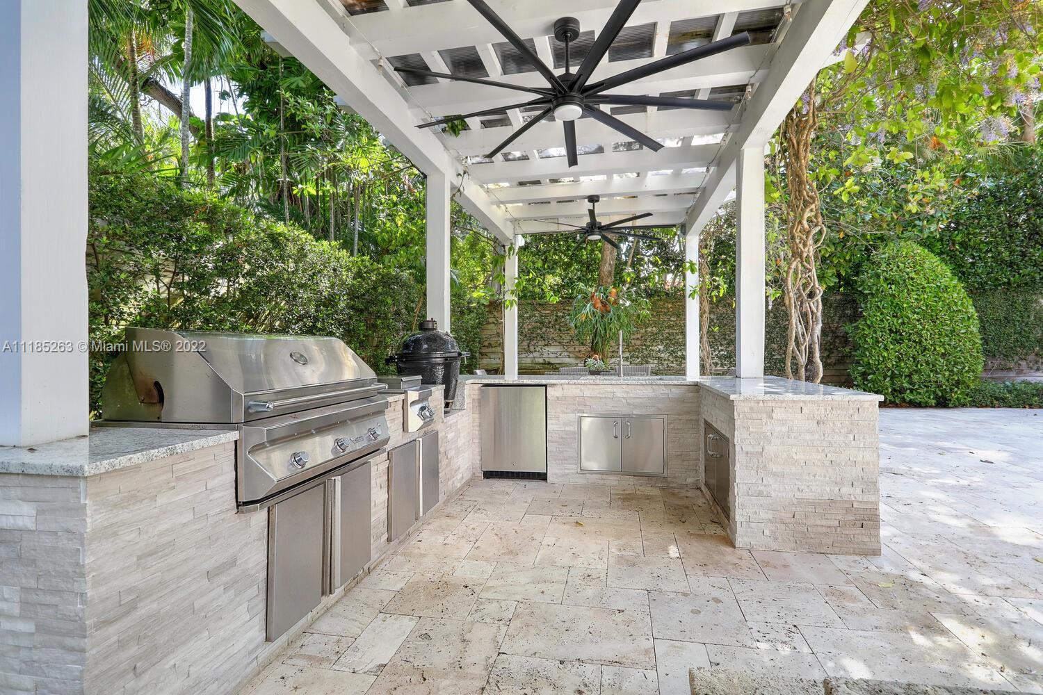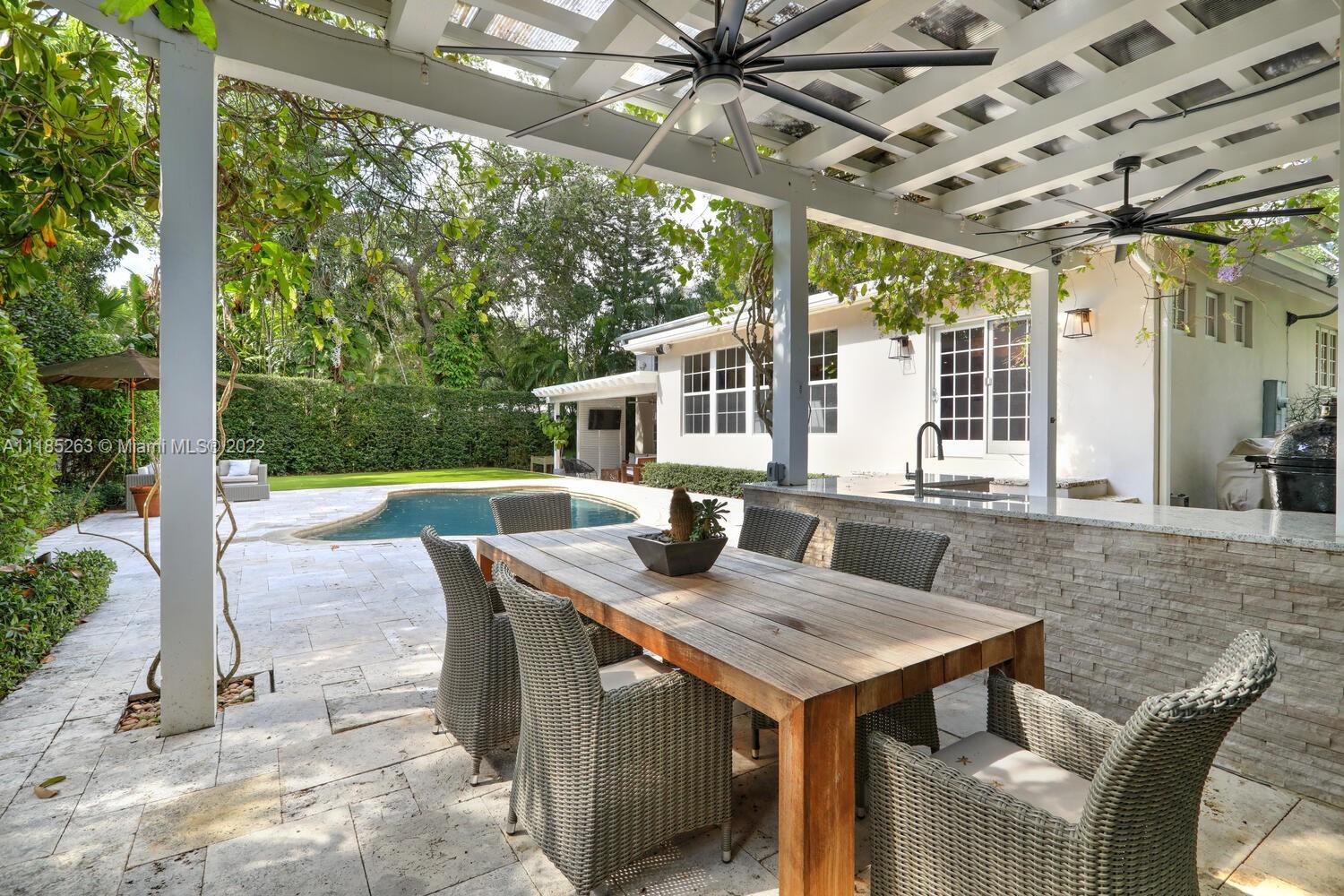 Lovely, walled & gated home on a quiet, tree-lined street just 1 block from Merrie Christmas Park. Light-filled living spaces feature wood & tile flooring, fireplace and custom built-ins & millwork throughout. Open floorplan layout offers 4BR’s/3.5BA’s + office/den. Extensively updated including: all impact glass, Surround sound system (inside & out), new roof, LED lighting, SWAT mosquito system & Smart Home features such as Nest thermostats. Stunning kitchen w/classic white wood cabinetry, quartz countertops, high-end gas range & charming breakfast room w/banquette seating. Ultra-private, resort-like backyard features new Summer Kitchen & pergolas, deep covered terrace and inviting, heated salt water pool. Close to the Grove village center’s boutiques, cafes and bayfront parks & marinas.