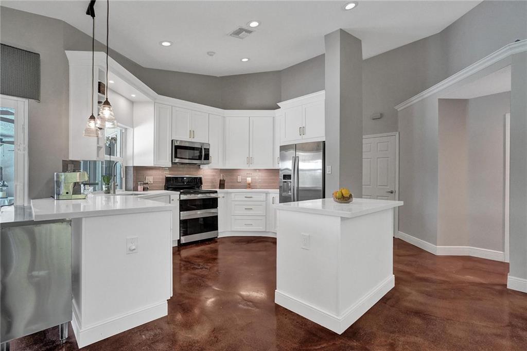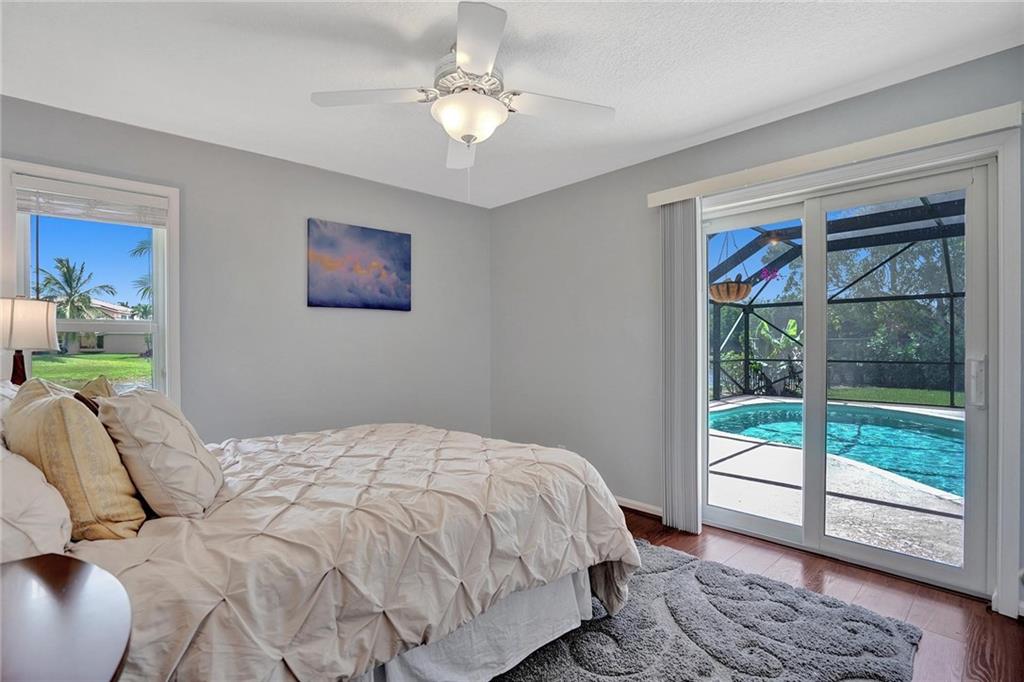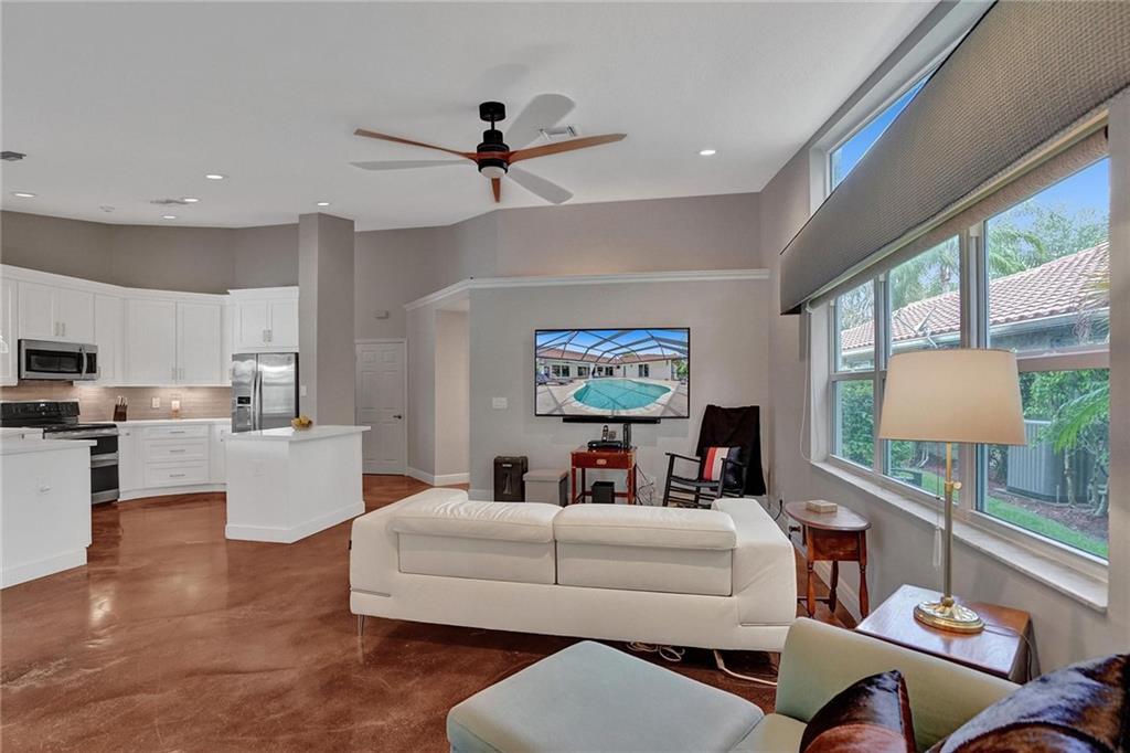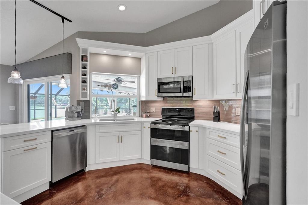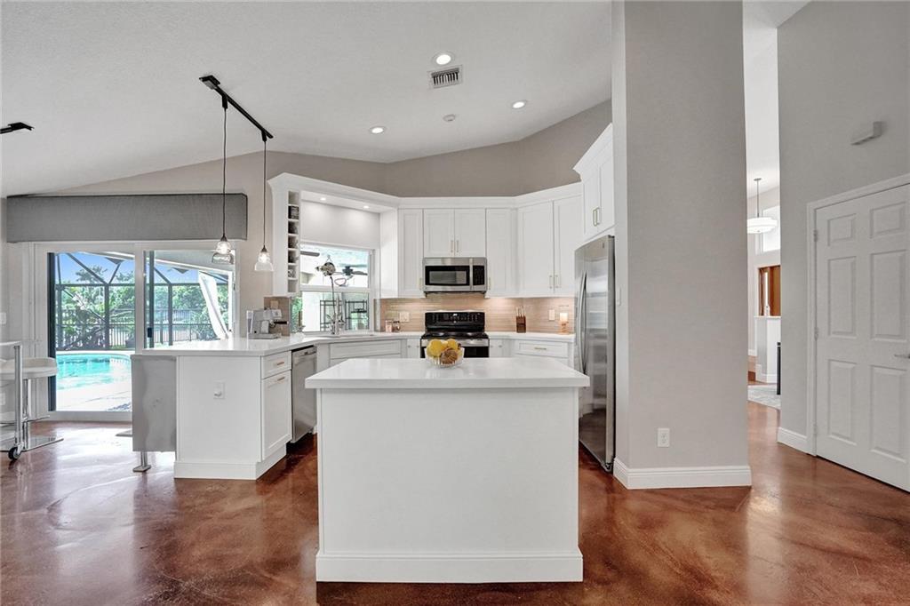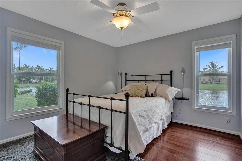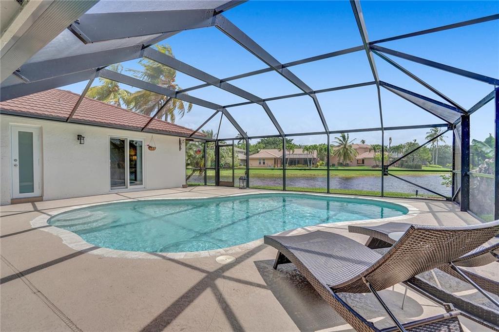 WELCOME HOME! STUNNING LAKEFRONT PROPERTY IN SUNSET SPRINGS SITUATED ON QUIET CUL DE SAC WITH LARGE LOT AND THE MOST SPECTACULAR WIDE WATER VIEWS IN WESTON!! Palms and desert plants anchored in river rock make for a beautiful, low maintenance front feature. Fully fenced side and back yard with lush landscaping offer privacy for outdoor entertaining and enjoyment of your waterfront screened & heated salt-water pool. Custom impact entry-way door & windows illuminate the modern/transitional interior with sunlight. Beautifully renovated kitchen and baths, vaulted ceilings, split BR floorplan, home office (4th BR conversion), luxury upgrades and improvements throughout make this 4BR/2.5BA/2CG the right home for you.