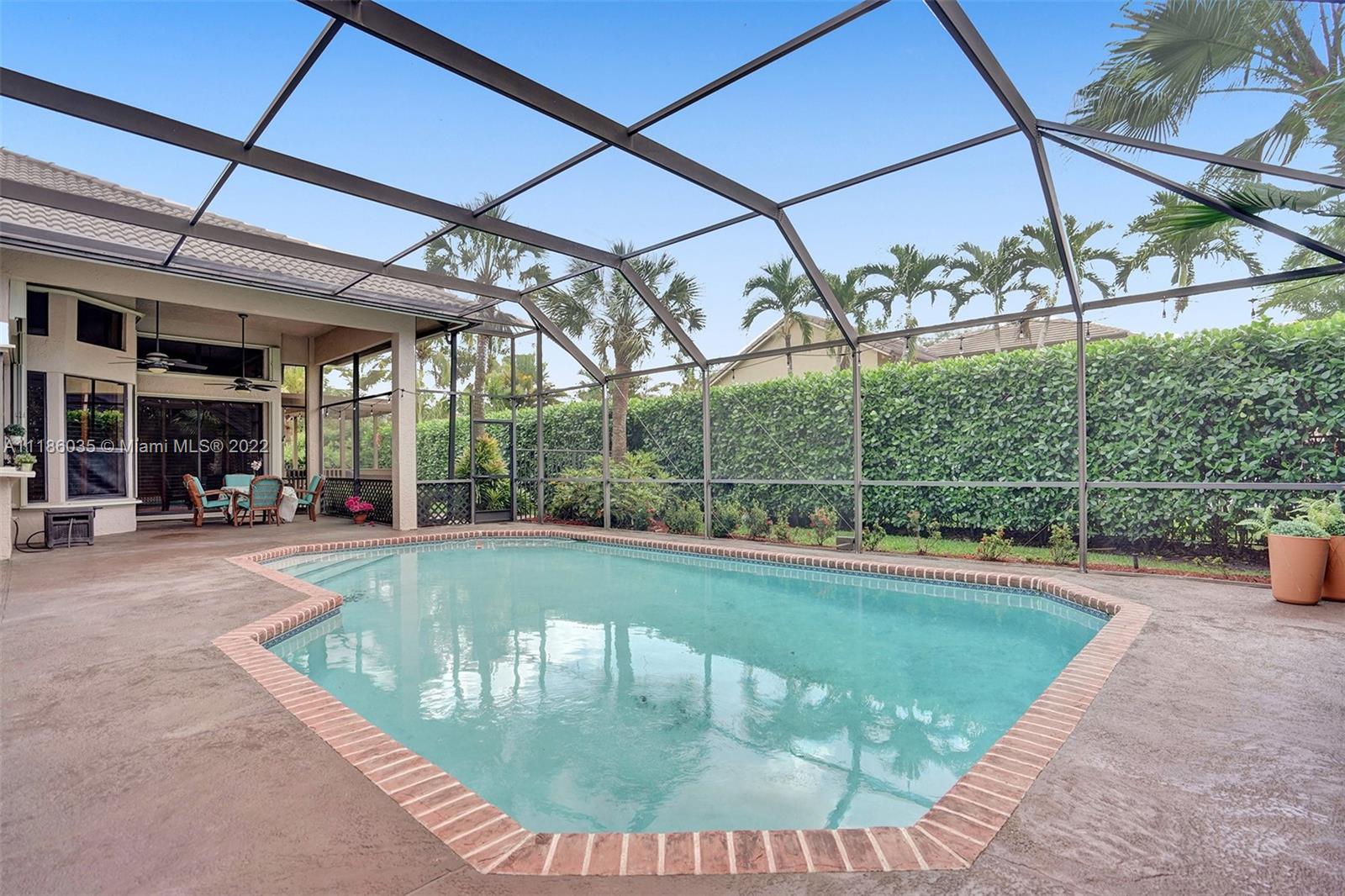 Turnkey home in the gated community of Palm Island. This home features 5 Bedrooms with 4 Full Bathrooms and 2 Half Baths. Great curb appeal sitting on an oversized 14,682 Square Foot lot on a Royal Palm Tree-lined street. Soaring ceilings in Living Areas. Marble floors flow through Living Areas with an elegant step-down Living Room. Gourmet kitchen with Granite countertops, Stainless Steel appliances, wall Oven, and two Pantries. Large owners Suite with Walk-In Closets and en-Suite Bathroom with Dual sinks and large Jacuzzi Tub and standing Shower. Privacy is hedged with lush mature landscaping surrounding the property encompassing the screened Pool Area and a Pergola Deck. True pride in ownership.