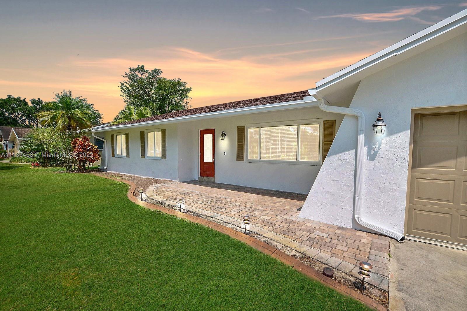 BEAUTIFUL 3 BED, 2 BATH RANCH STYLE POOL HOME IS LOCATED ON A CUL DE SAC STREET WITHIN THE WONDERFUL CITY OF DAVIE. A FRESHLY PAINTED EXTERIOR, 2 CAR GARAGE AND AMPLE DRIVEWAY WELCOME YOU INTO THIS LOVELY HOME. STUNNING KITCHEN WITH GRANITE COUNTERTOPS, DREAMY WHITE CABINETS, AND STAINLESS STEEL APPLIANCES. HURRICANE IMPACT WINDOWS THROUGHOUT. SPACIOUS PRIMARY SUITE OFFERS AN FABULOUSLY UPDATED ENSUITE BATH. PERFECT FOR ENTERTAINING, ENJOY ACCESS TO THE SERENE BACKYARD FROM THE DINING AND FAMILY ROOMS. THE LARGE, PRIVATE FENCED BACKYARD IS LINED BY NATIVE PALMS TO CREATE A TROPICAL POOL-SIDE OASIS. THE COVERED PATIO IS PERFECT FOR OUTDOOR DINING. WALKING DISTANCE TO DOWNTOWN DAVIE ALL ITS NEW DEVELOPMENTS AND MINUTES FROM THE HARD ROCK HOTEL AND CASINO. NO HOA.